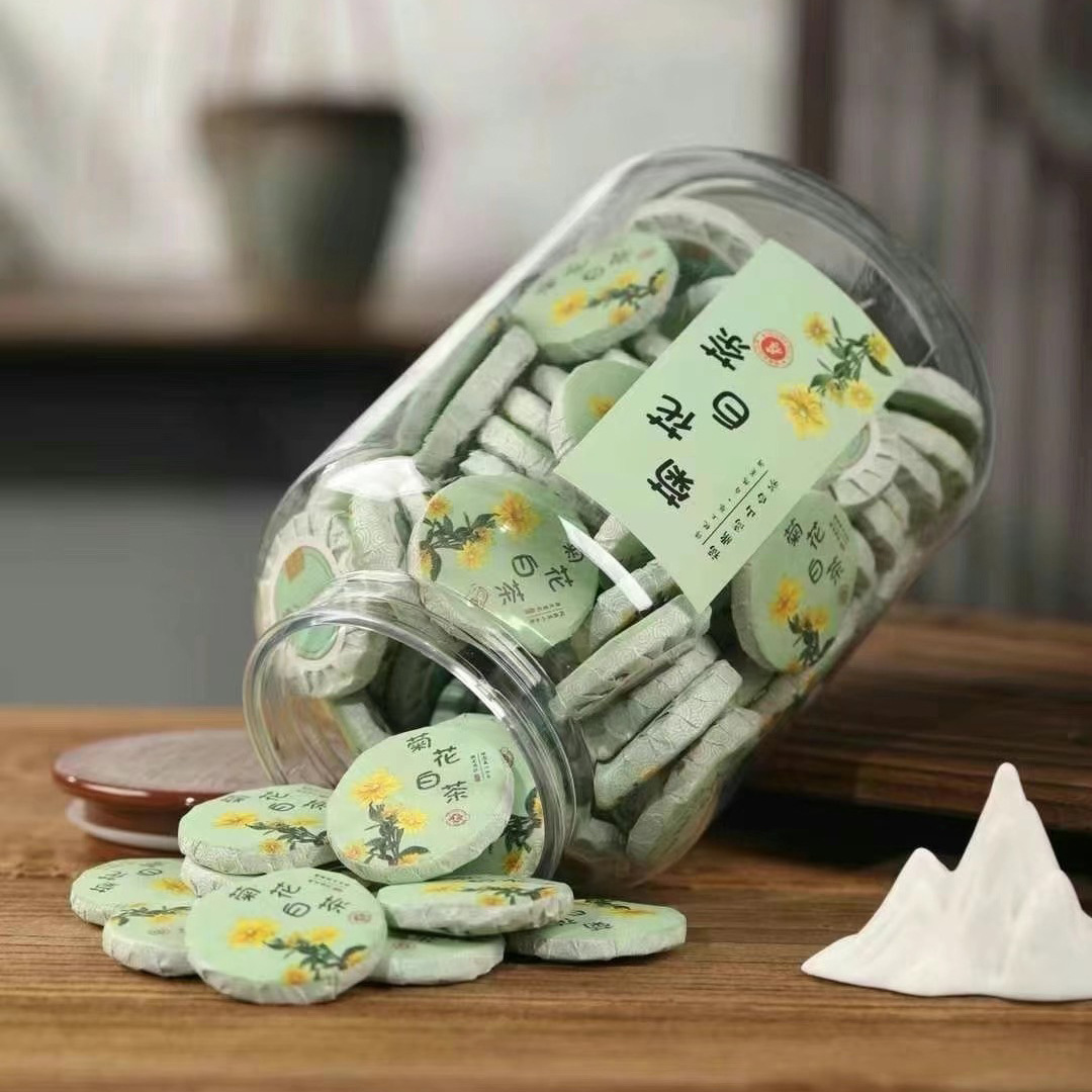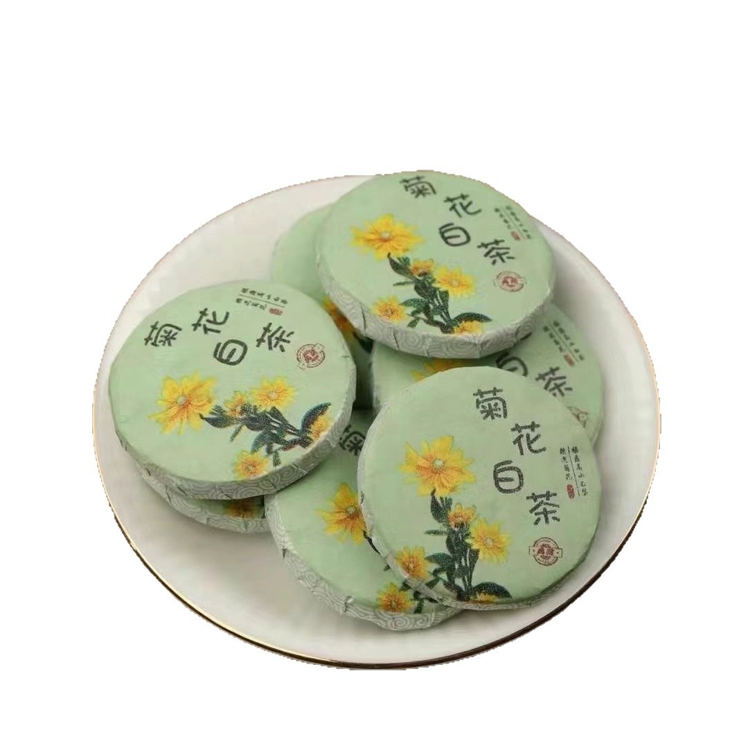 夏天必备菊花白茶小茶饼福鼎白茶寿眉菊花茶老白茶小圆饼罐装批发