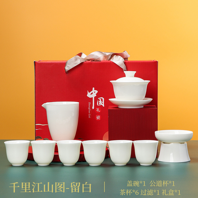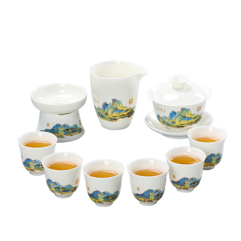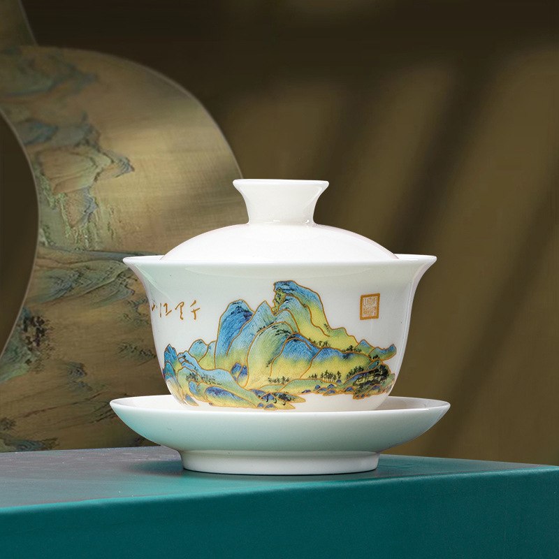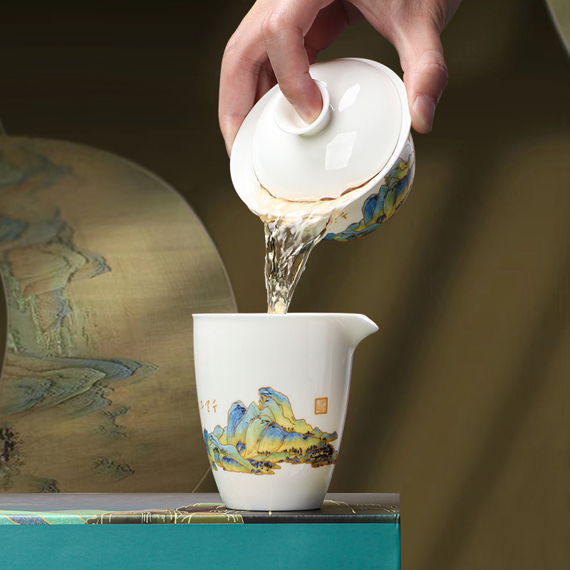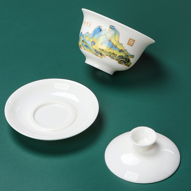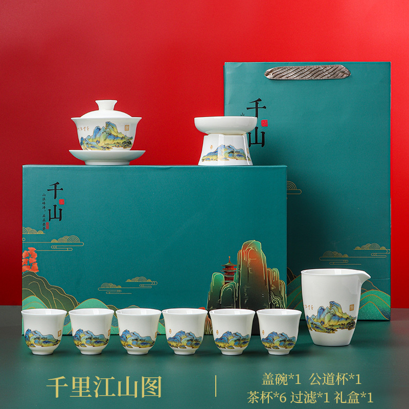 千里江山图便携式旅行功夫茶具套装家用简约盖碗泡茶水杯定制logo