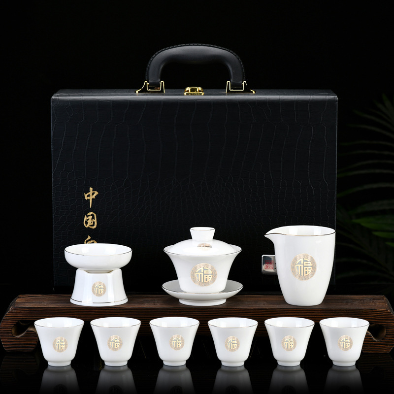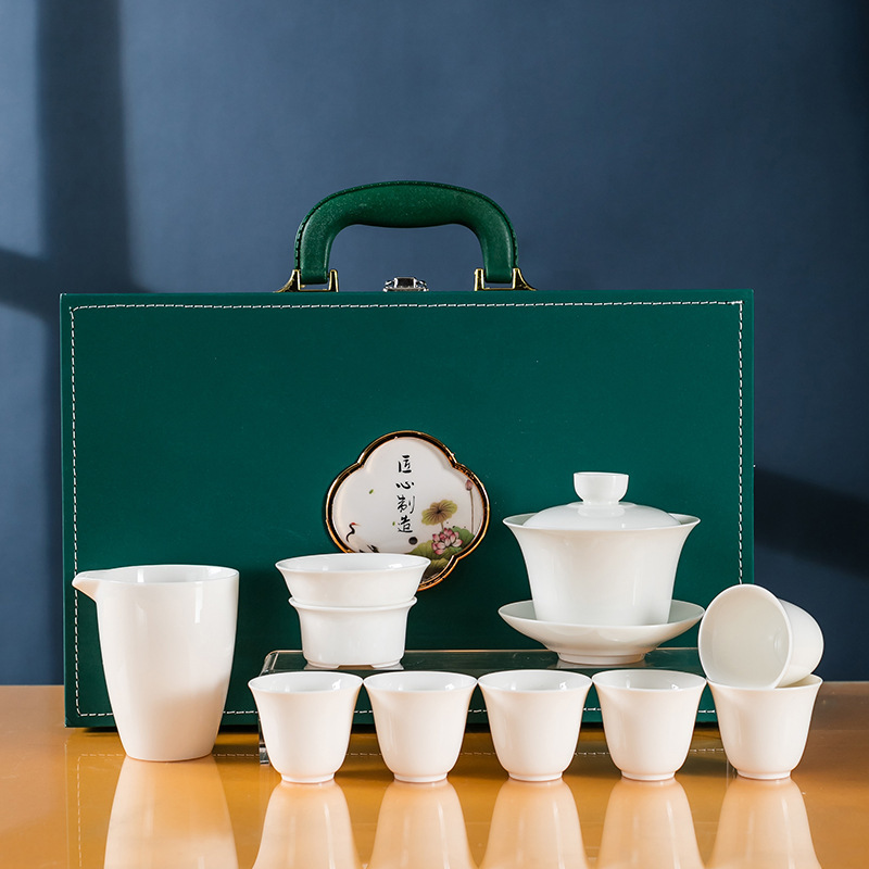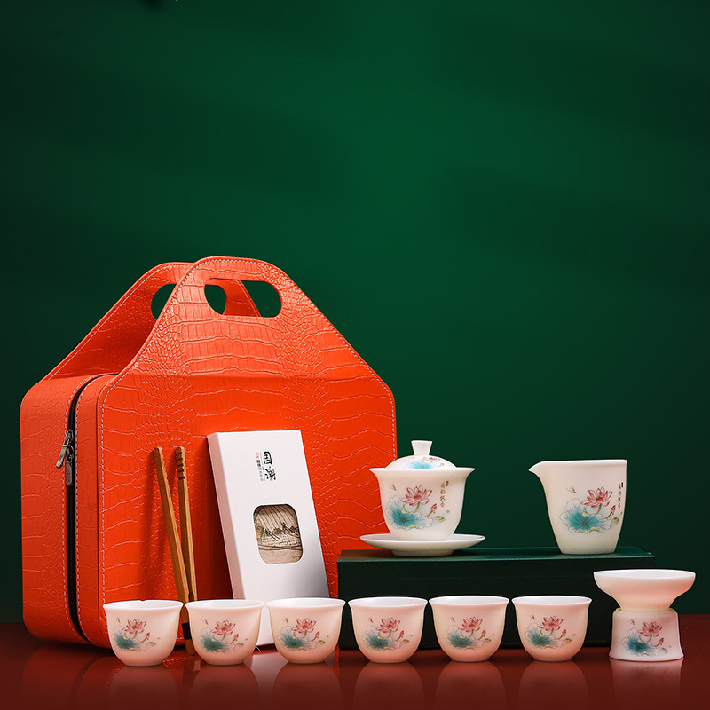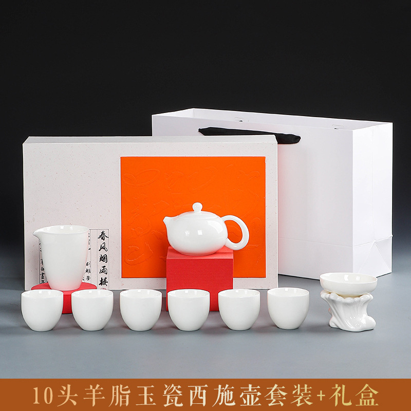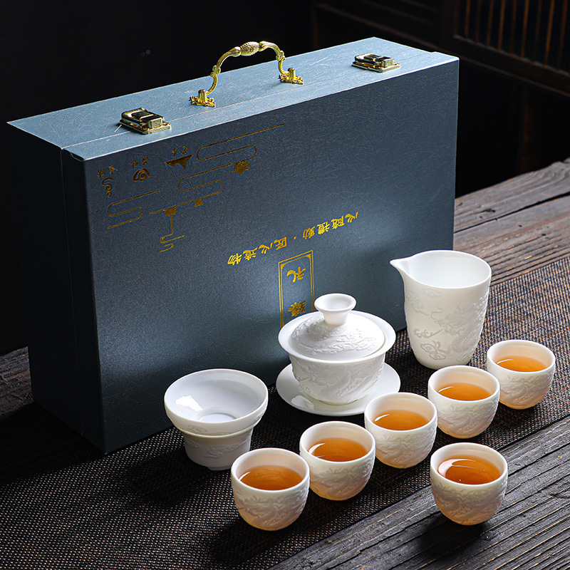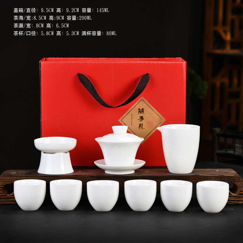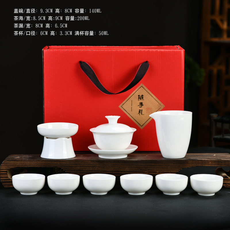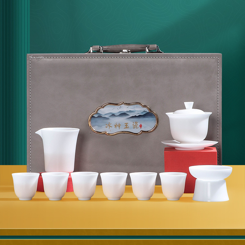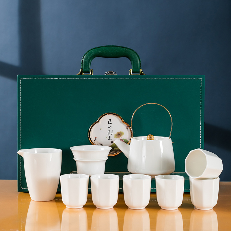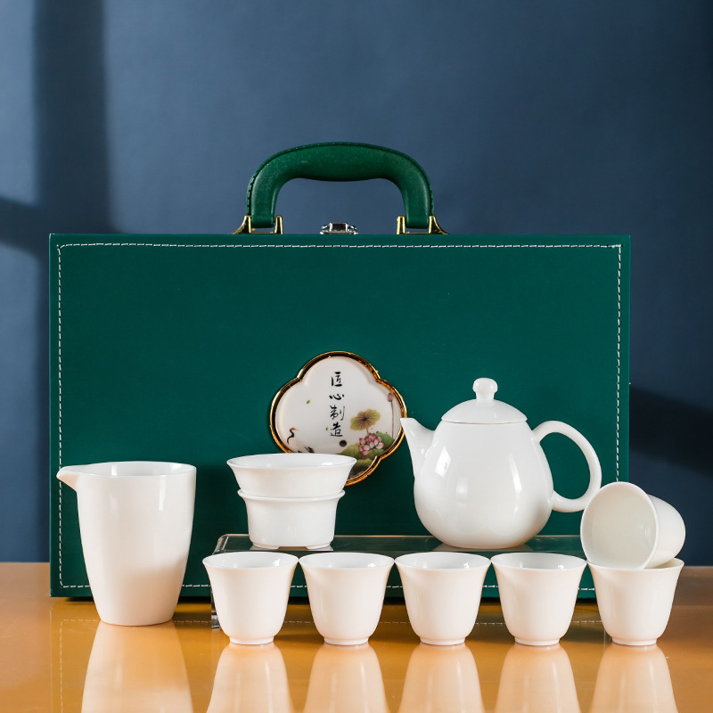 素烧羊脂玉功夫茶具套装伴手礼商务LOGO礼盒德化陶瓷旅行茶具套组