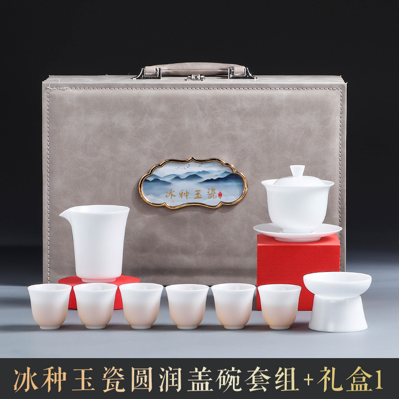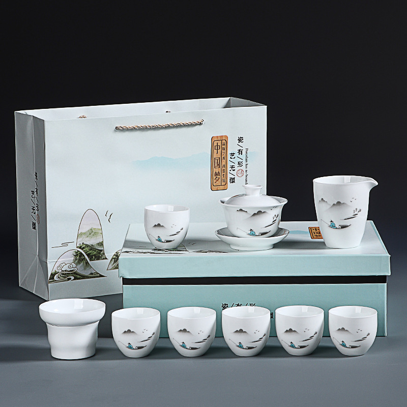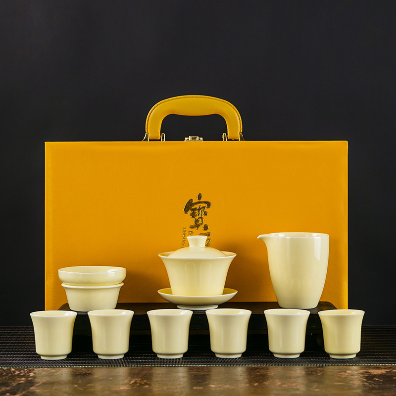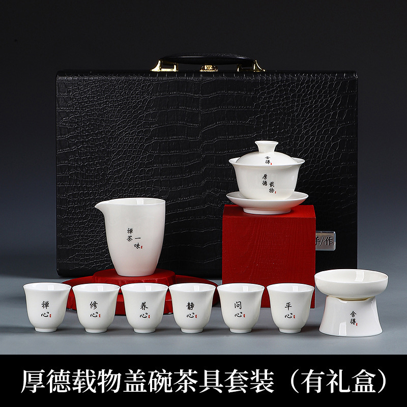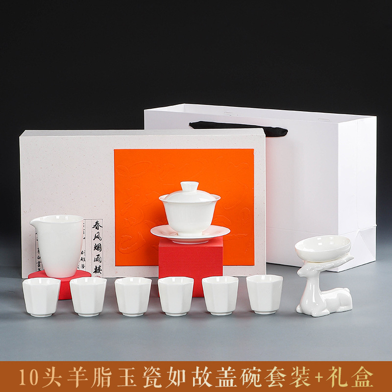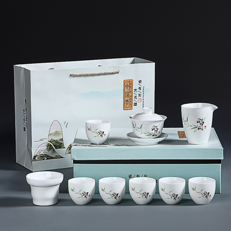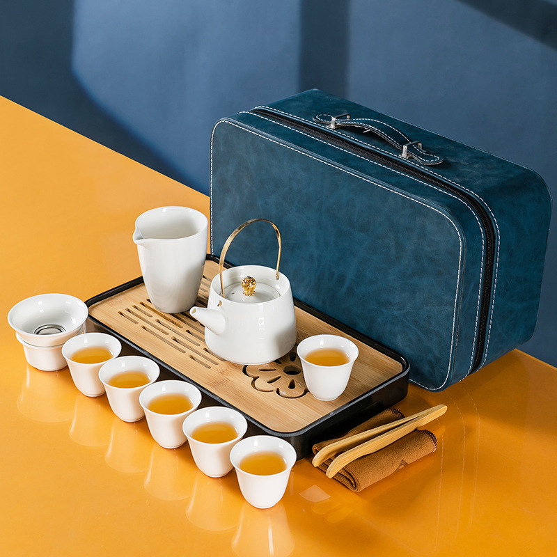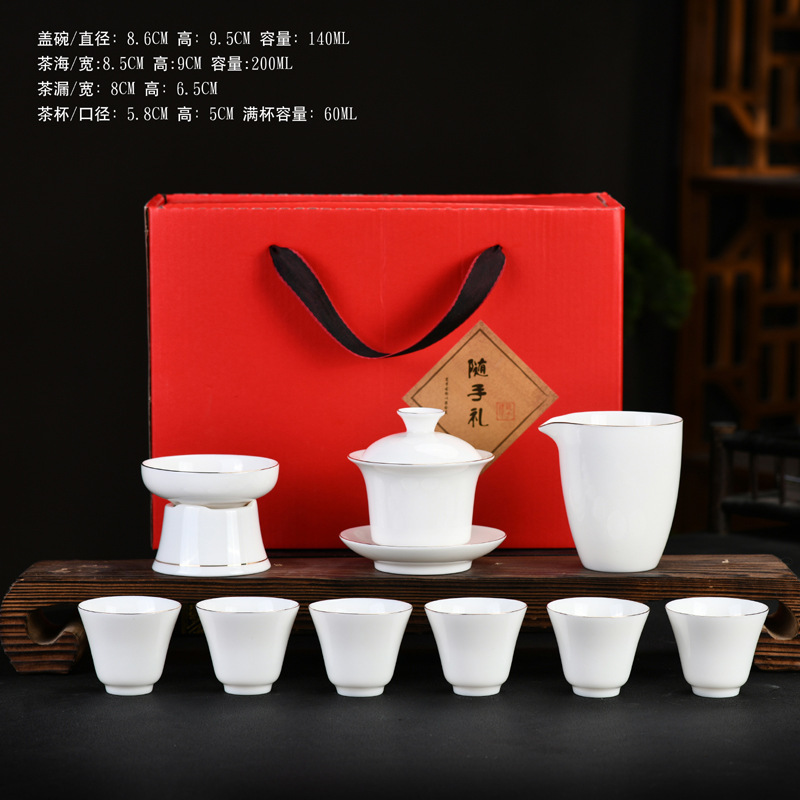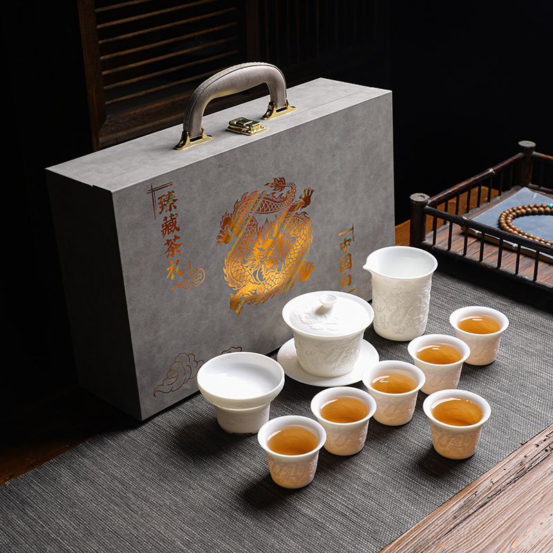 素烧羊脂玉功夫茶具套装伴手礼商务LOGO礼盒德化陶瓷旅行茶具套组