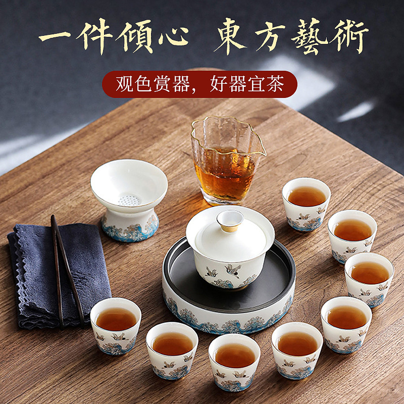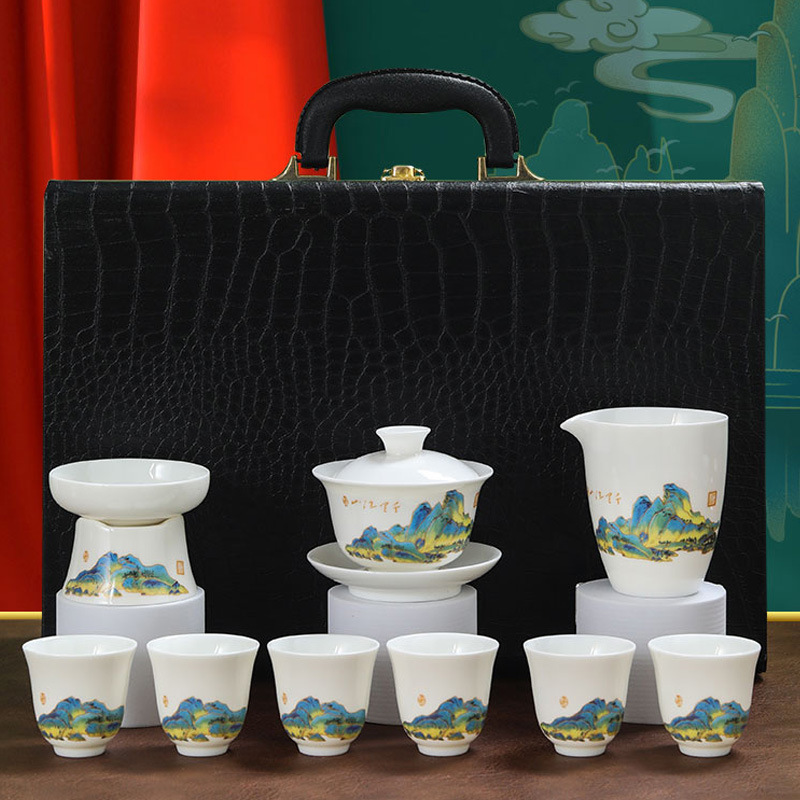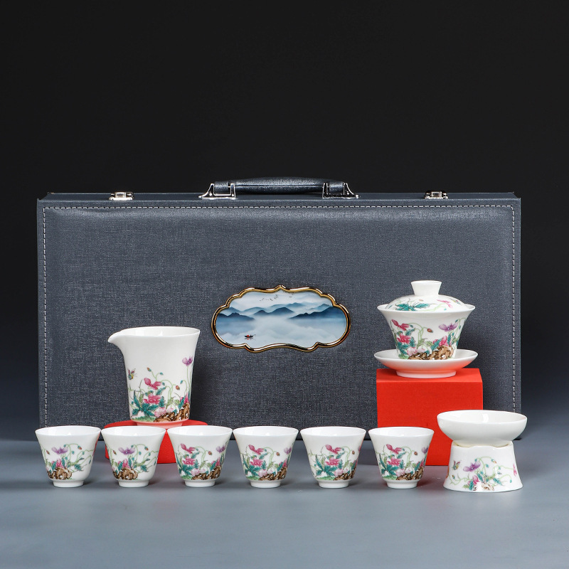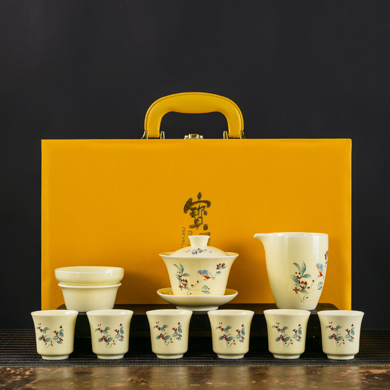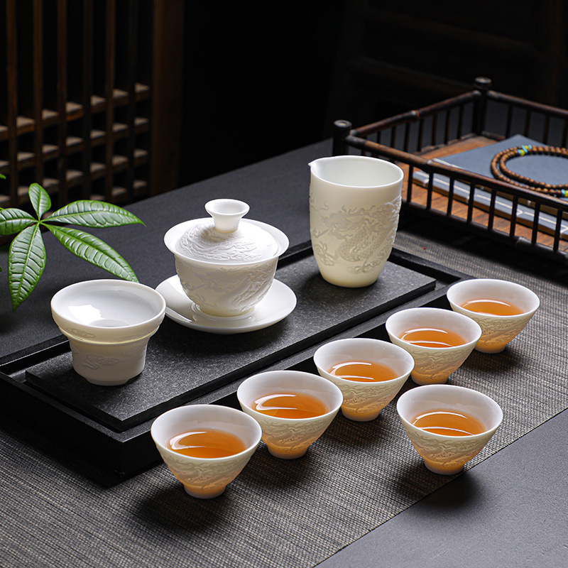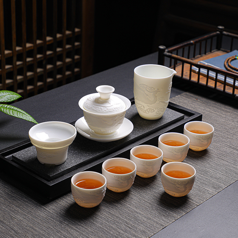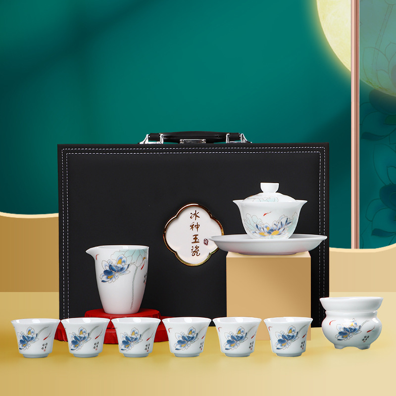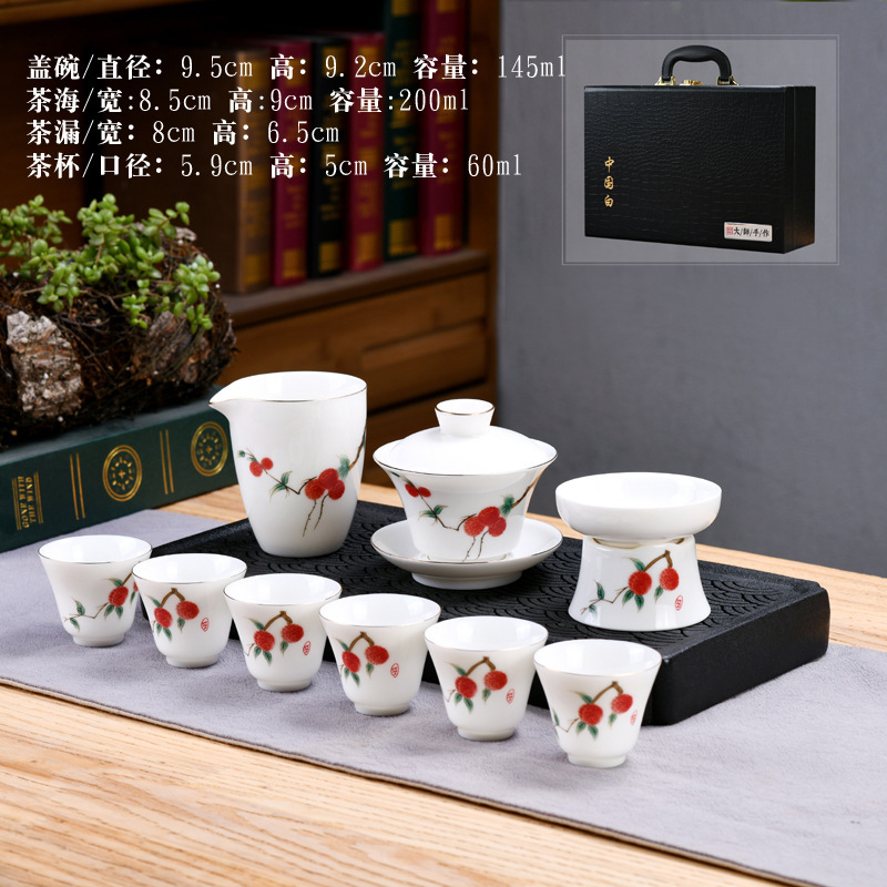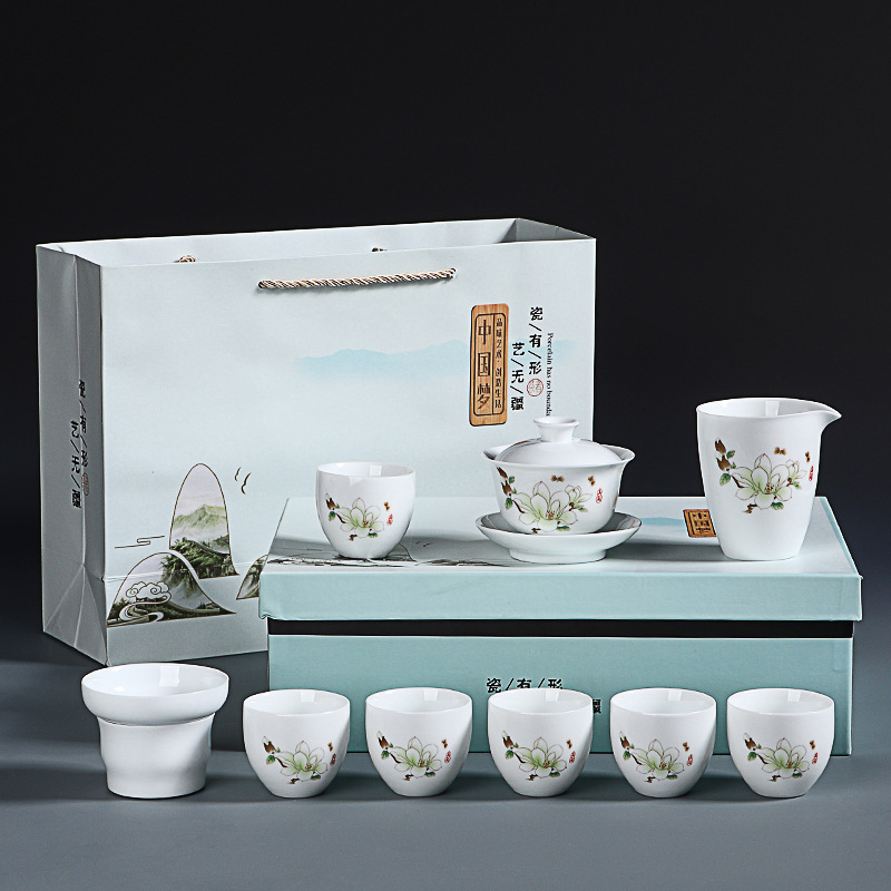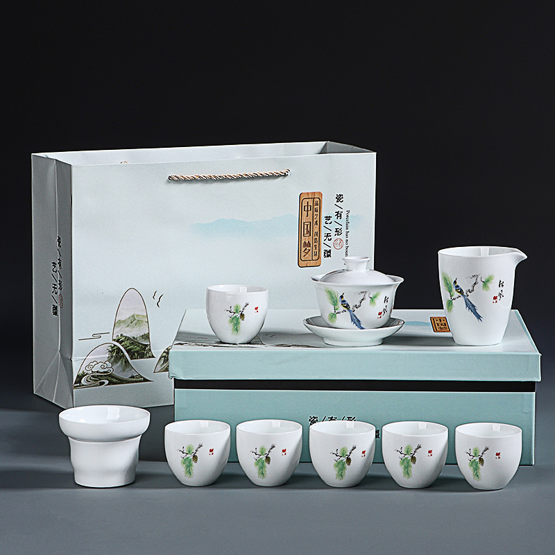 素烧羊脂玉功夫茶具套装伴手礼商务LOGO礼盒德化陶瓷旅行茶具套组