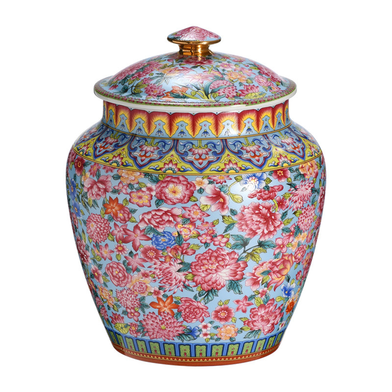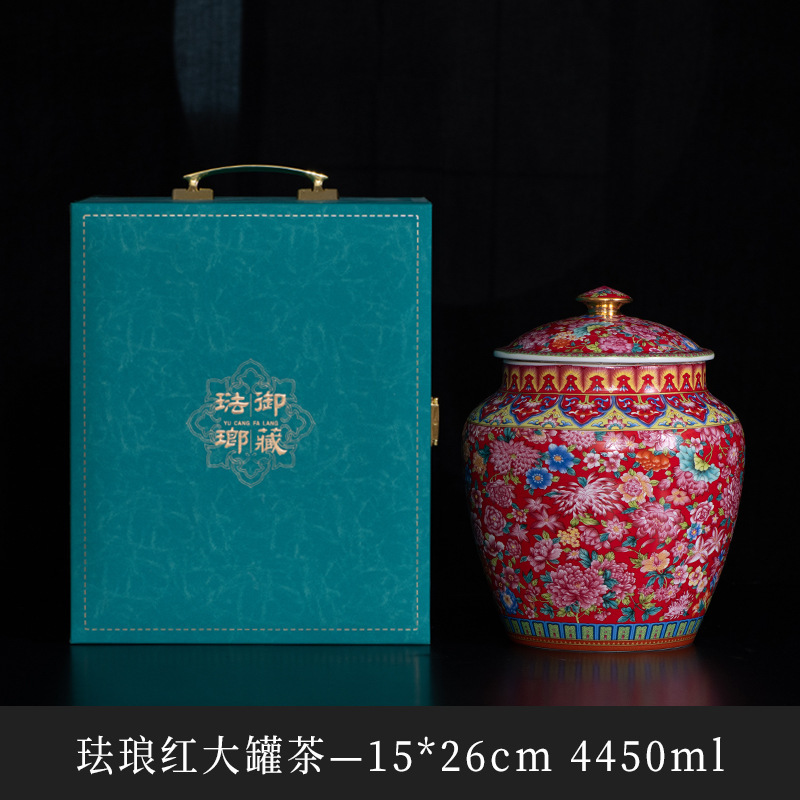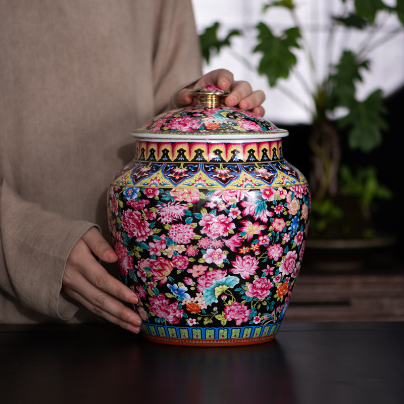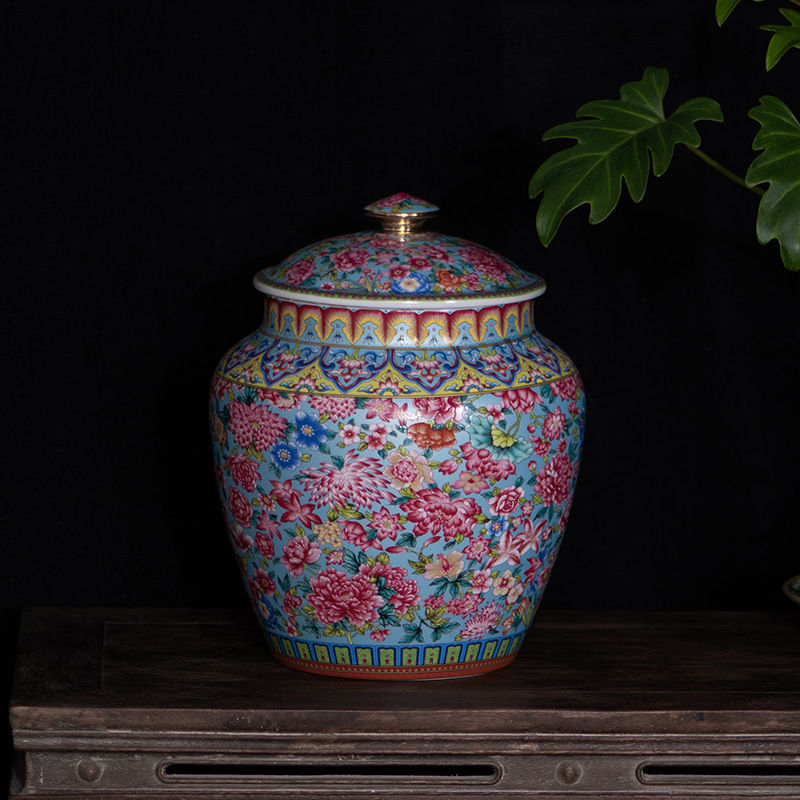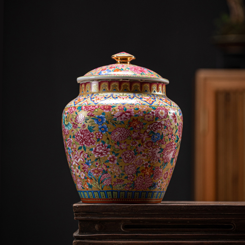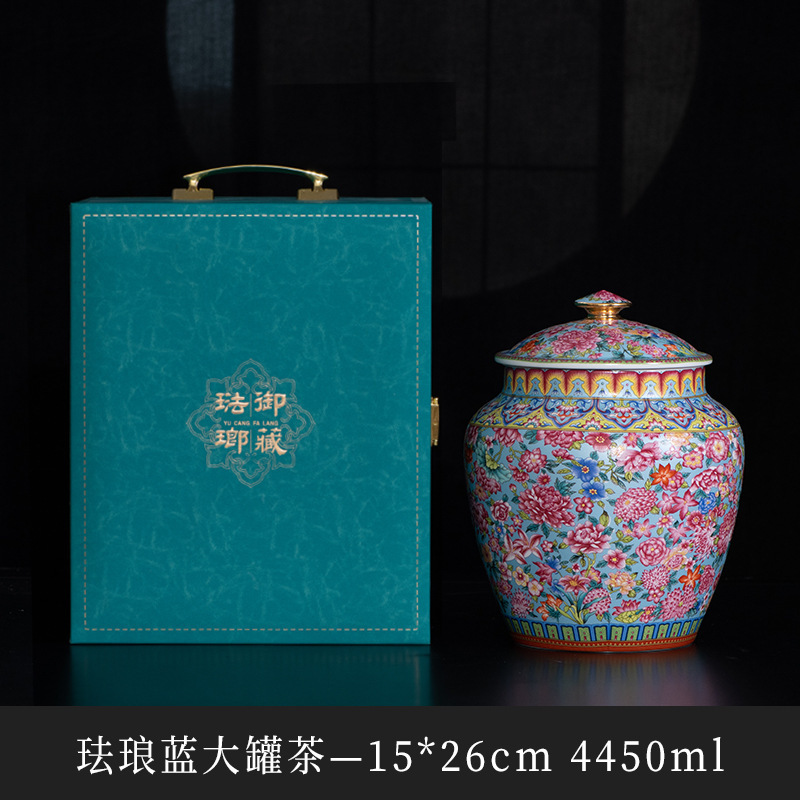 万花将军罐茶叶罐陶瓷密封罐茶缸醒茶珐琅彩大号家用复古宫廷风罐