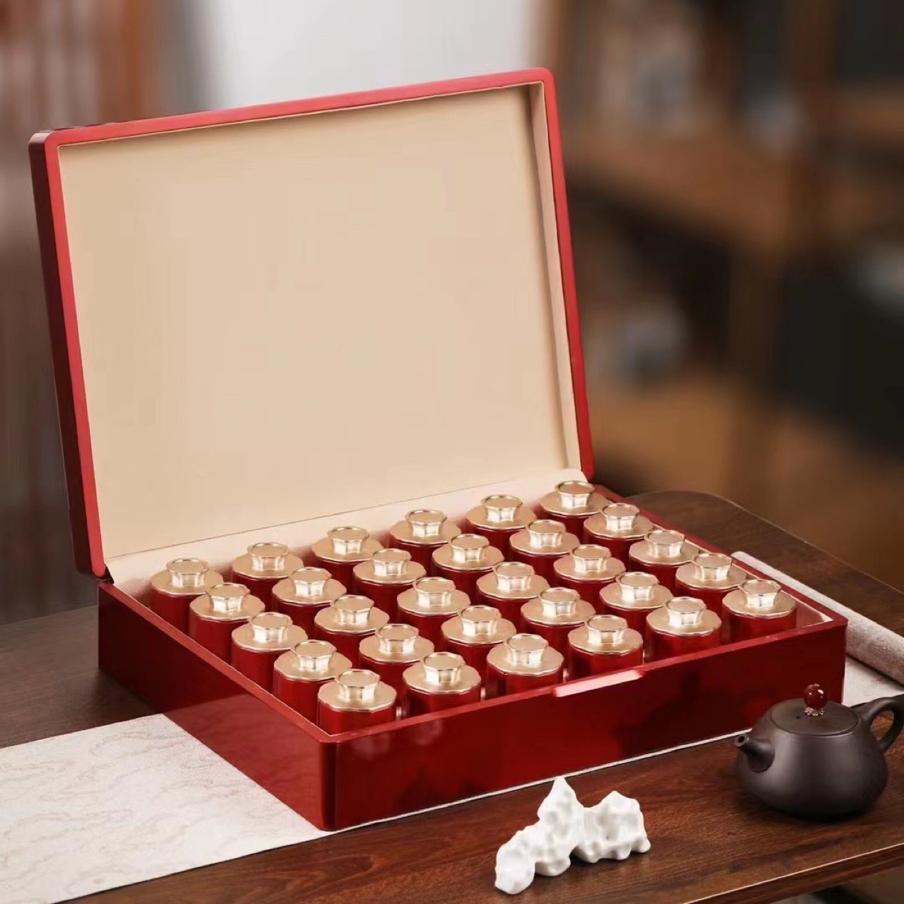 批发武夷红茶小种茶叶烤漆实木礼盒30小罐烫金罐花香小种红茶批发