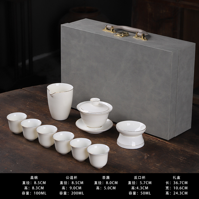 羊脂玉茶具白瓷纯白茶具德化玉瓷功夫茶具批发轻奢礼盒装logo