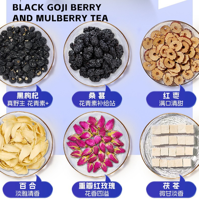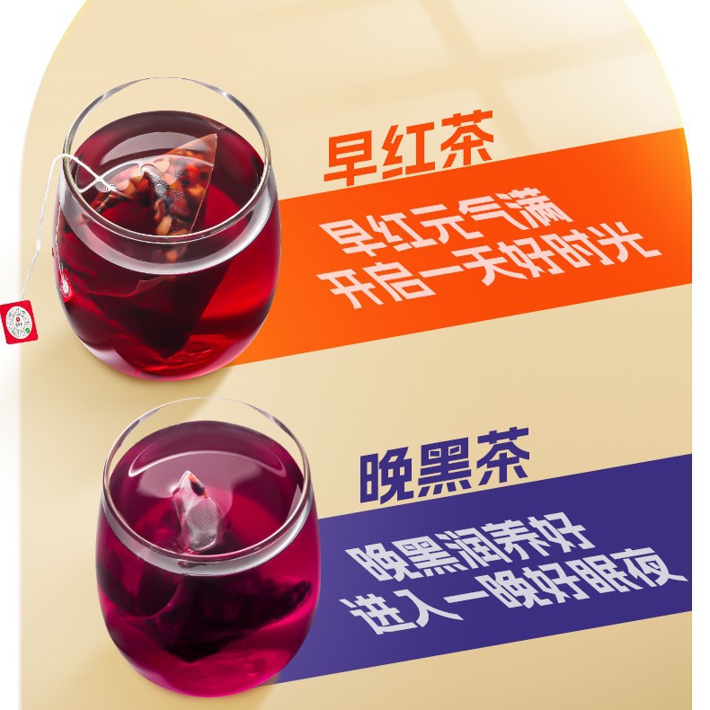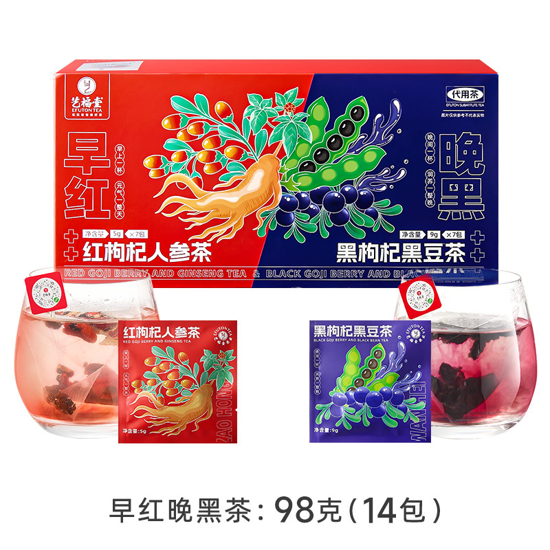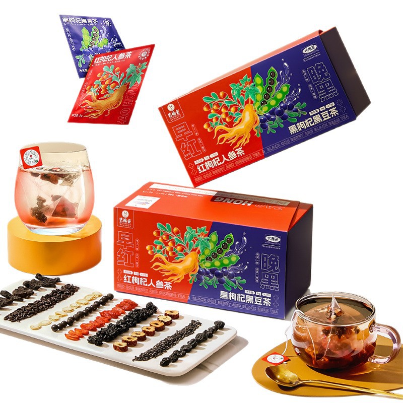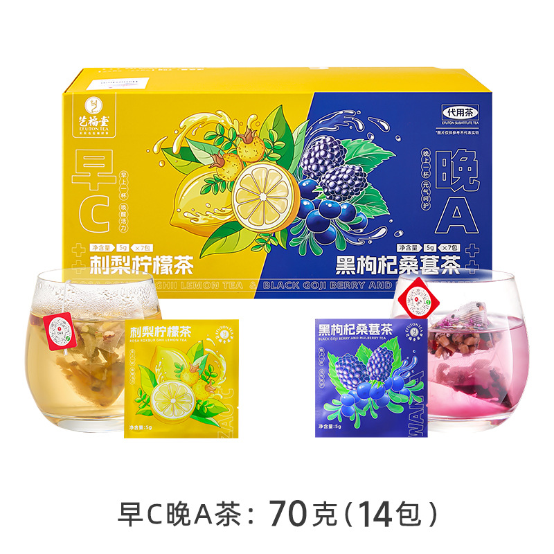 艺福堂早C晚A早红晚黑柠檬茶黑枸杞桑葚茶人参茶黑豆黑枸杞茶批发