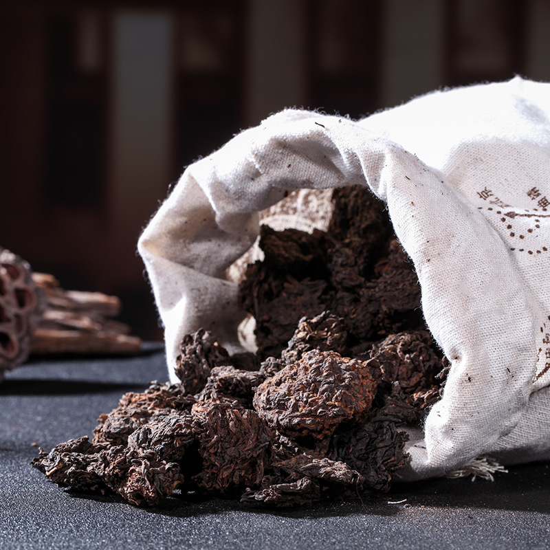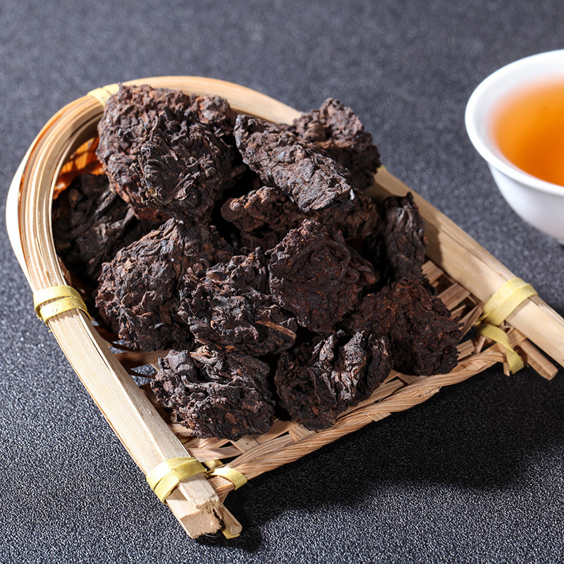云南普洱茶熟茶 03年易武古树老茶头 宫廷金芽陈年木桶装500g茶饼
