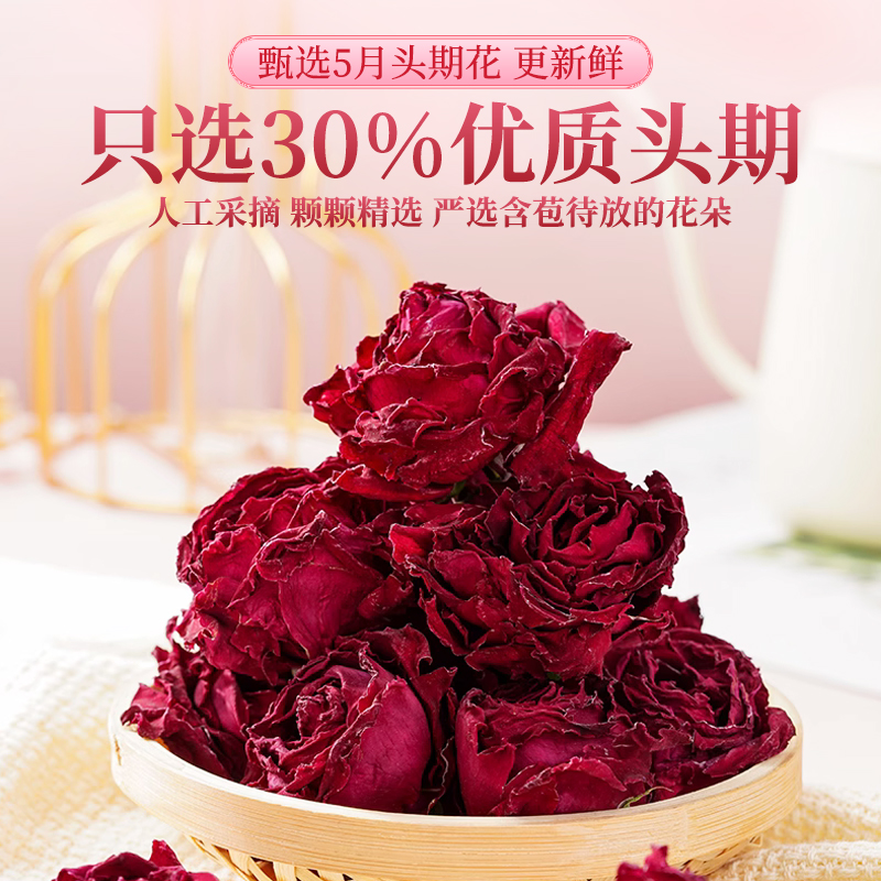 Inky red rose tea, selected roses, freeze-dried lemon double-petaled roses, corolla, flat shade, large flowers, festive gifts
