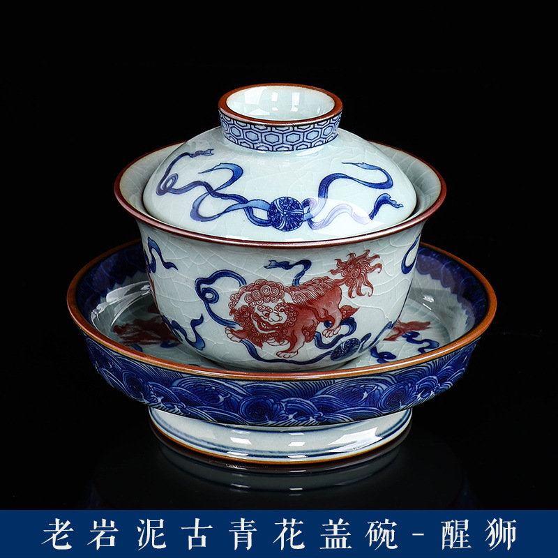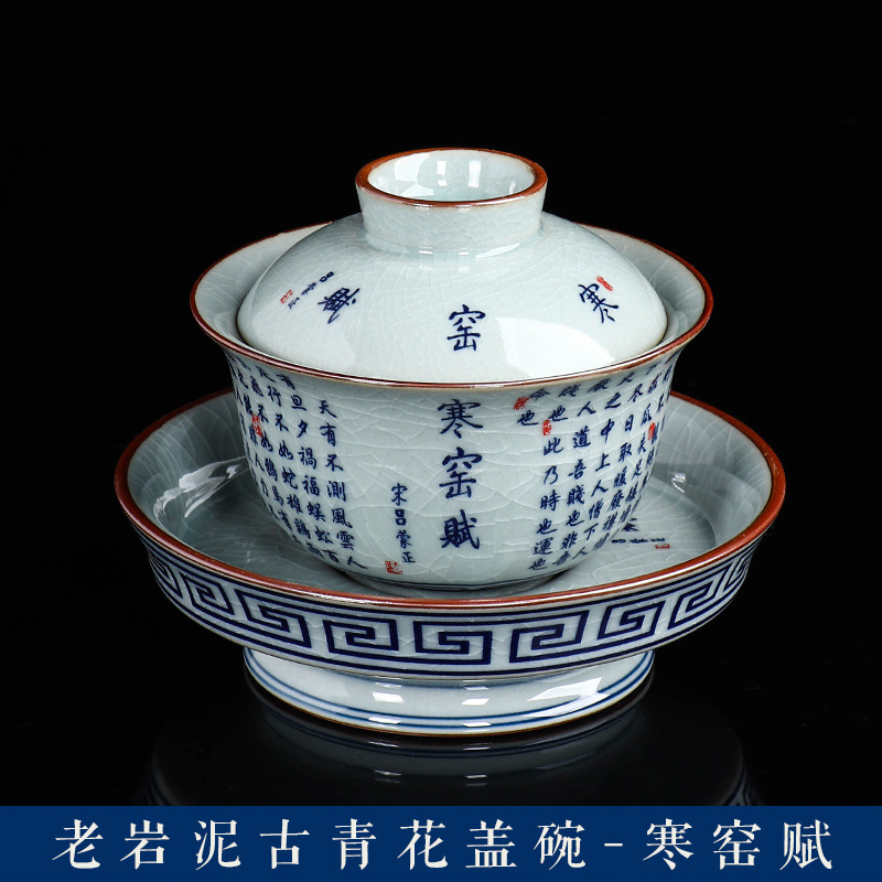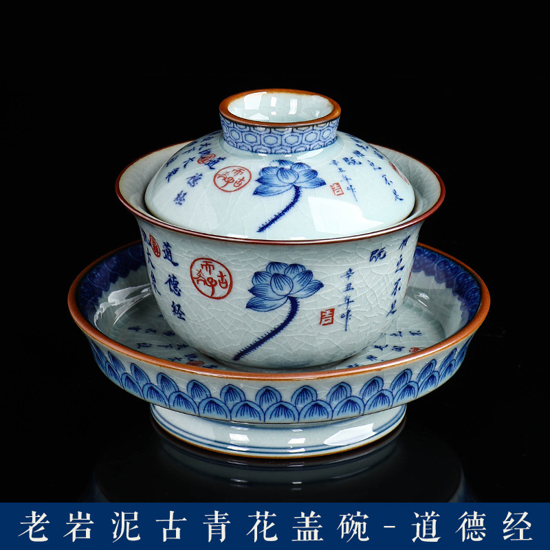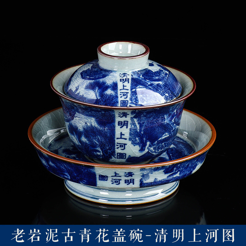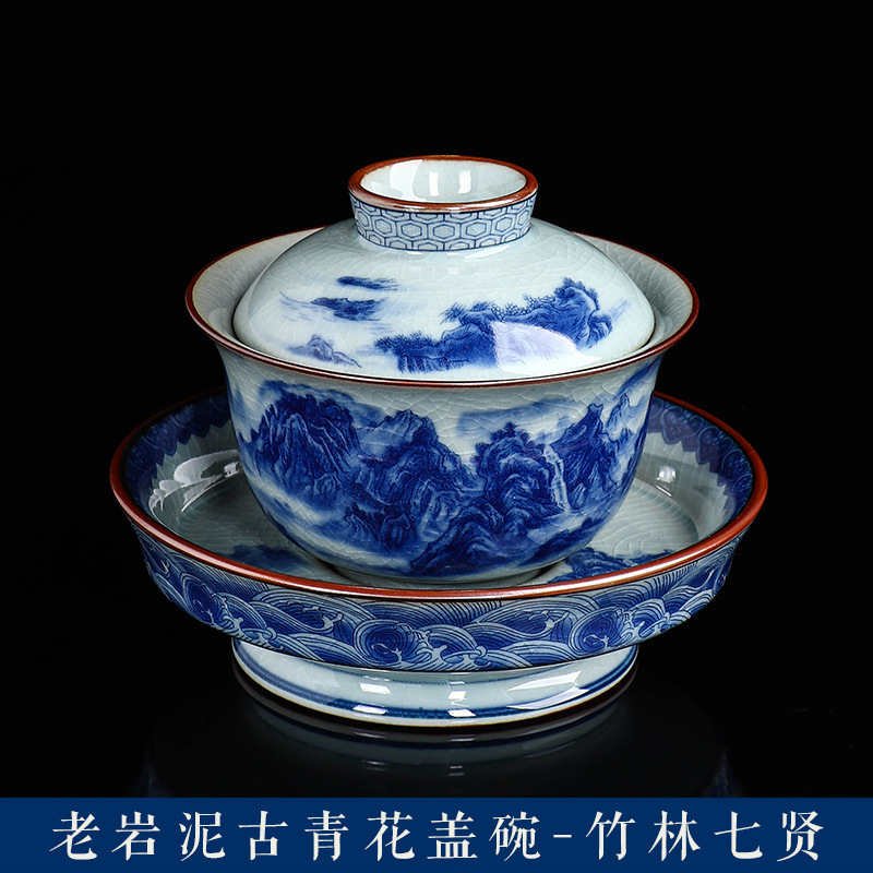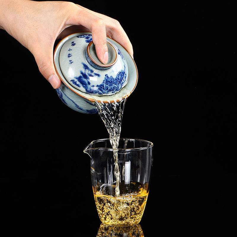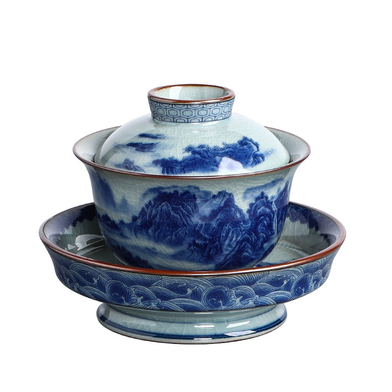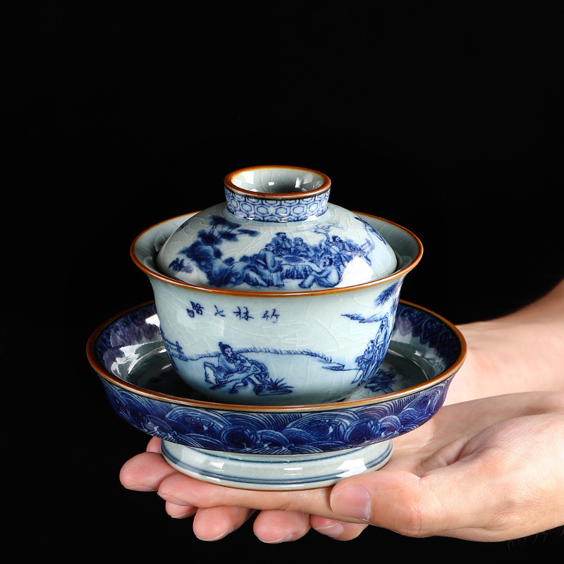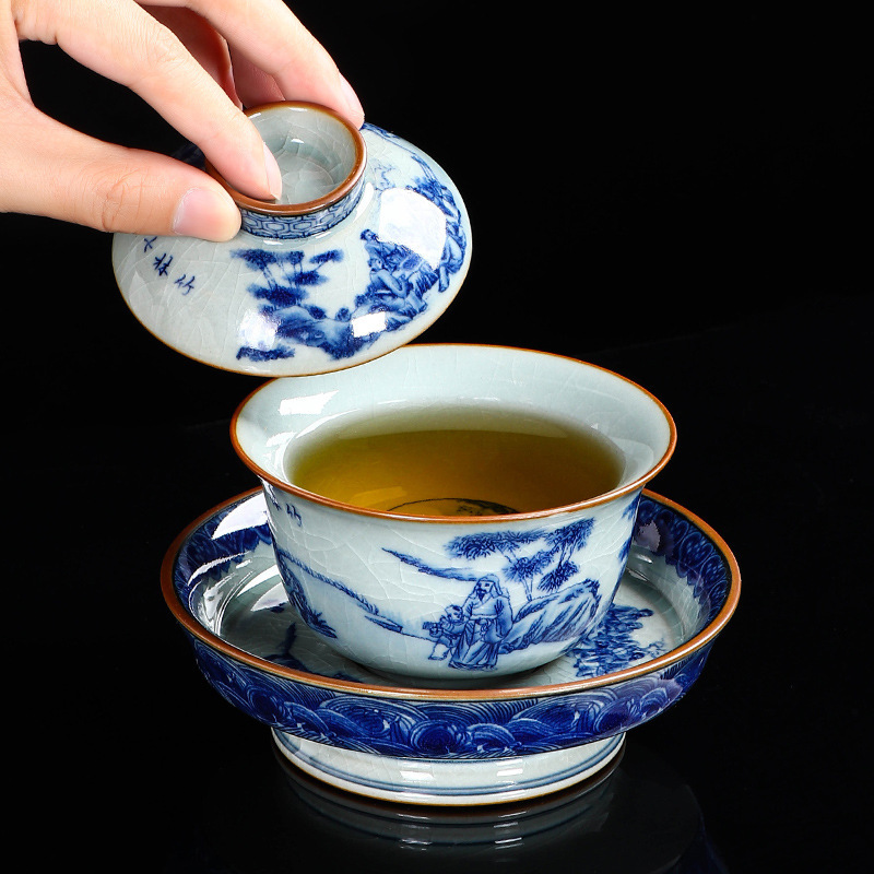 Ceramic three-talent cover bowl single kung fu tea set not hot blue and white porcelain tea bowl serving tea bowl large office household