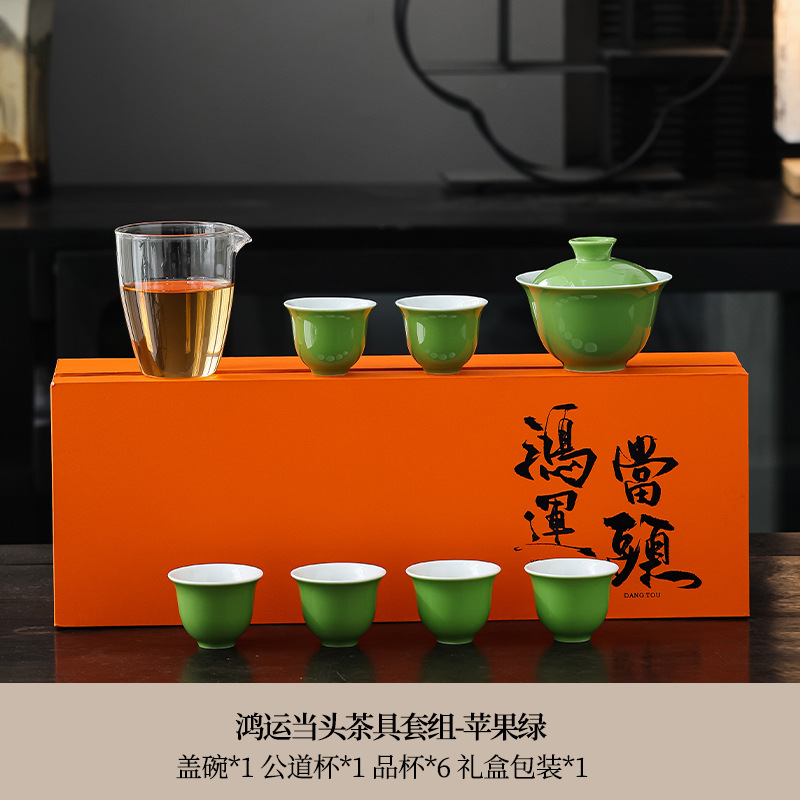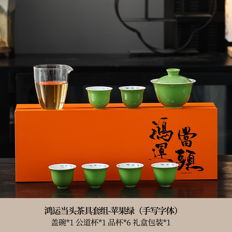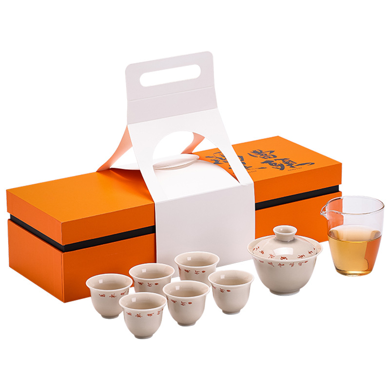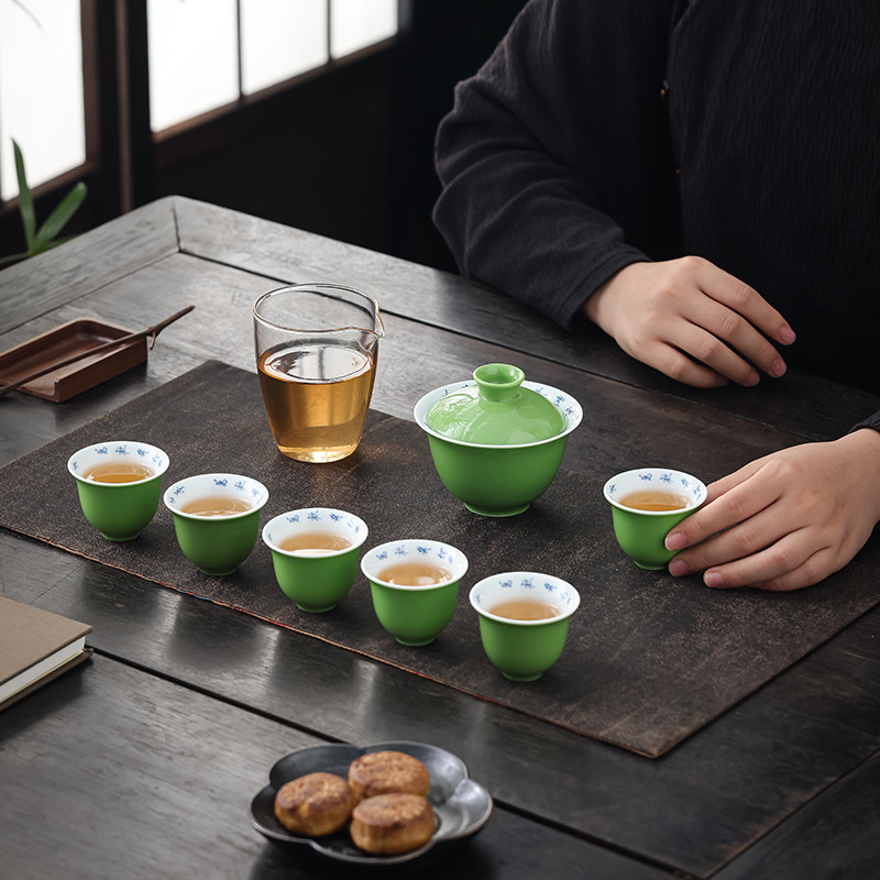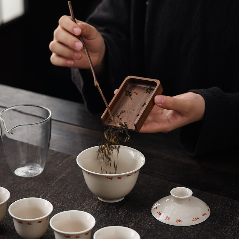 China white kung fu tea set, plant ash, Japanese retro ceramic cover bowl, tea cup, household tea making business gift