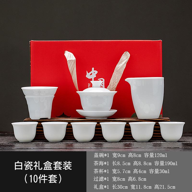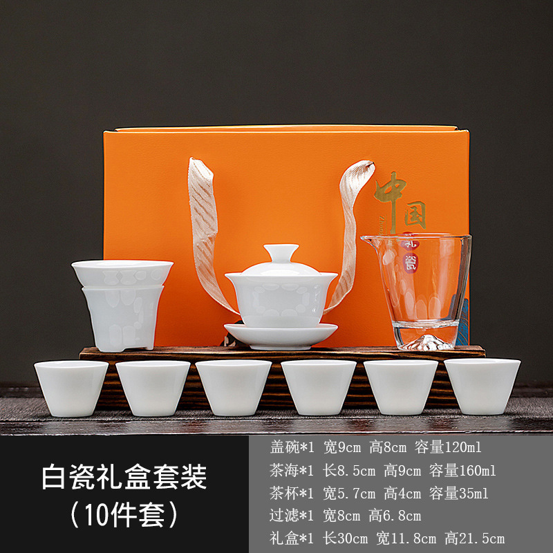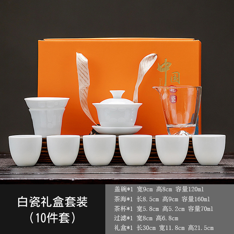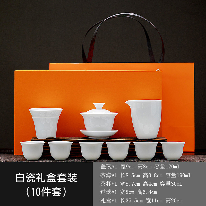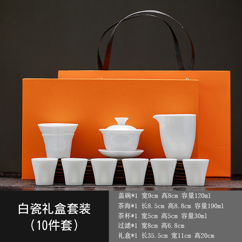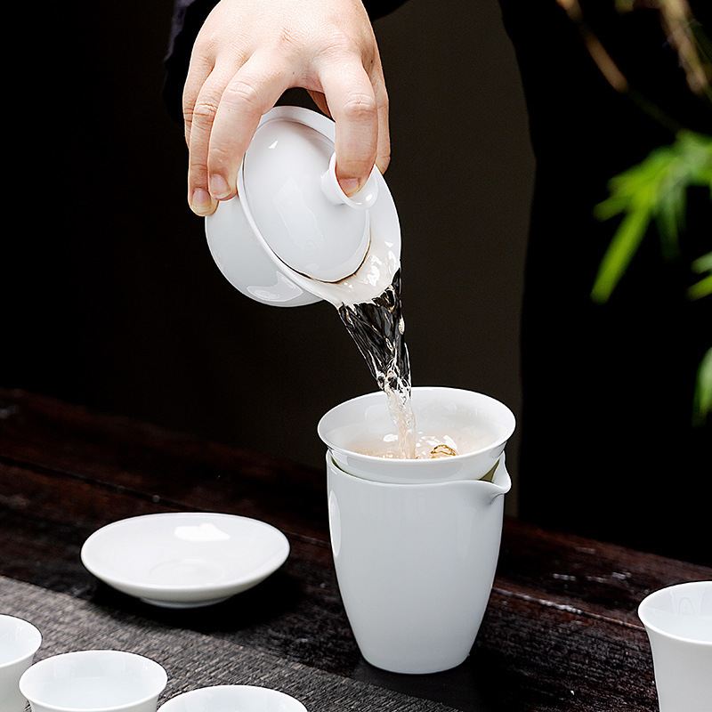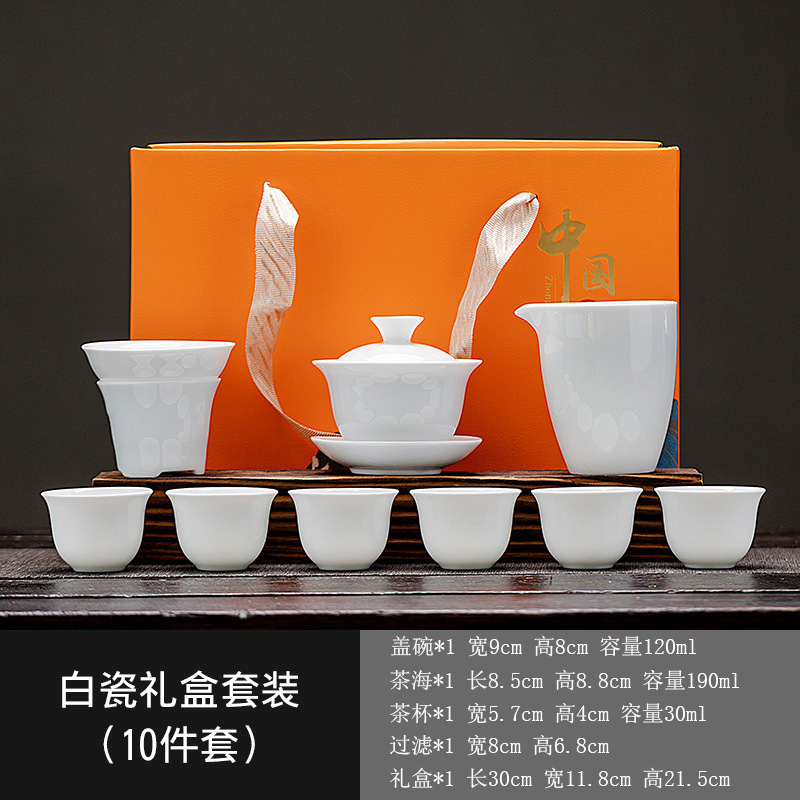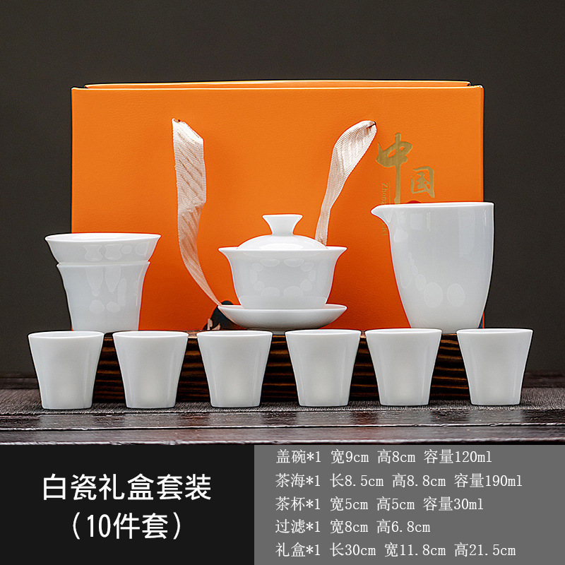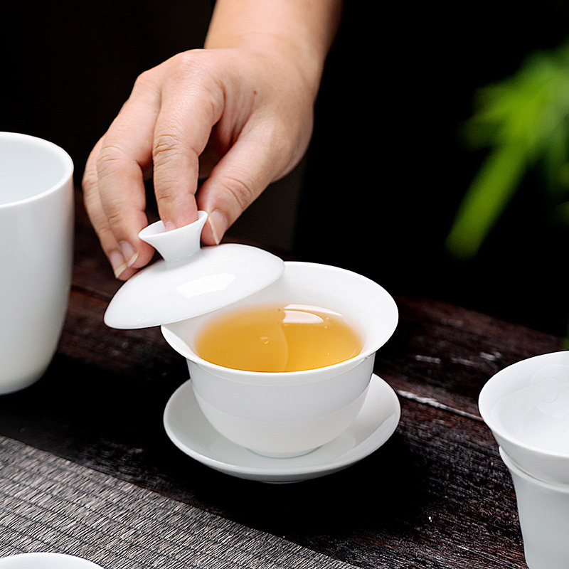 Dehua Yangzhi Jade White Porcelain Tea Set Kungfu Tea Set Cover Bowl Single Cup Company Annual Meeting Event Business Gifts