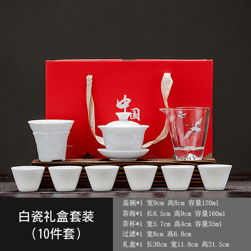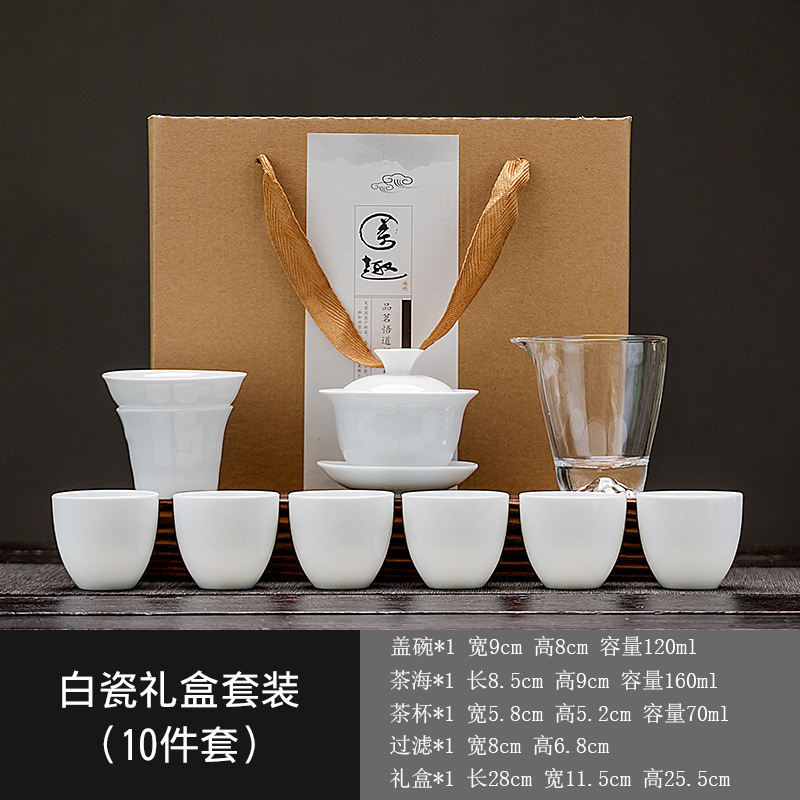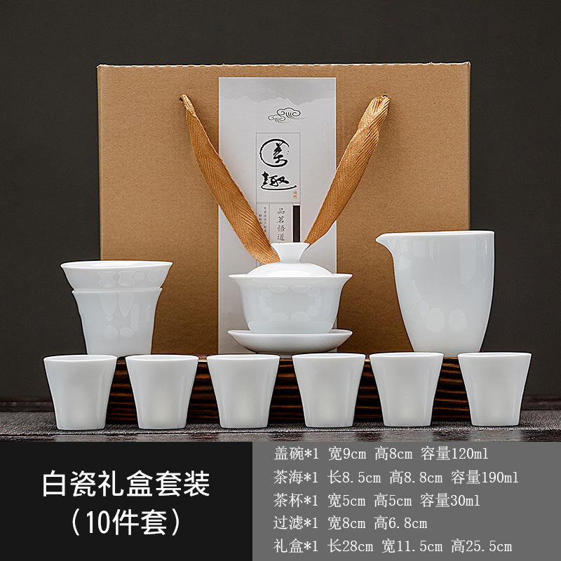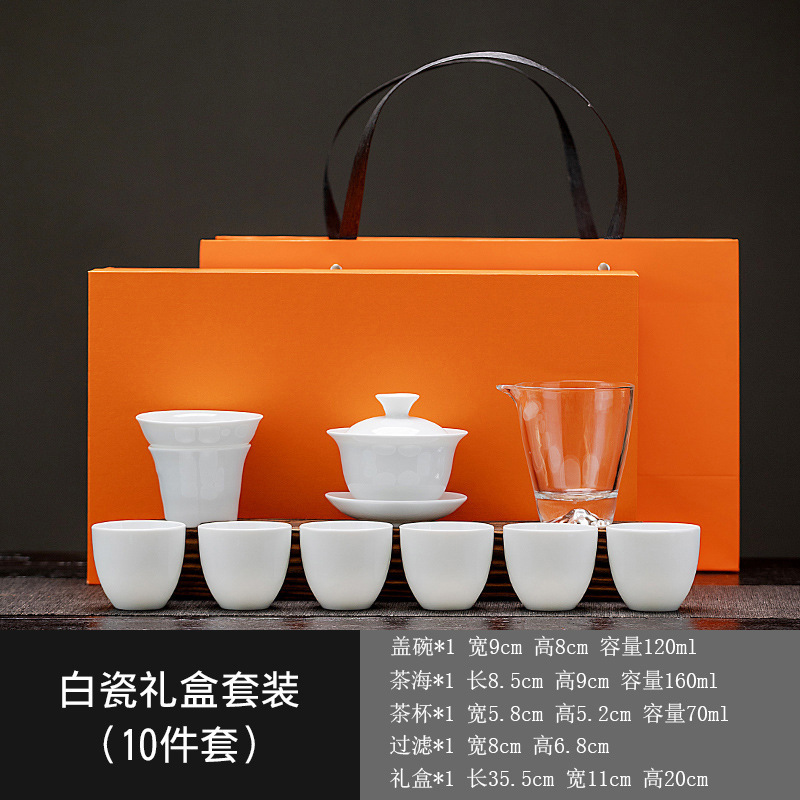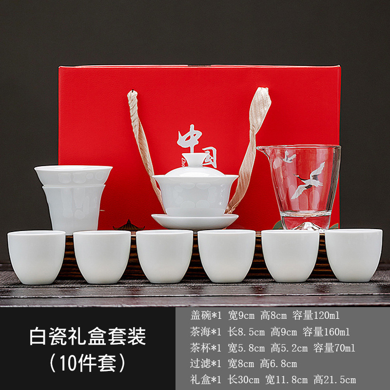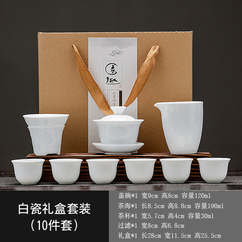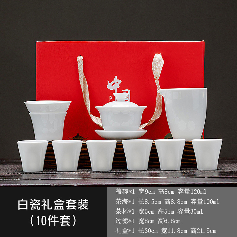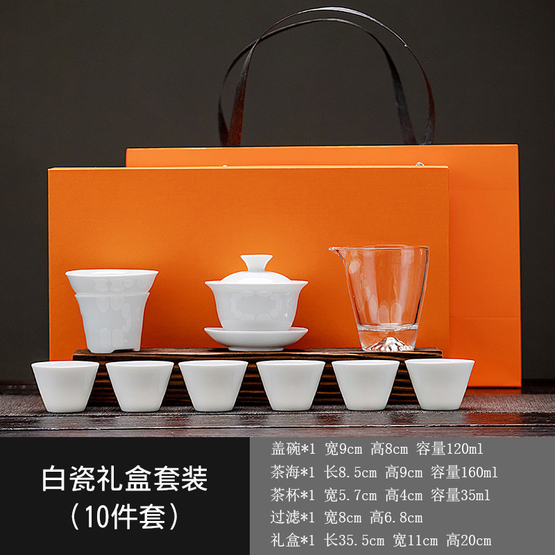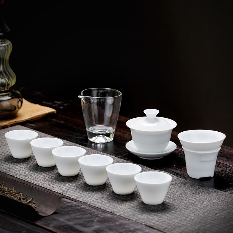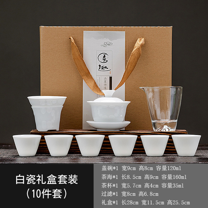 Dehua Yangzhi Jade White Porcelain Tea Set Kungfu Tea Set Cover Bowl Single Cup Company Annual Meeting Event Business Gifts