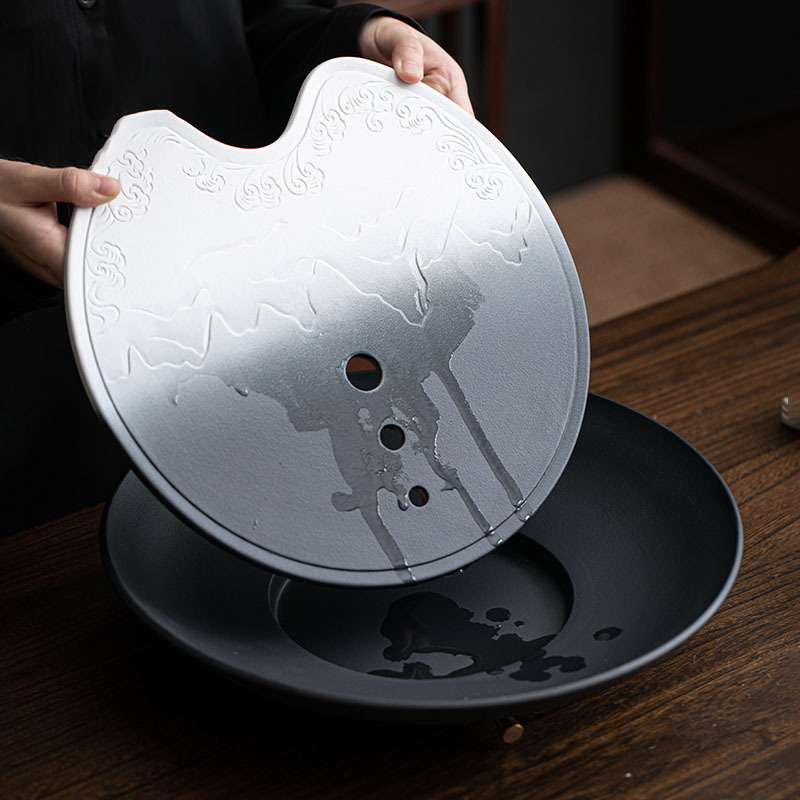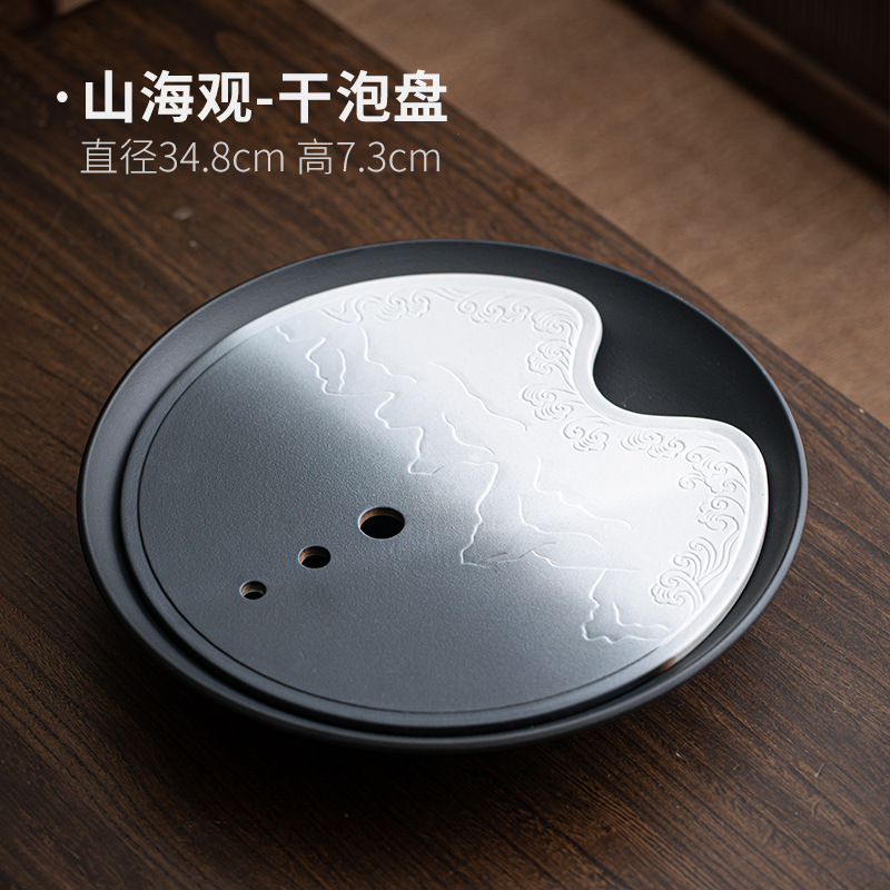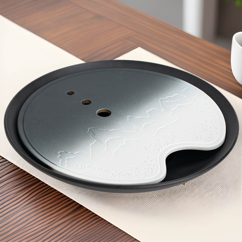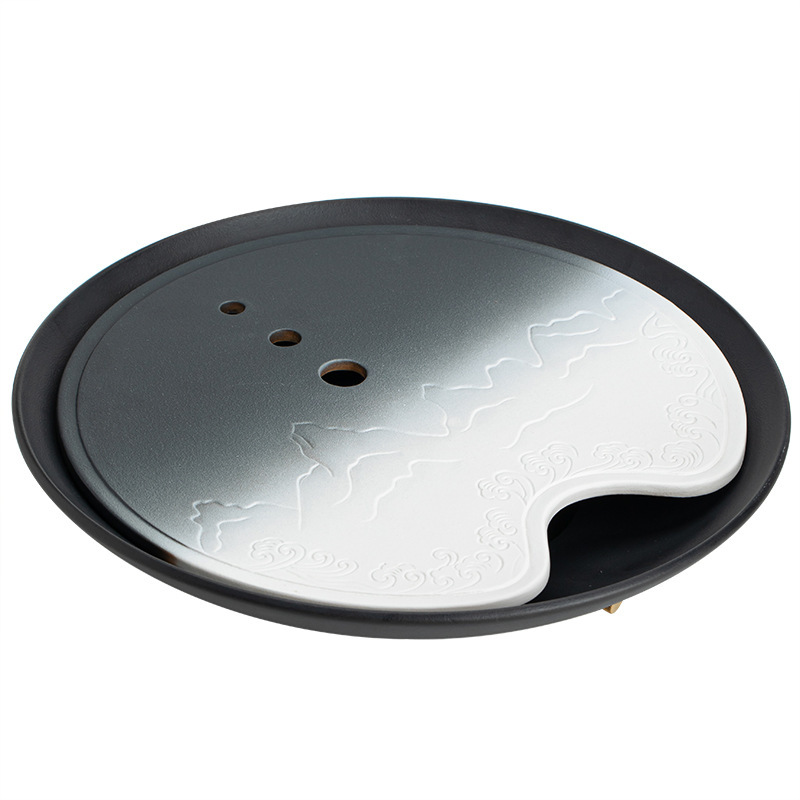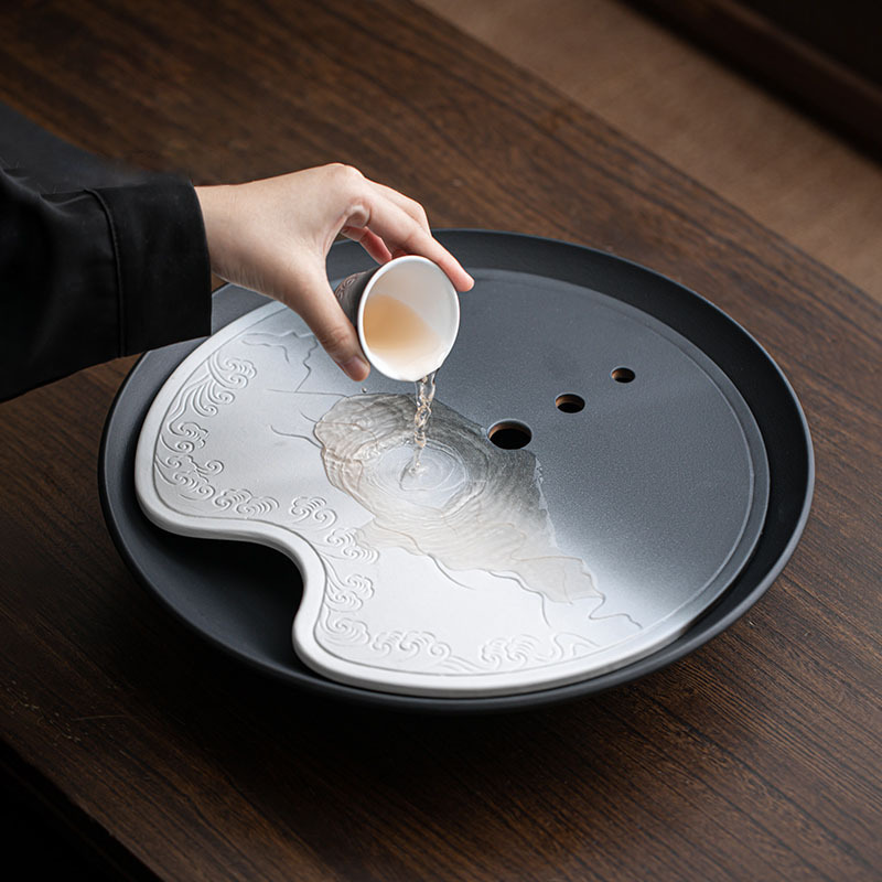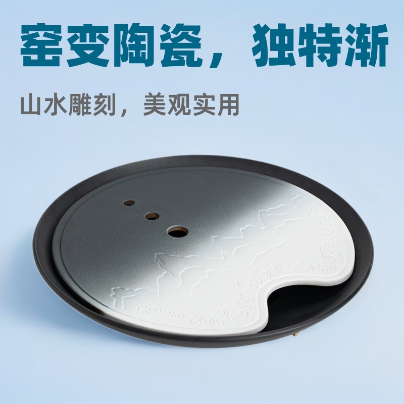 Dehua kiln transformation ceramic tea tray large round household kung fu tea tray water storage tea table gradual change tea tray