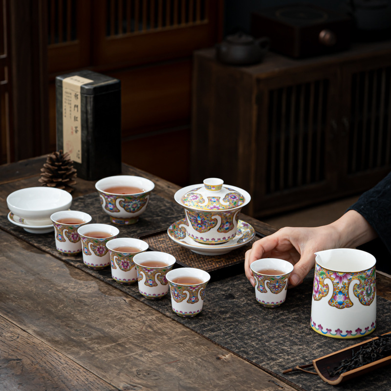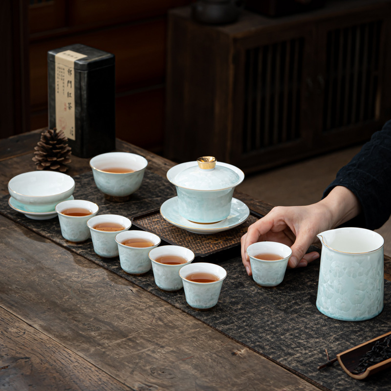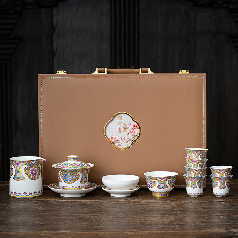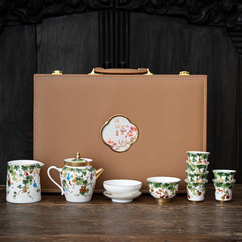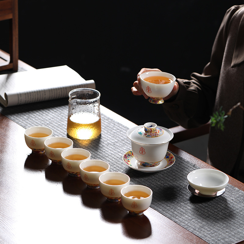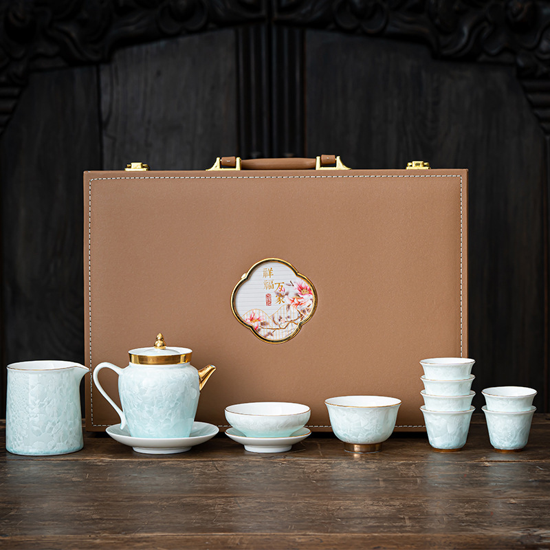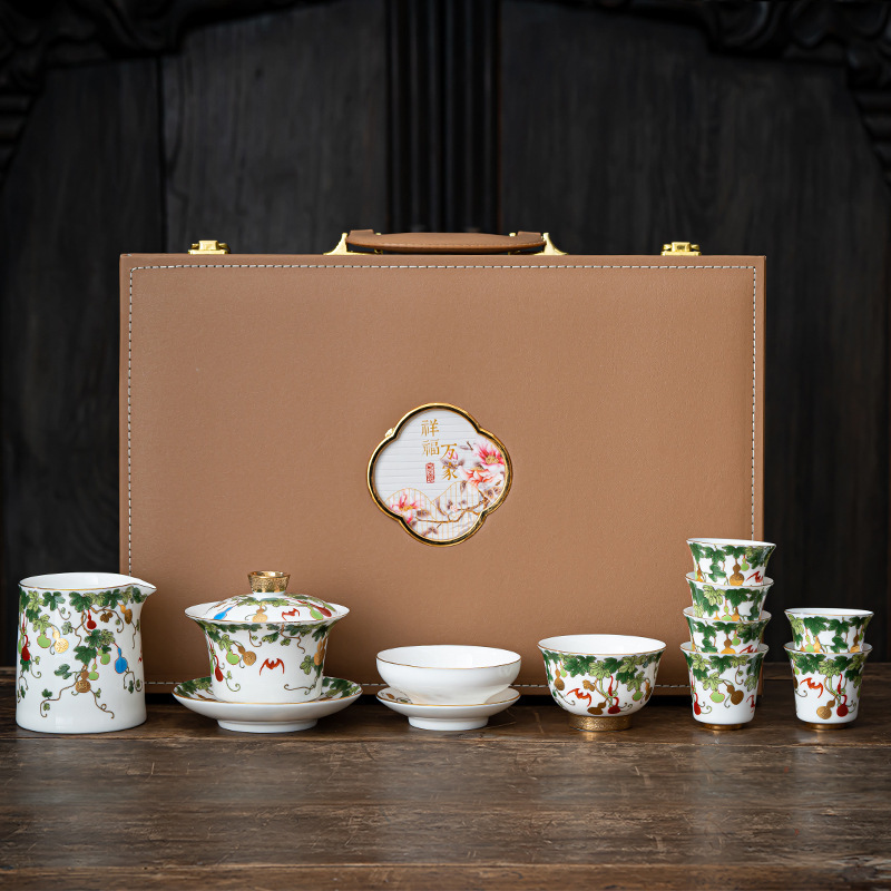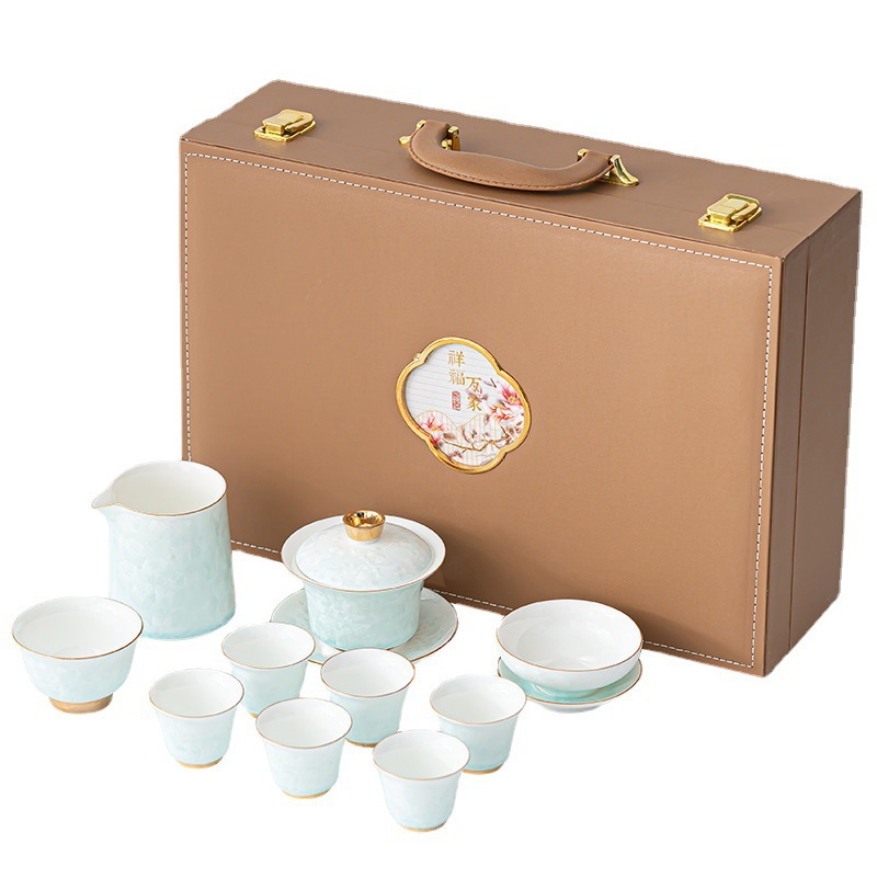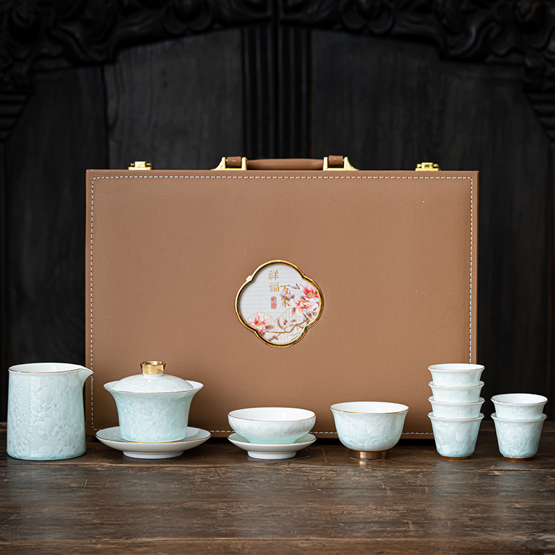 Tea set Kung Fu tea set with bowl lid teapot master cup sheep fat jade ceramic tea set high-end gift LOGO