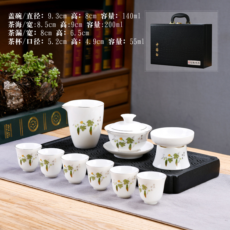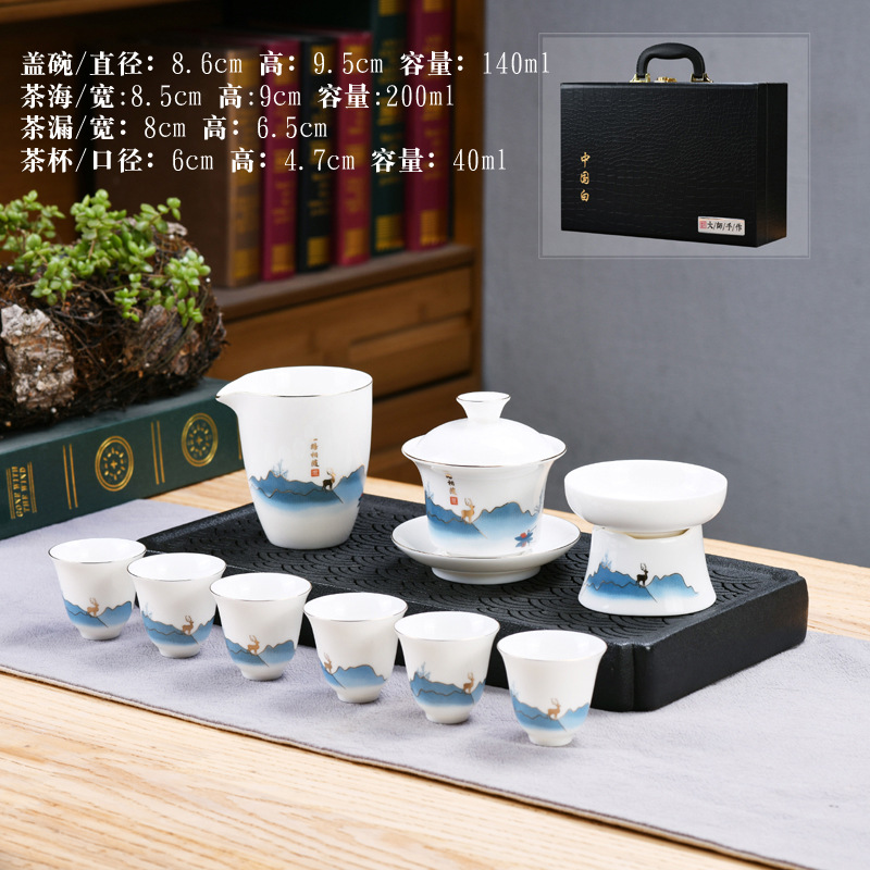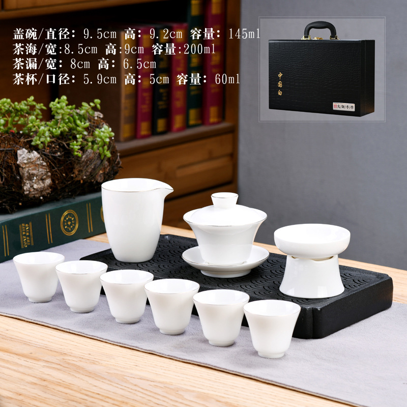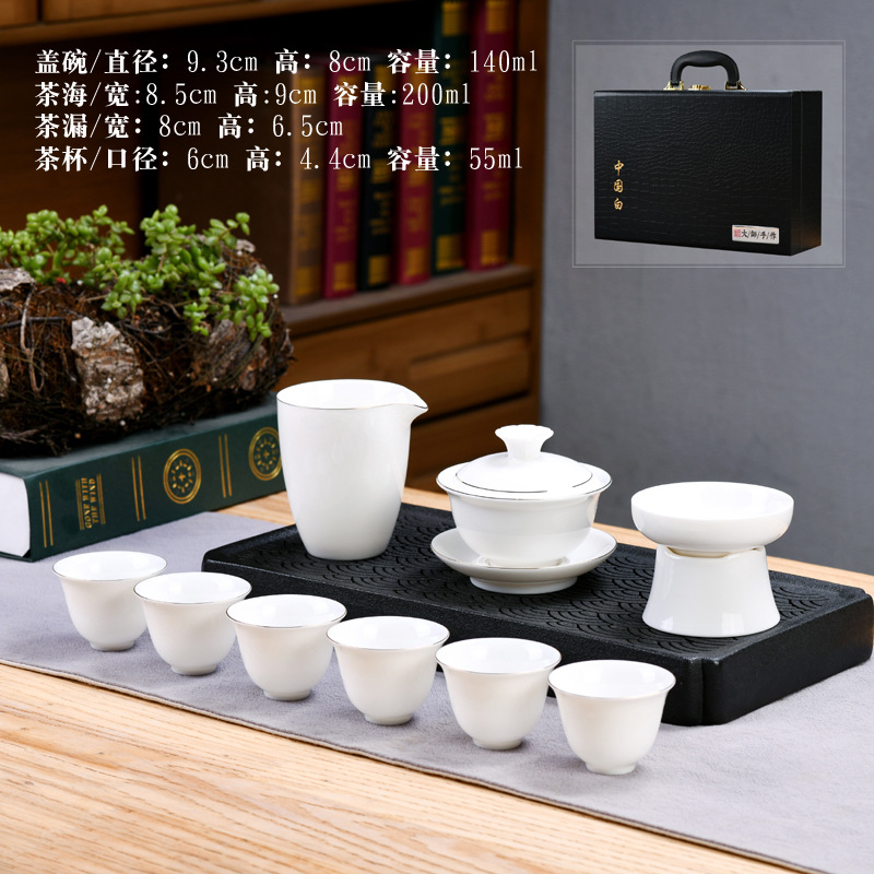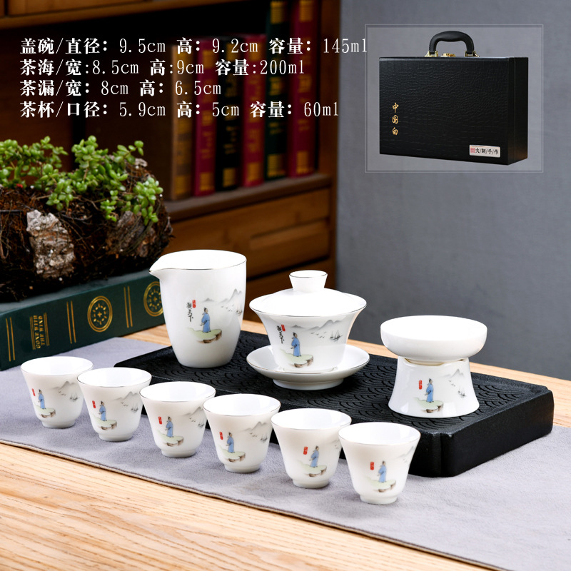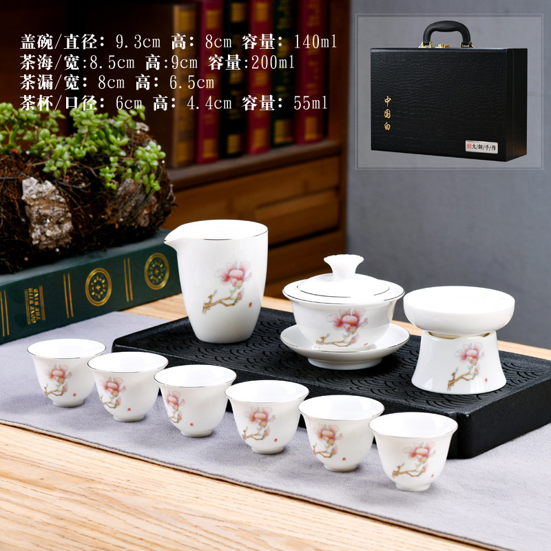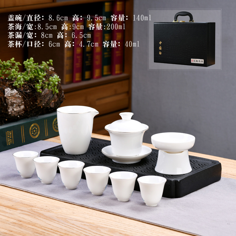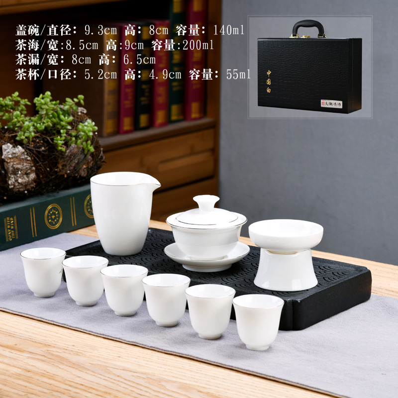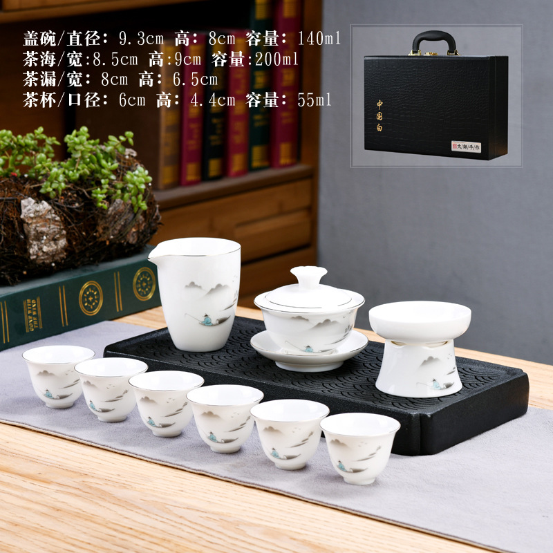 Dehua sheep fat jade kung fu tea set home living room guest office tea cup ceramic gift box national trend gift box