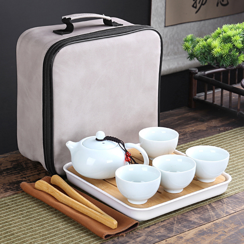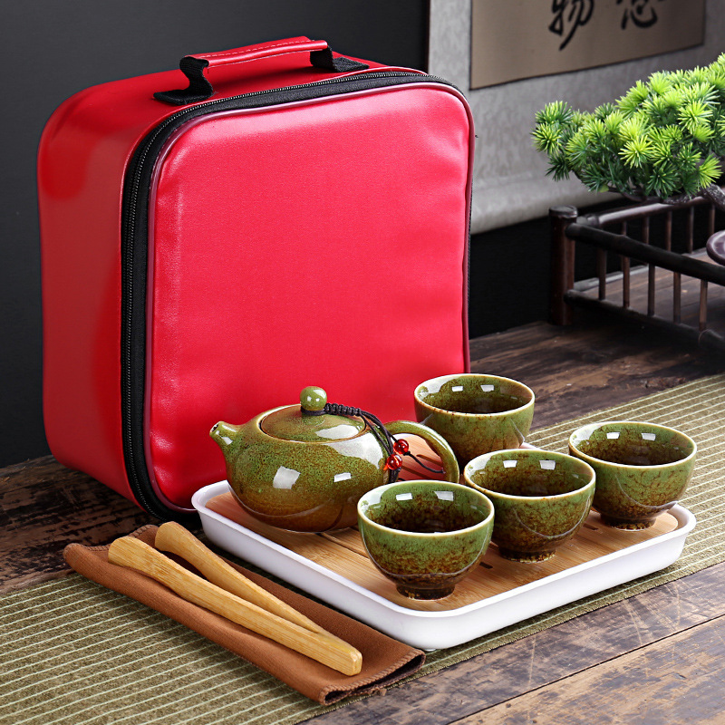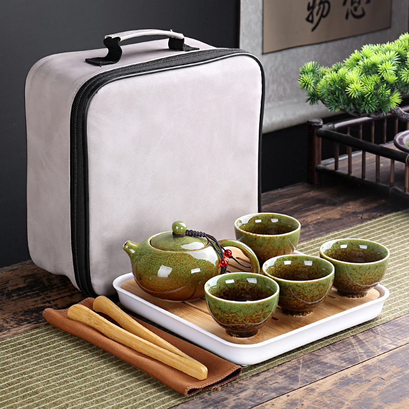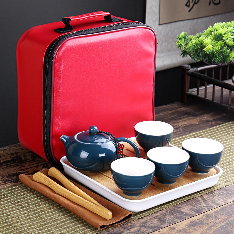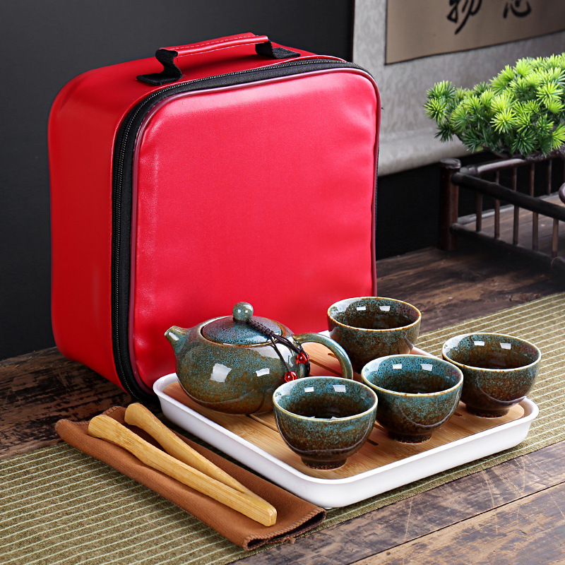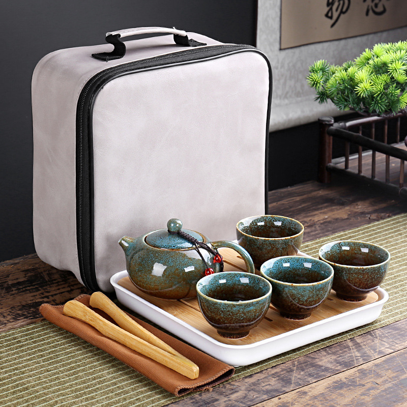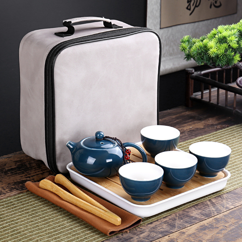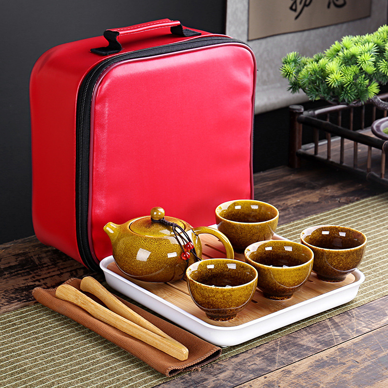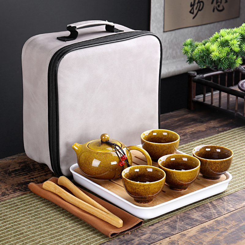 Travel tea set portable ceramics kiln glaze one pot four cups tea set household personal gift gift box