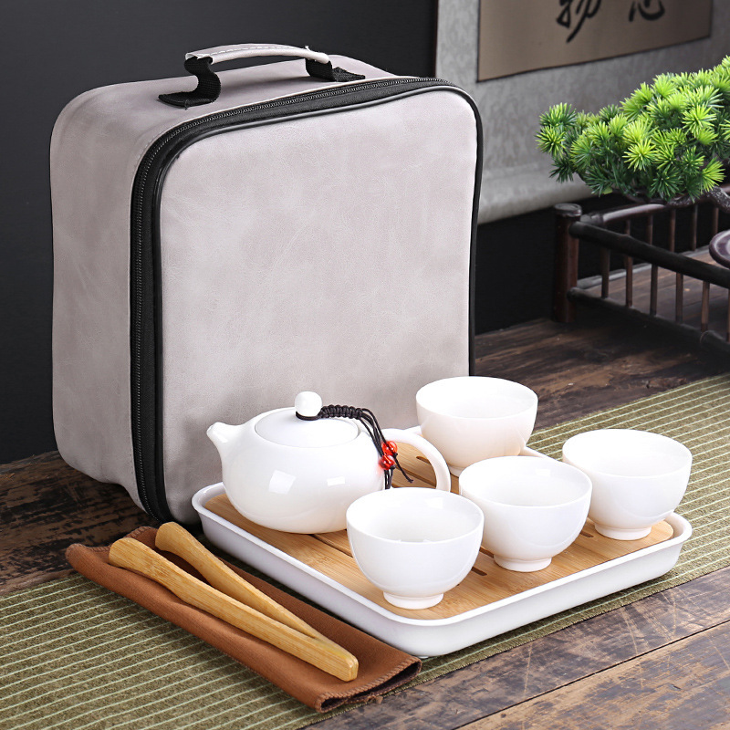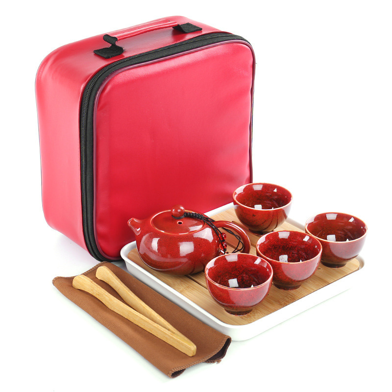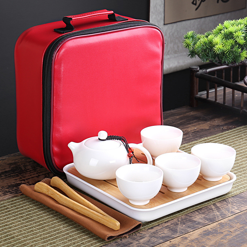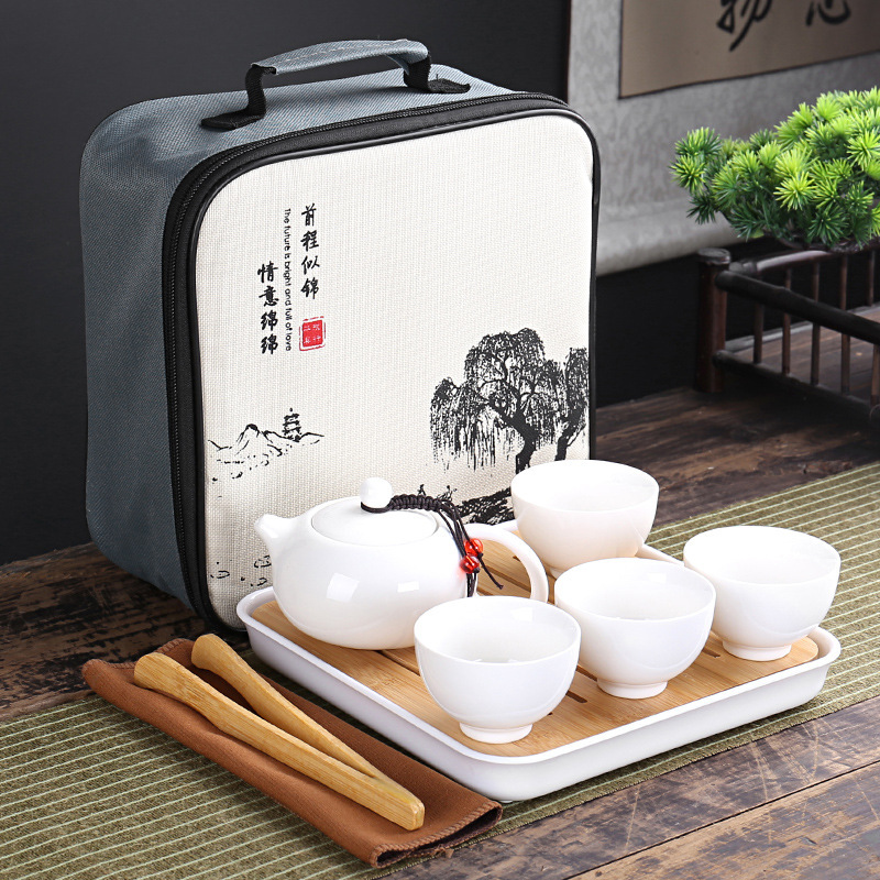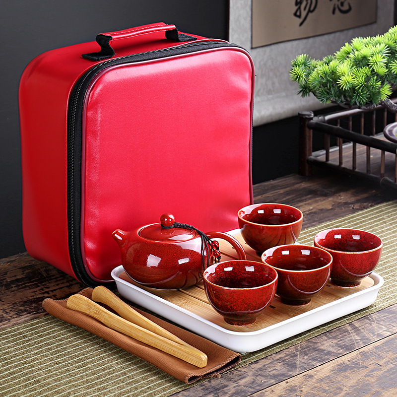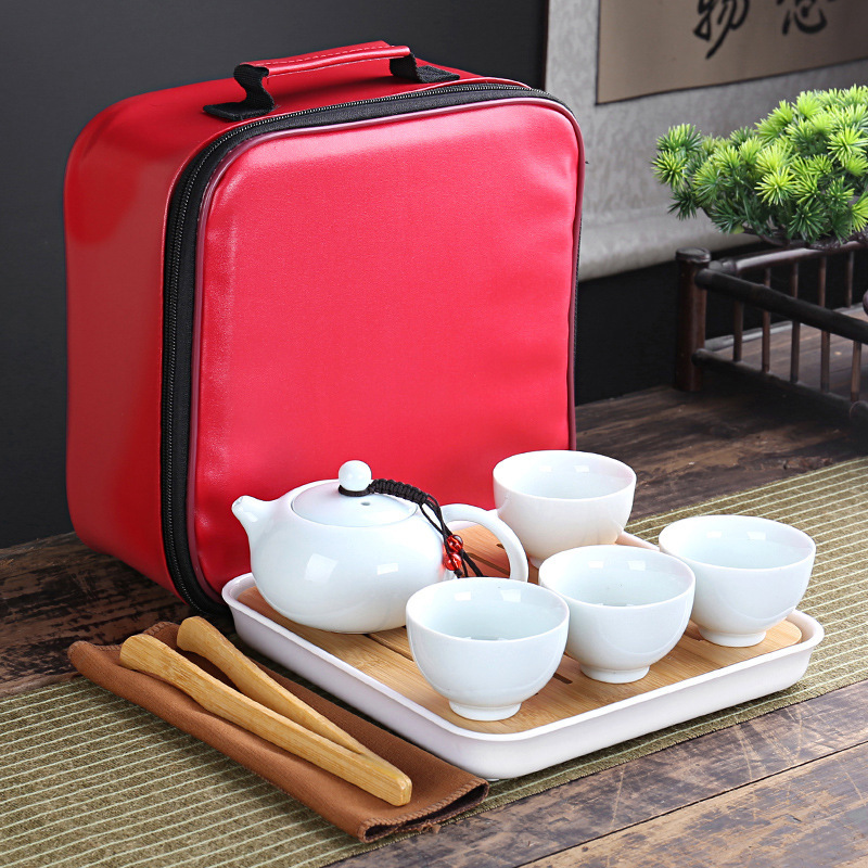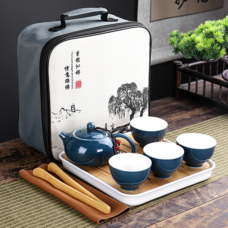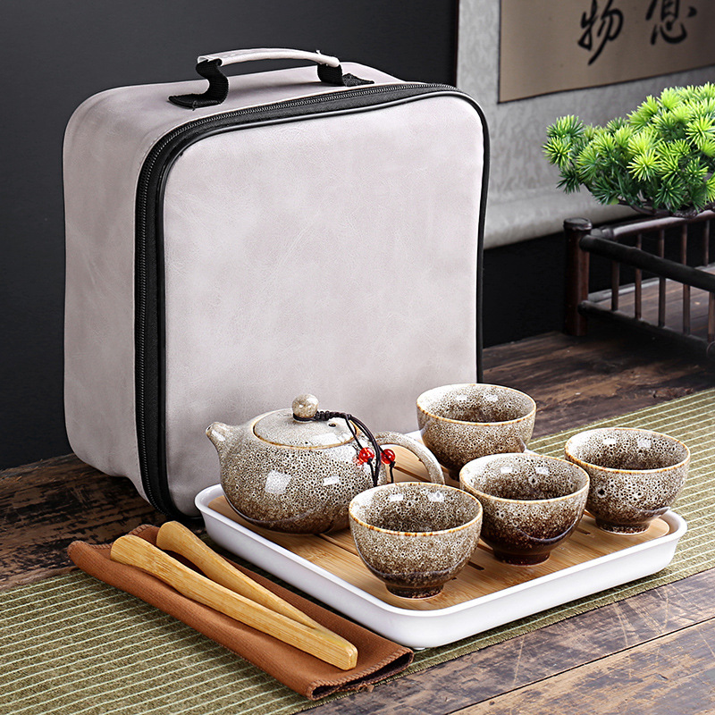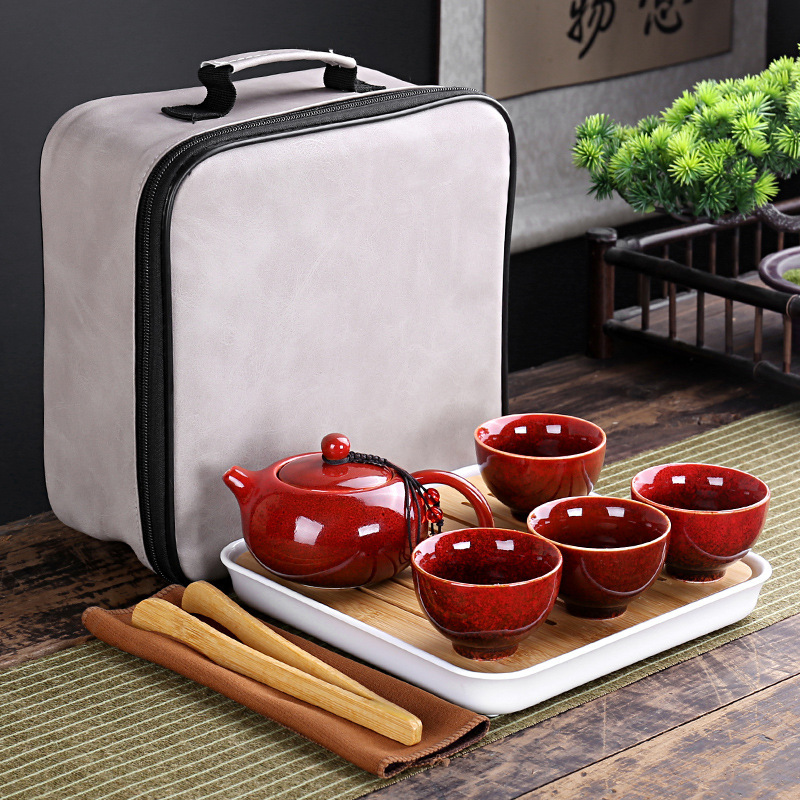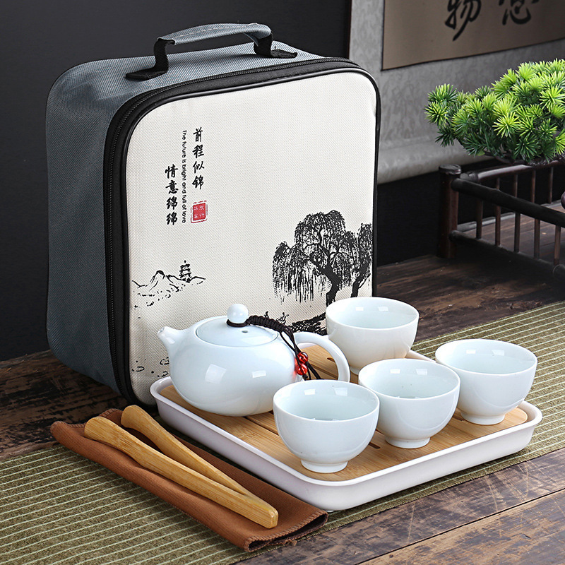 Travel tea set portable ceramics kiln glaze one pot four cups tea set household personal gift gift box