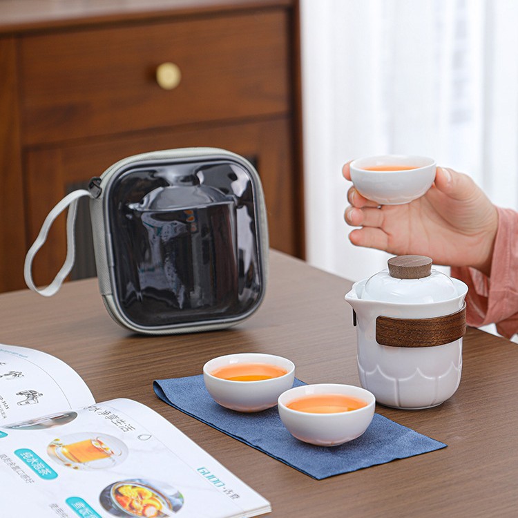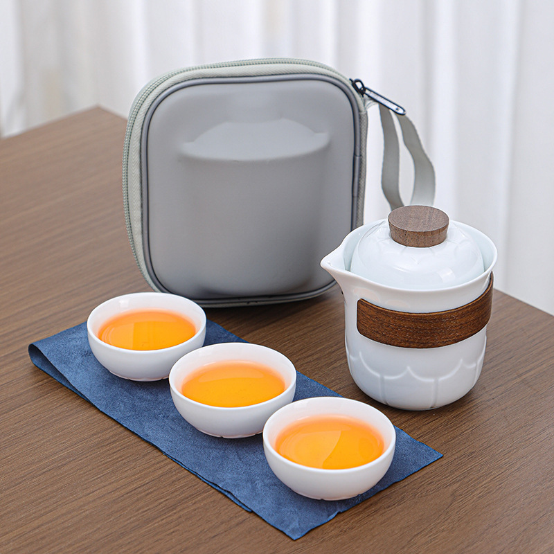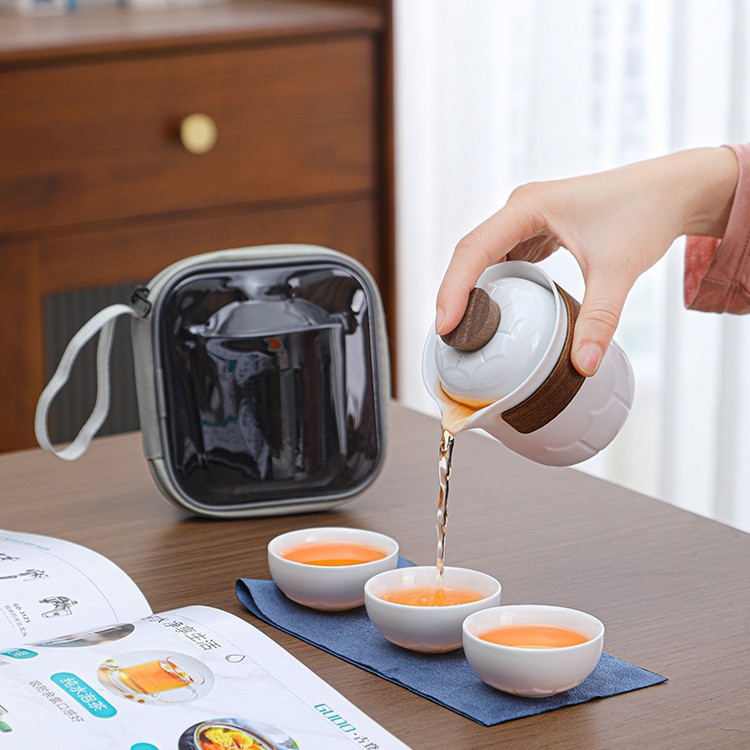 Outdoor travel tea set, portable household, one pot, three cups, quick cups, business gift, company opening ceremony