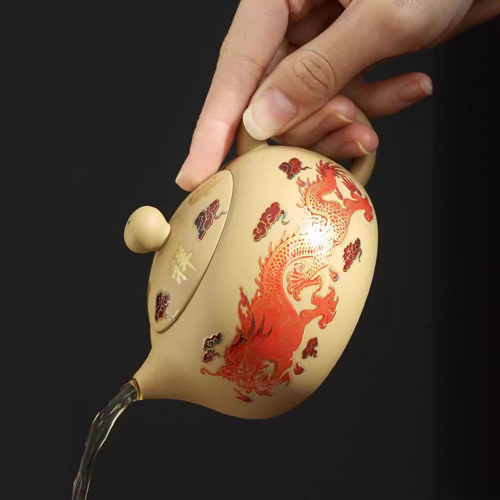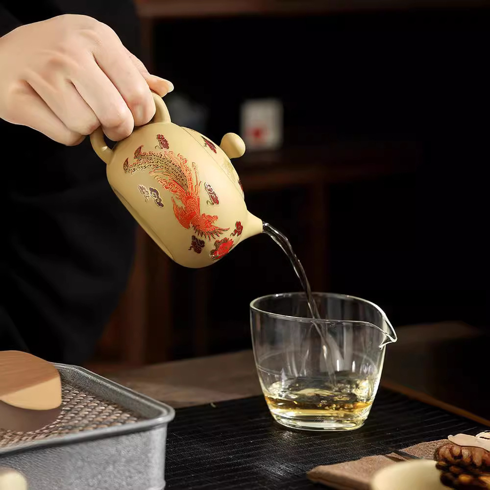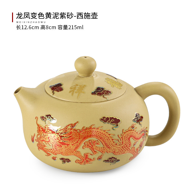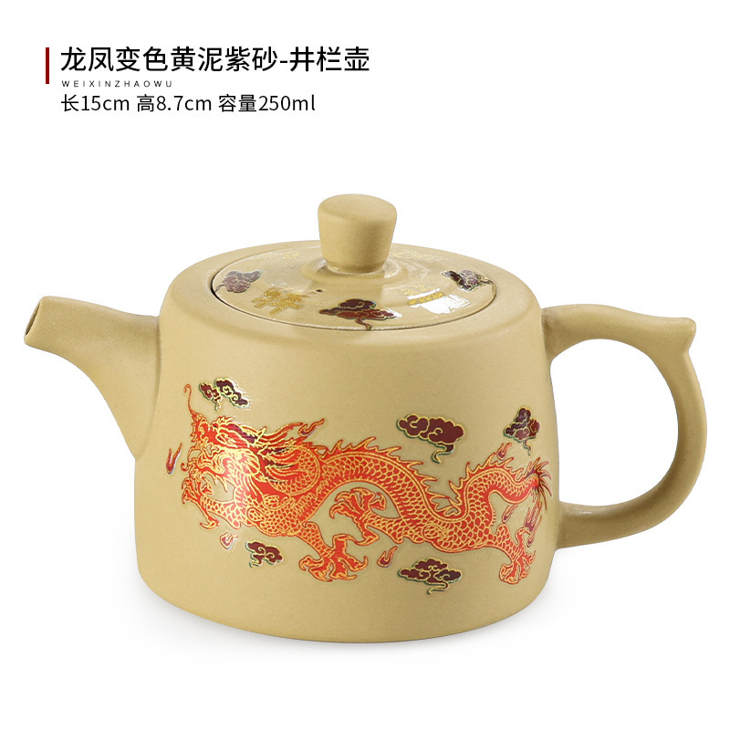 Color changing yellow mud purple sand teapot, dragon and phoenix kung fu tea set, household size and size, Xishi pot, Fengming pot