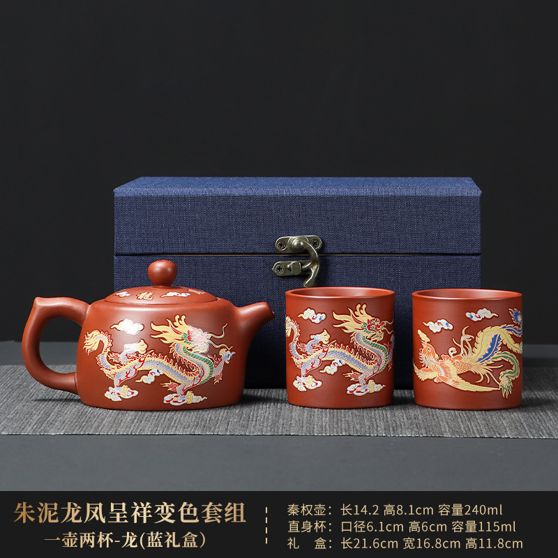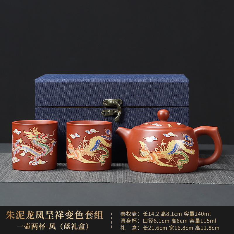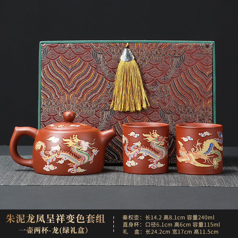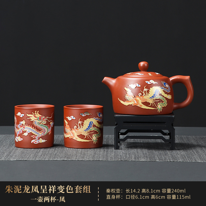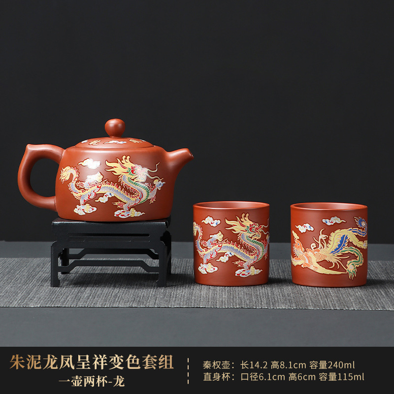 Dragon and Feng's temperature changes, Qin Quan's pot changes color when encountering hot water, making tea pot set, one pot, two cups, high-value, national trend, accompanying gift