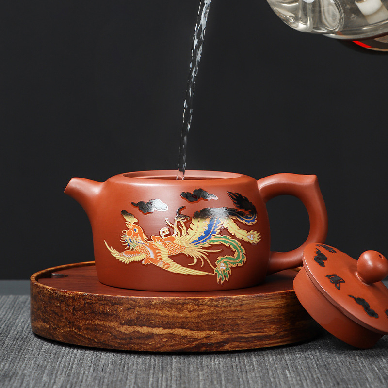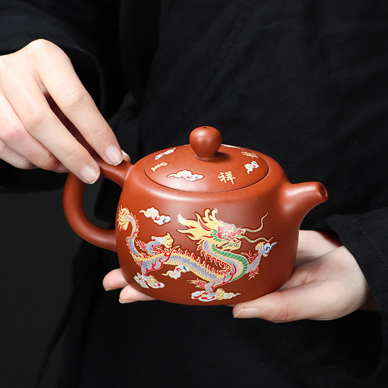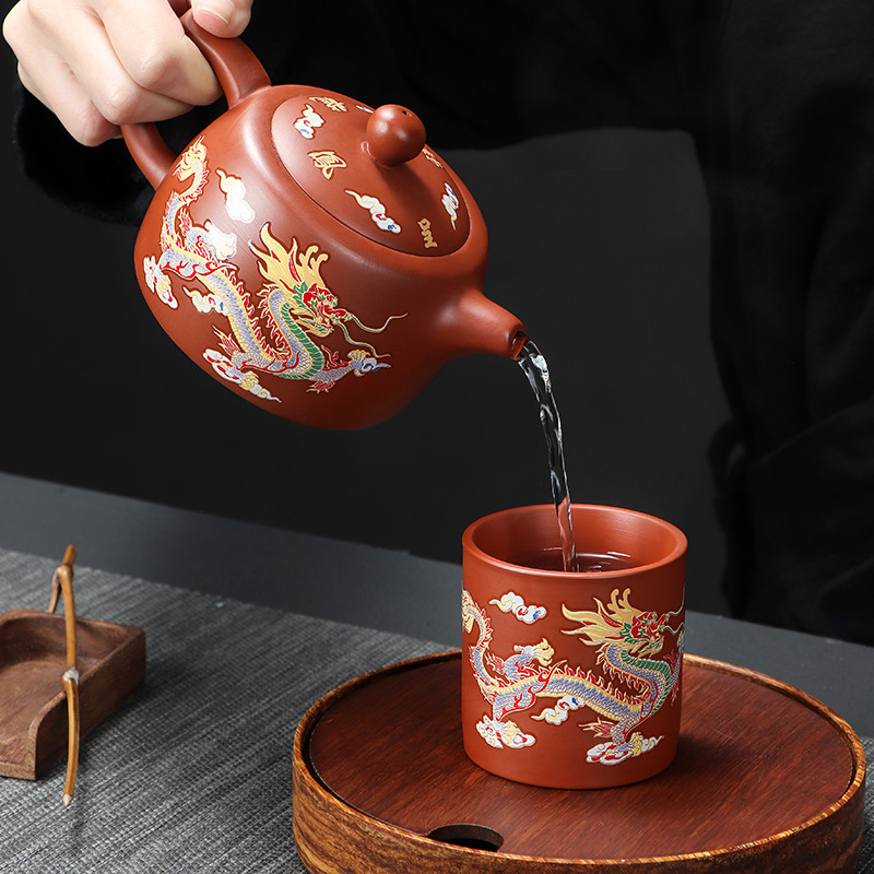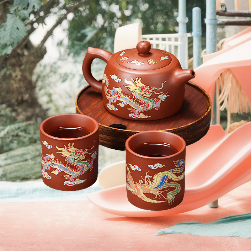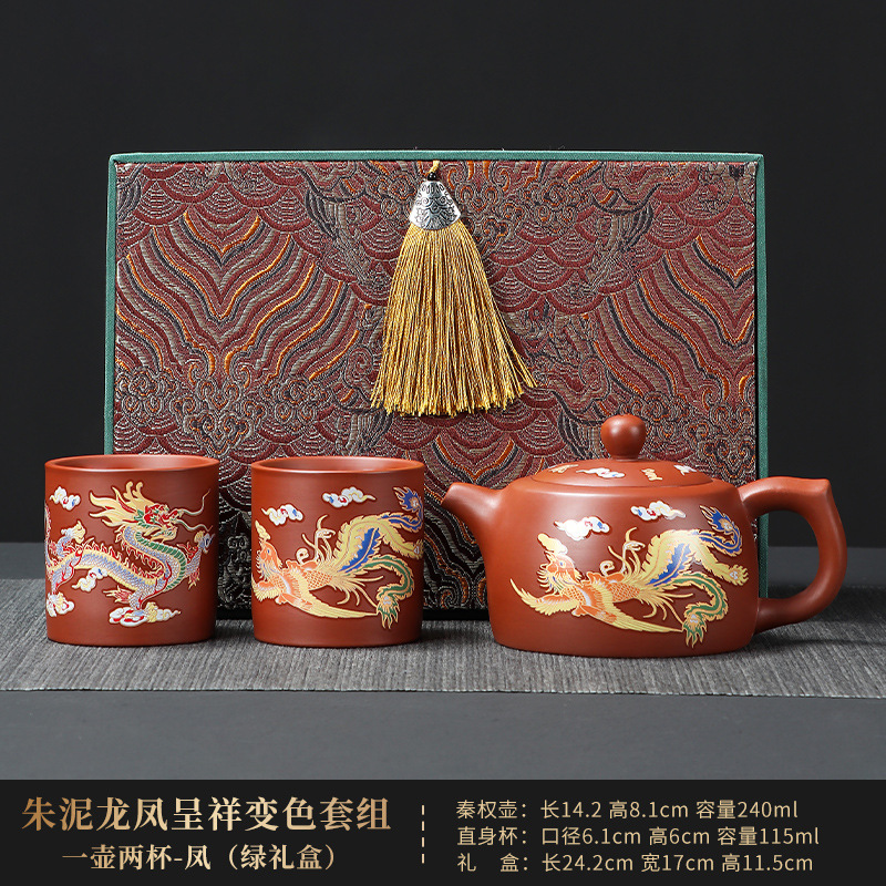 Dragon and Feng's temperature changes, Qin Quan's pot changes color when encountering hot water, making tea pot set, one pot, two cups, high-value, national trend, accompanying gift