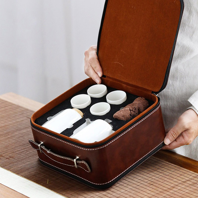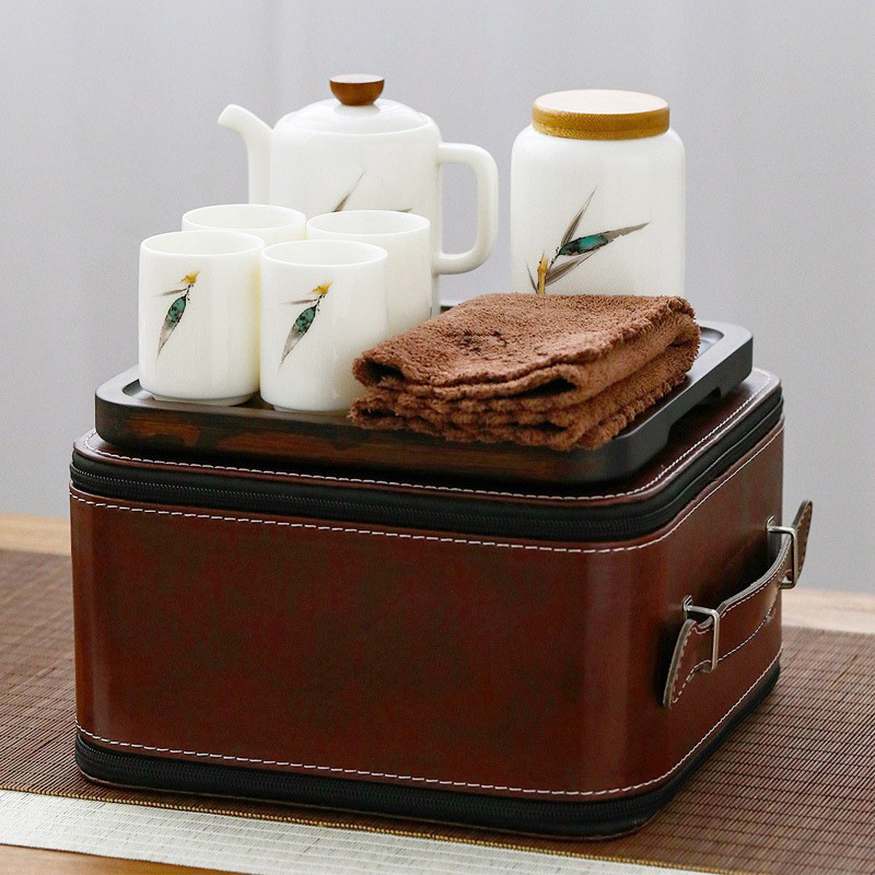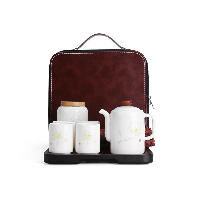 Outdoor travel portable kung fu tea set white porcelain gift home office one pot of four cups express mugs logo