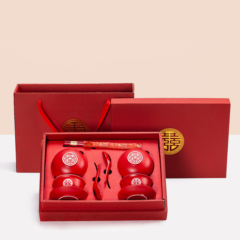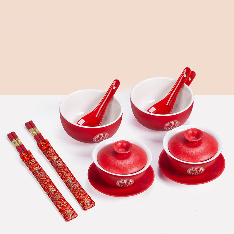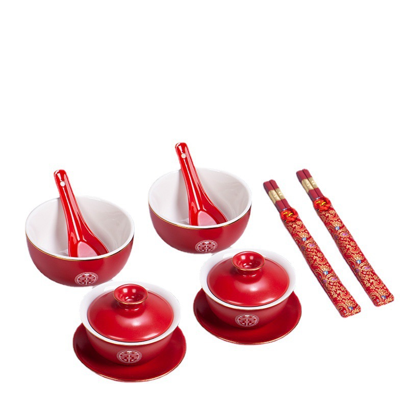 Wedding change, tea cups, a complete set of bowls and chopsticks, wedding bowls, a complete set of red cover bowls, wedding cups, tea cups, wedding gifts