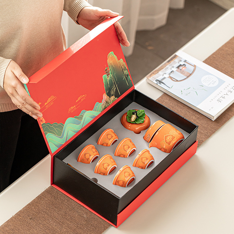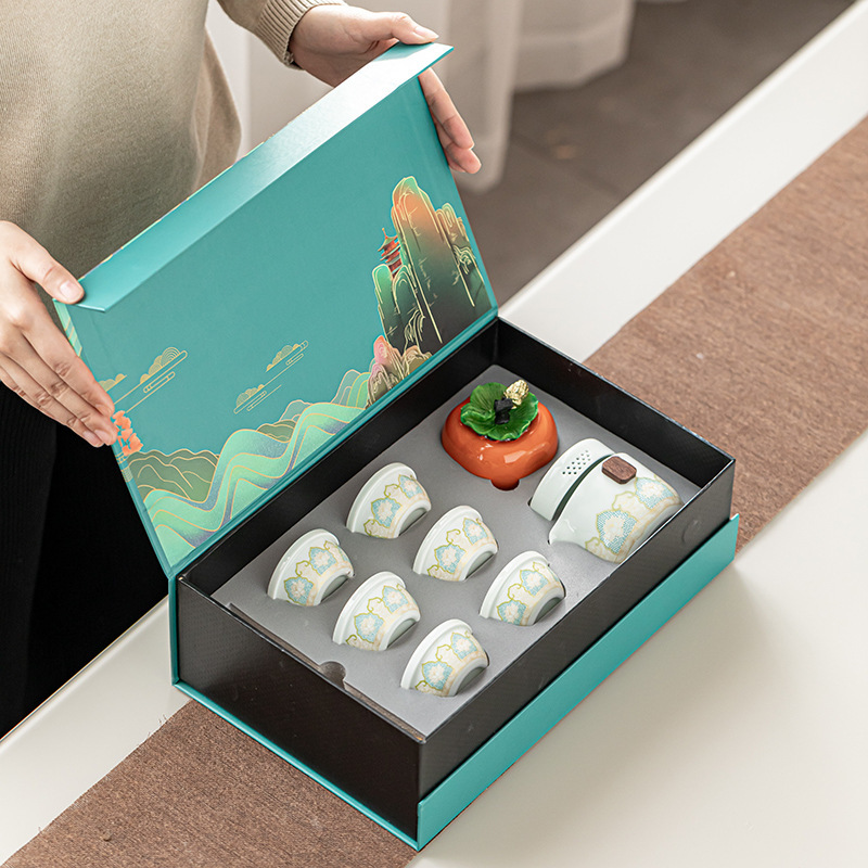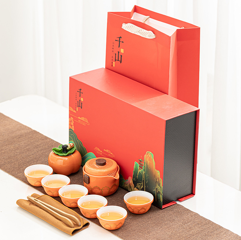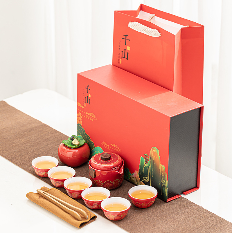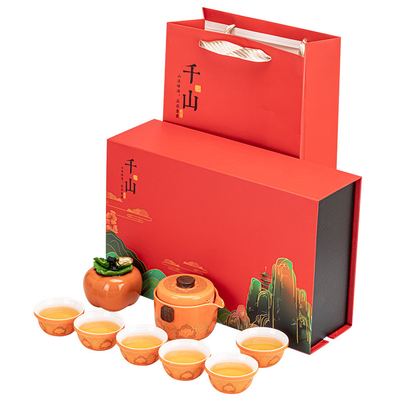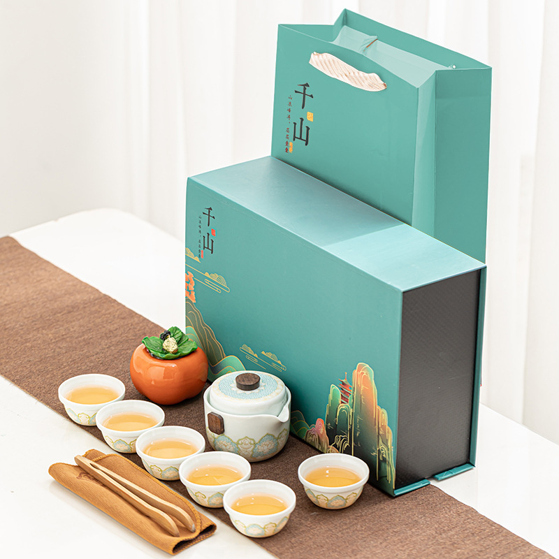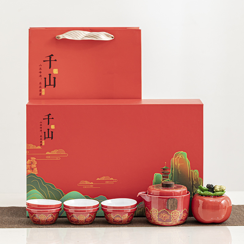 Tea set, portable travel set, one pot, six cups, everything, gifts, Ruyi, thousands of miles, Jiangshan ceramics, business accompanying gift