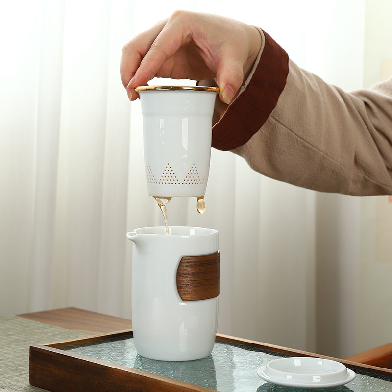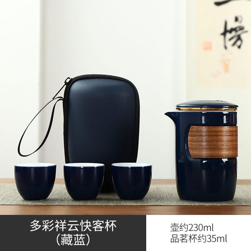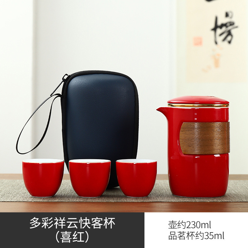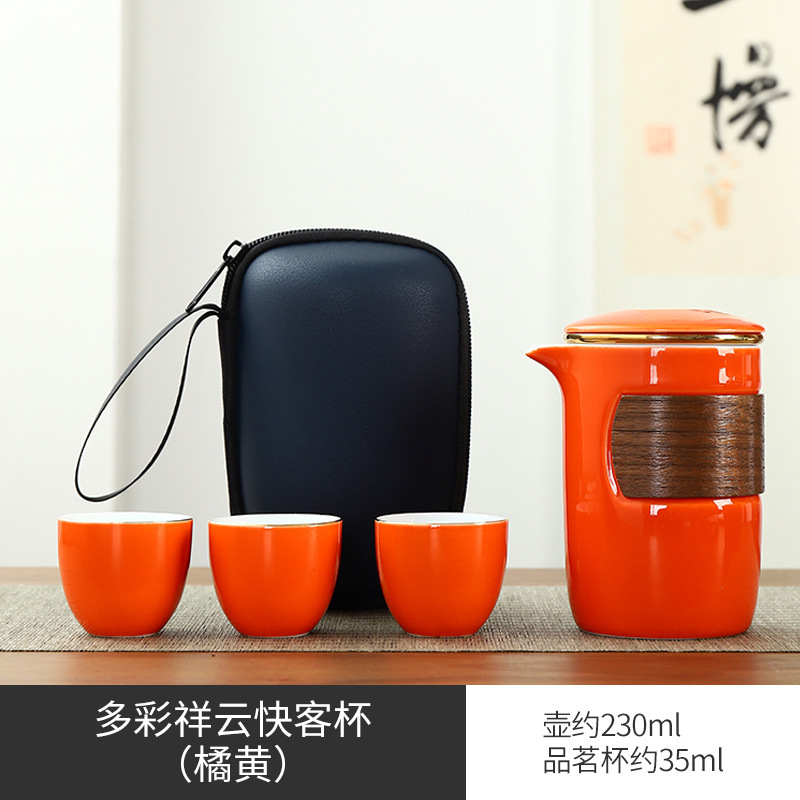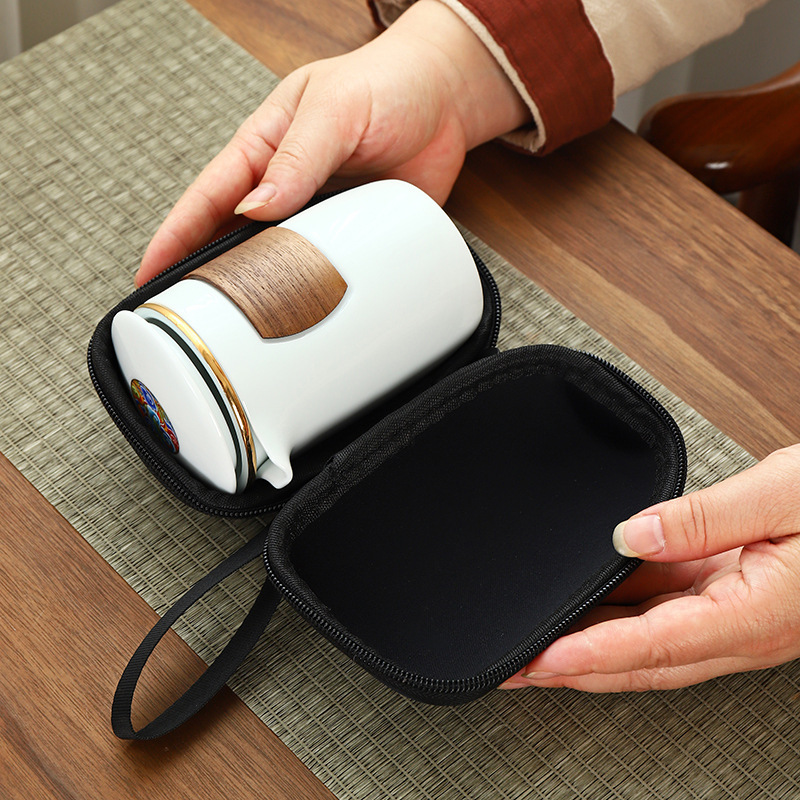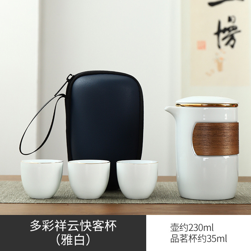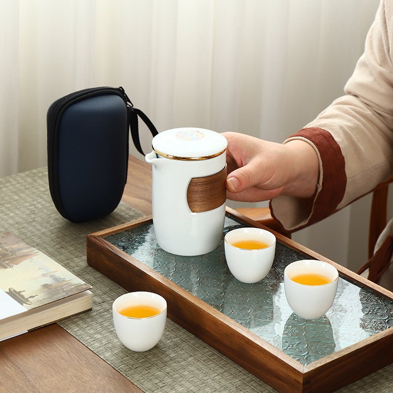 Portable travel kung fu tea set Dehua ceramic outdoor storage bag for business activities, accompanying gifts, logo can be printed