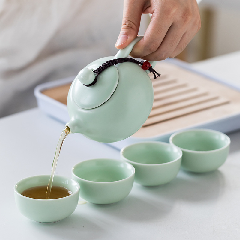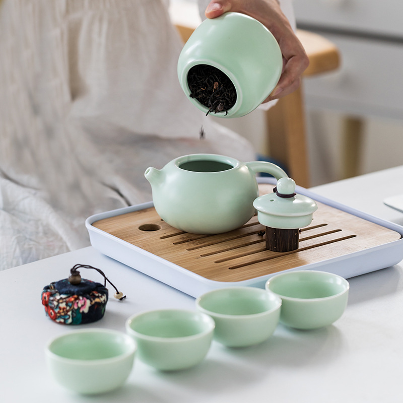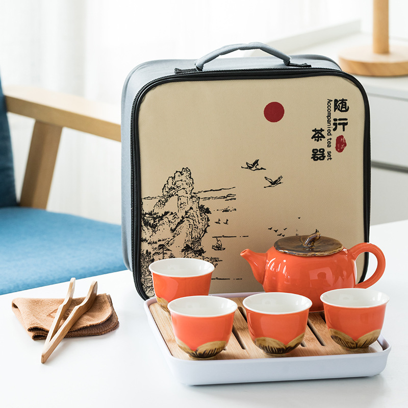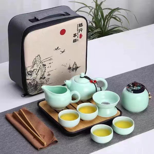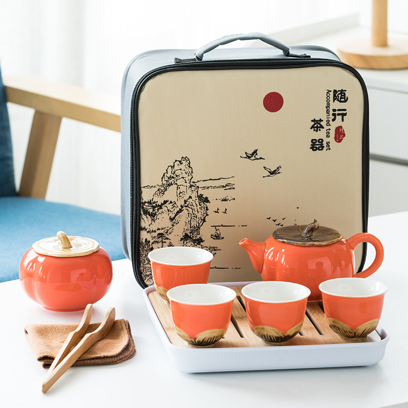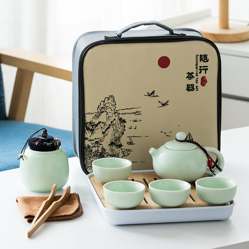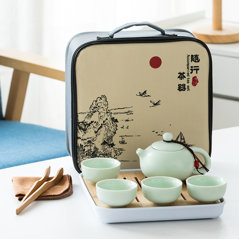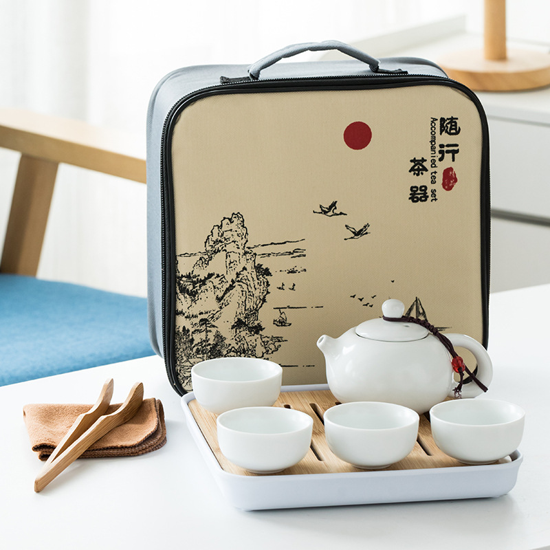 Ceramic Kung Fu Travel Tea Set Portable Bag Outdoor Accompanying Xi Shi One Pot Two Cup Gifts Wholesale