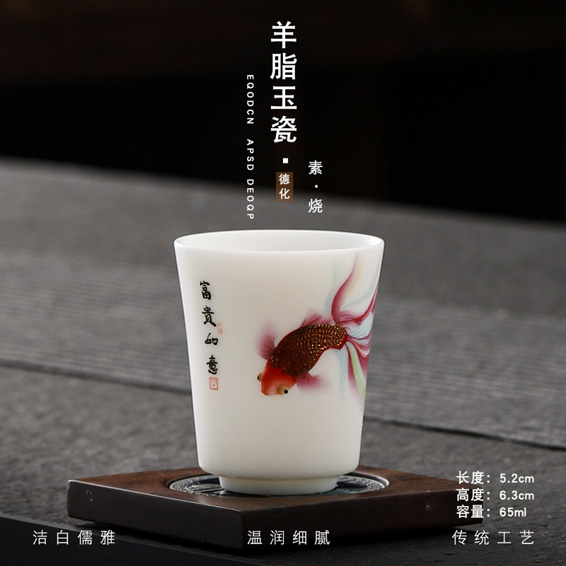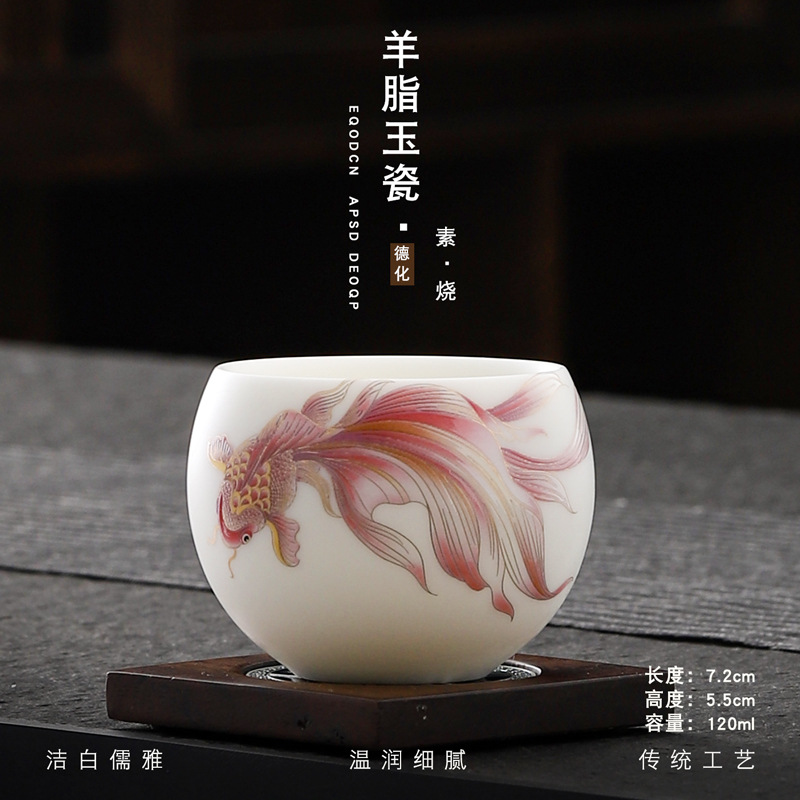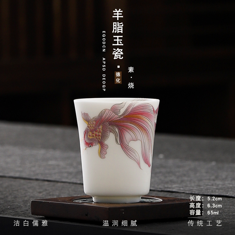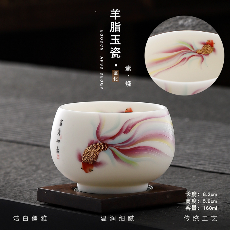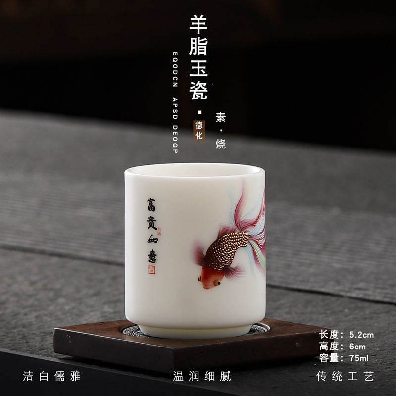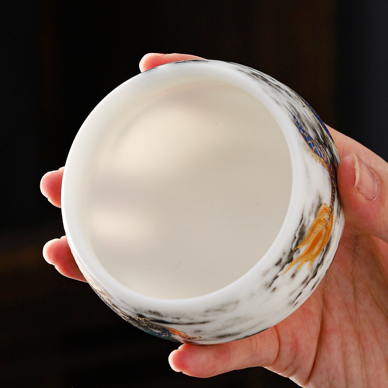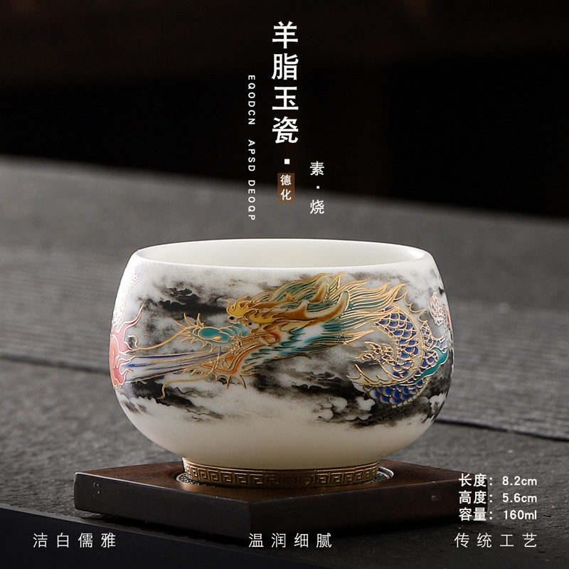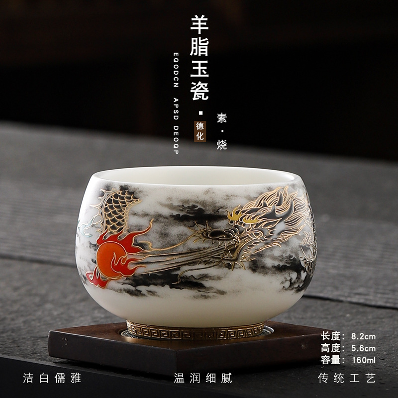 Veget-fired ceramics sheep fat jade auspicious dragon spit beads gilded gold master cup single cup wholesale tea tasting cup tea cup gift