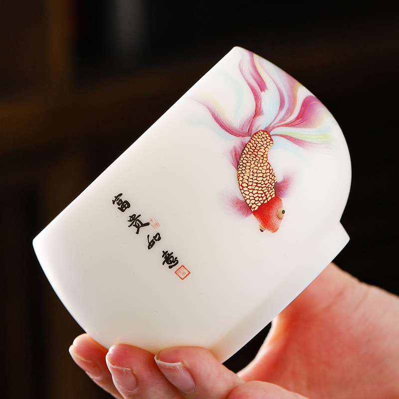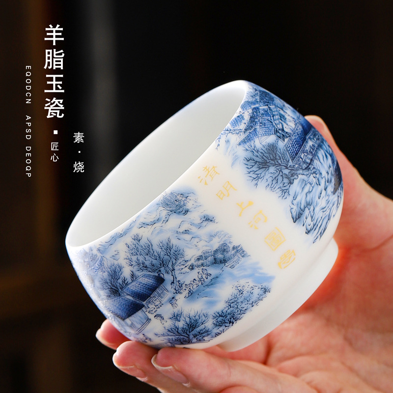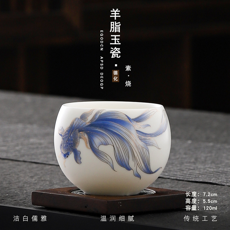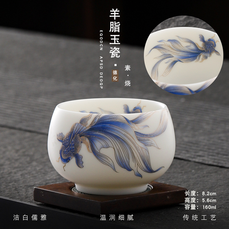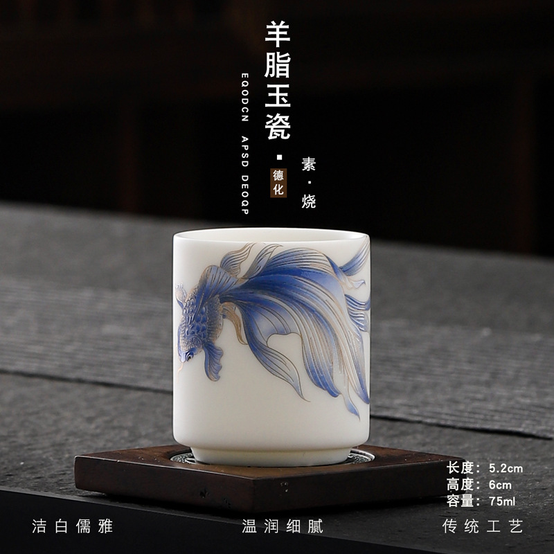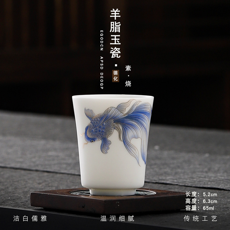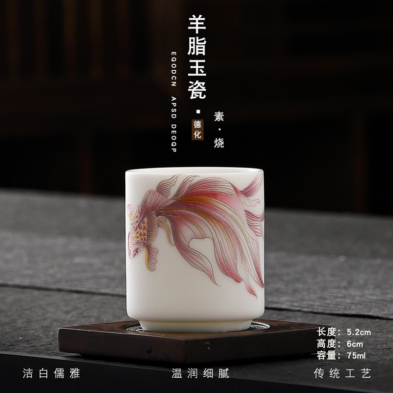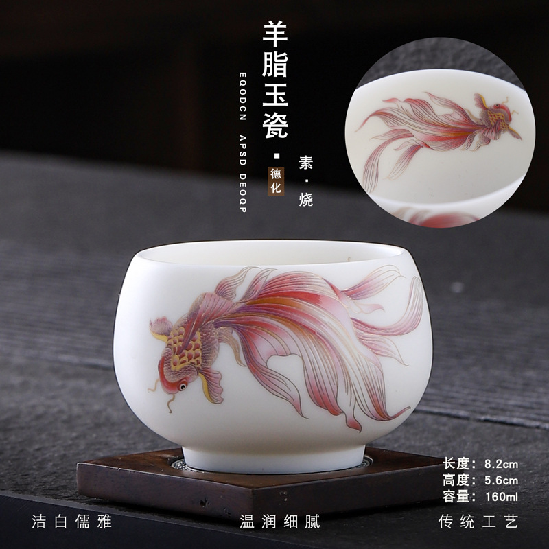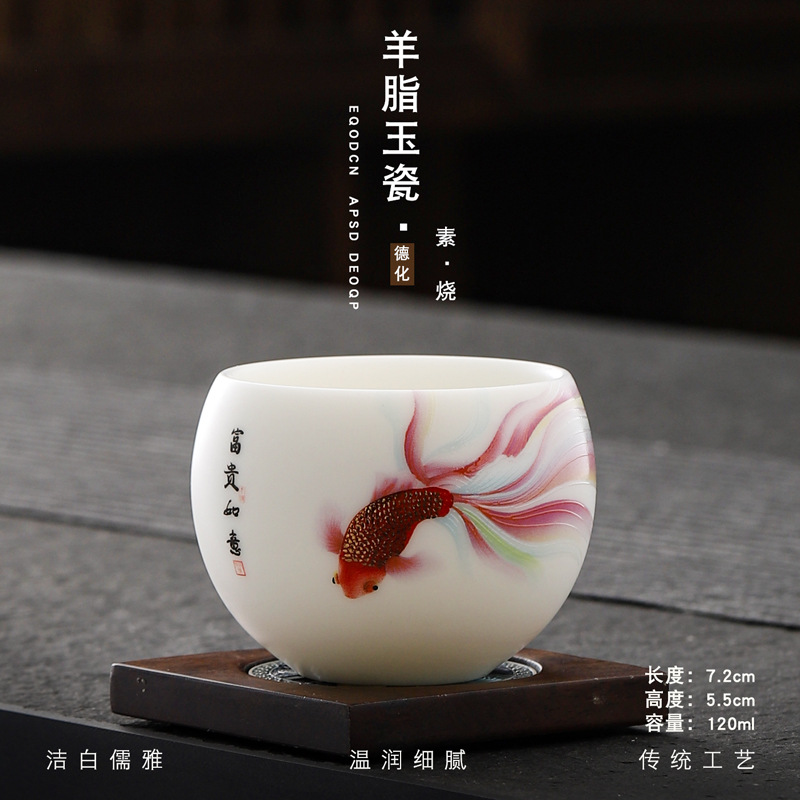 Veget-fired ceramics sheep fat jade auspicious dragon spit beads gilded gold master cup single cup wholesale tea tasting cup tea cup gift