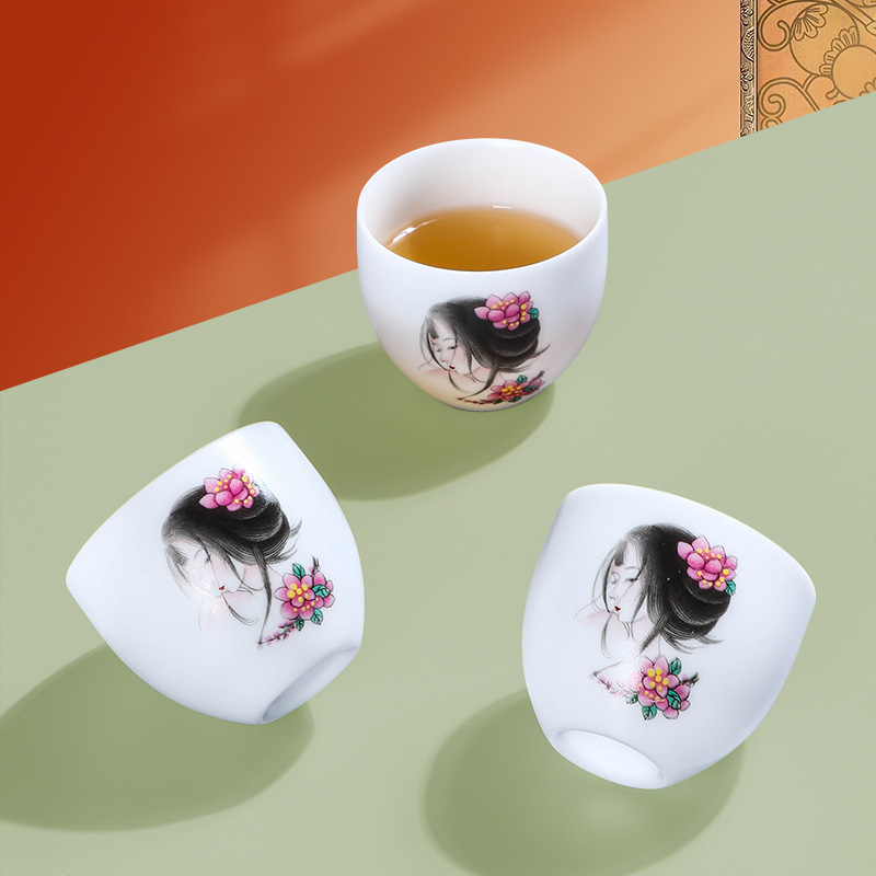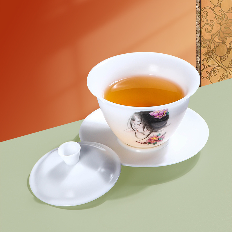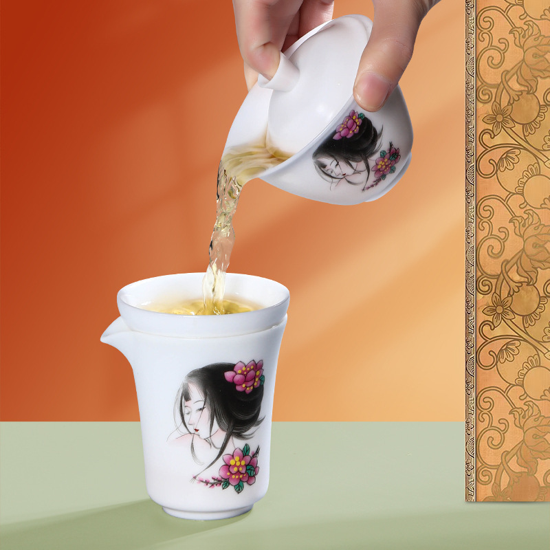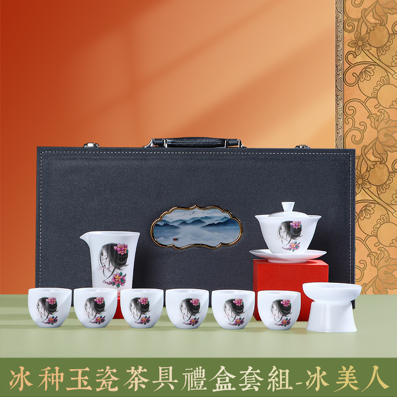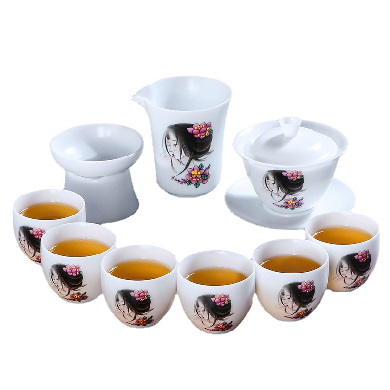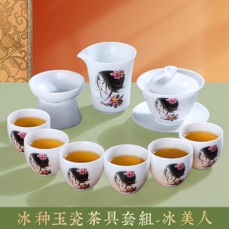 Hand-painted ice tea set Dehua white porcelain sheep fat jade suki roasted ice tea set Ice beauty retro light luxury