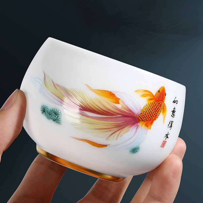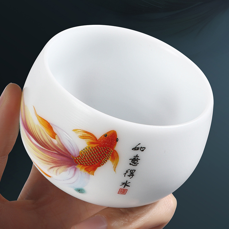 Like water in water, master cup, single cup, personal ceramic large tea bowl, tea cup, Dehua ice seed, mutton fat, jade porcelain tea cup