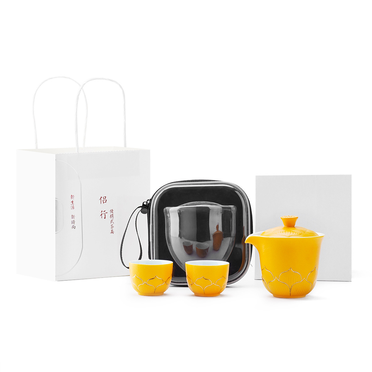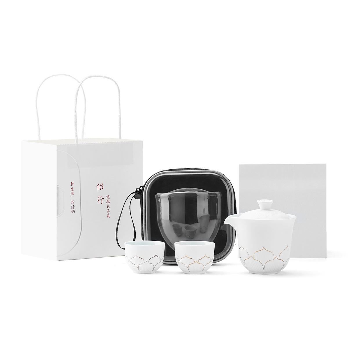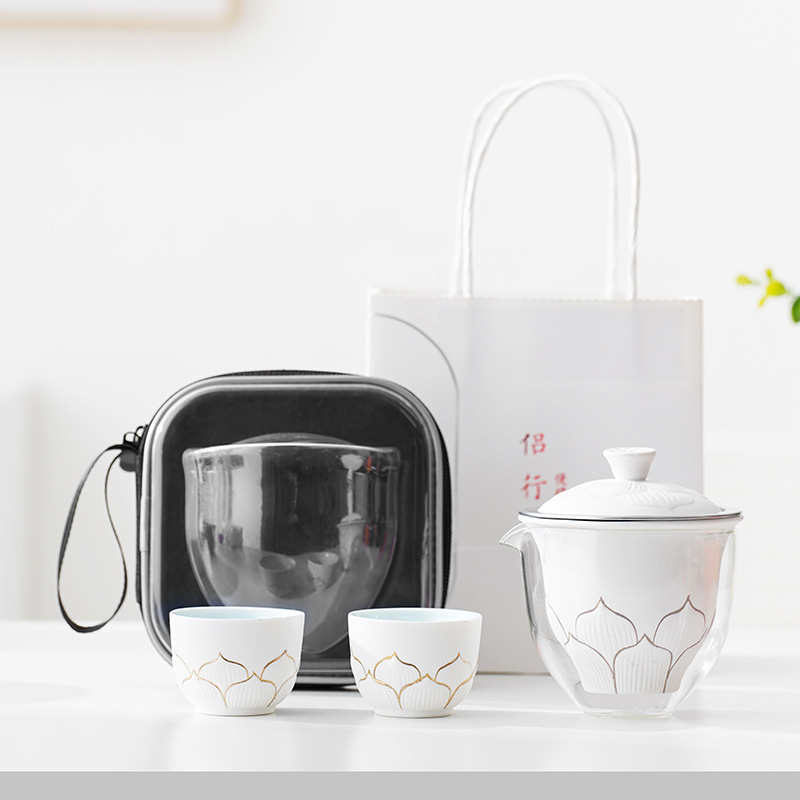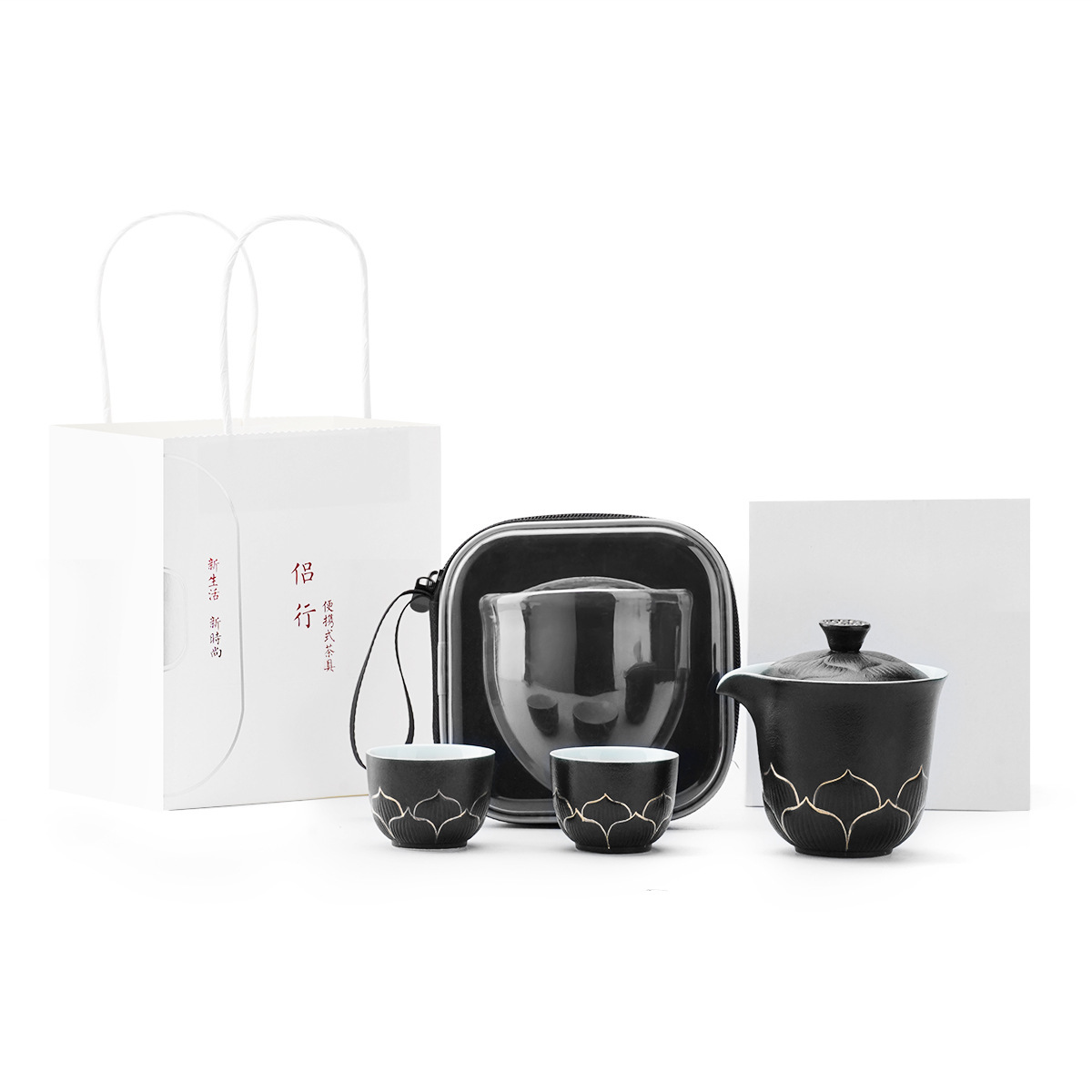 Travel tea set portable bag outdoor kung fu tea set ceramic quick guest cups one pot two cups accompanying hand gift logo