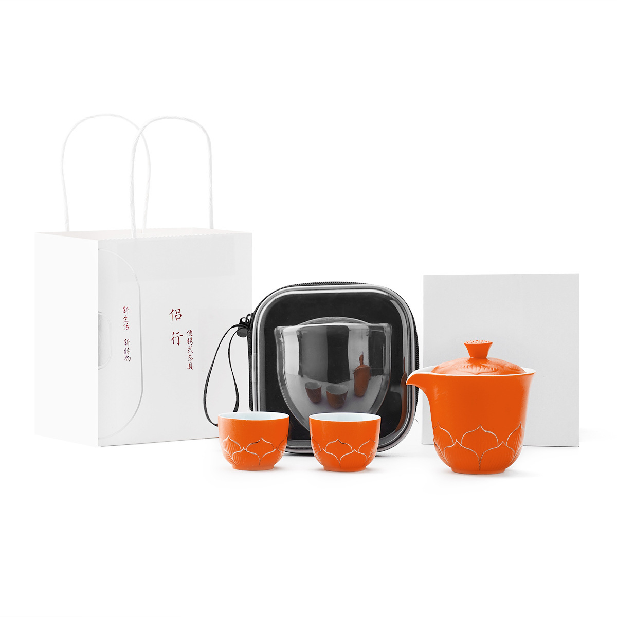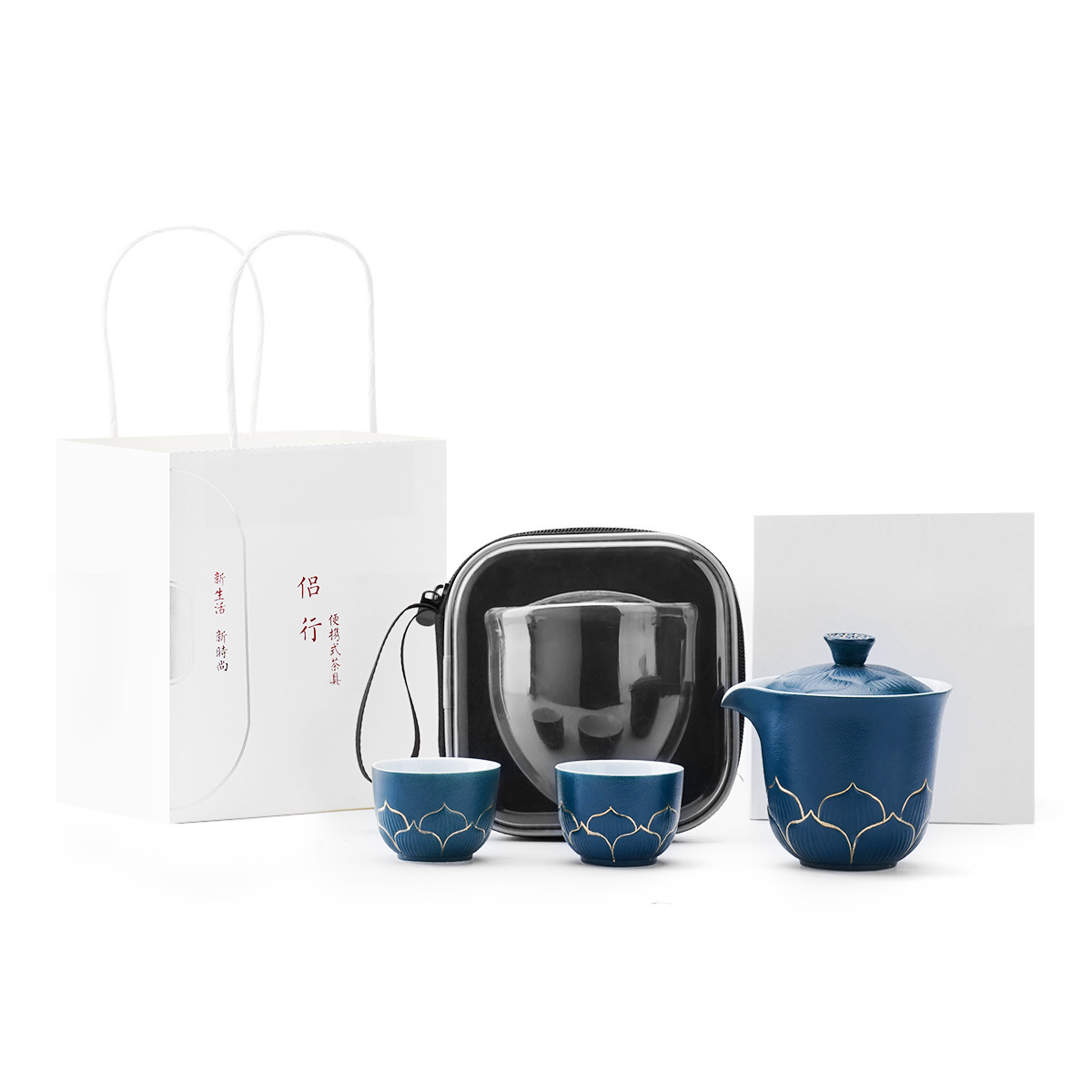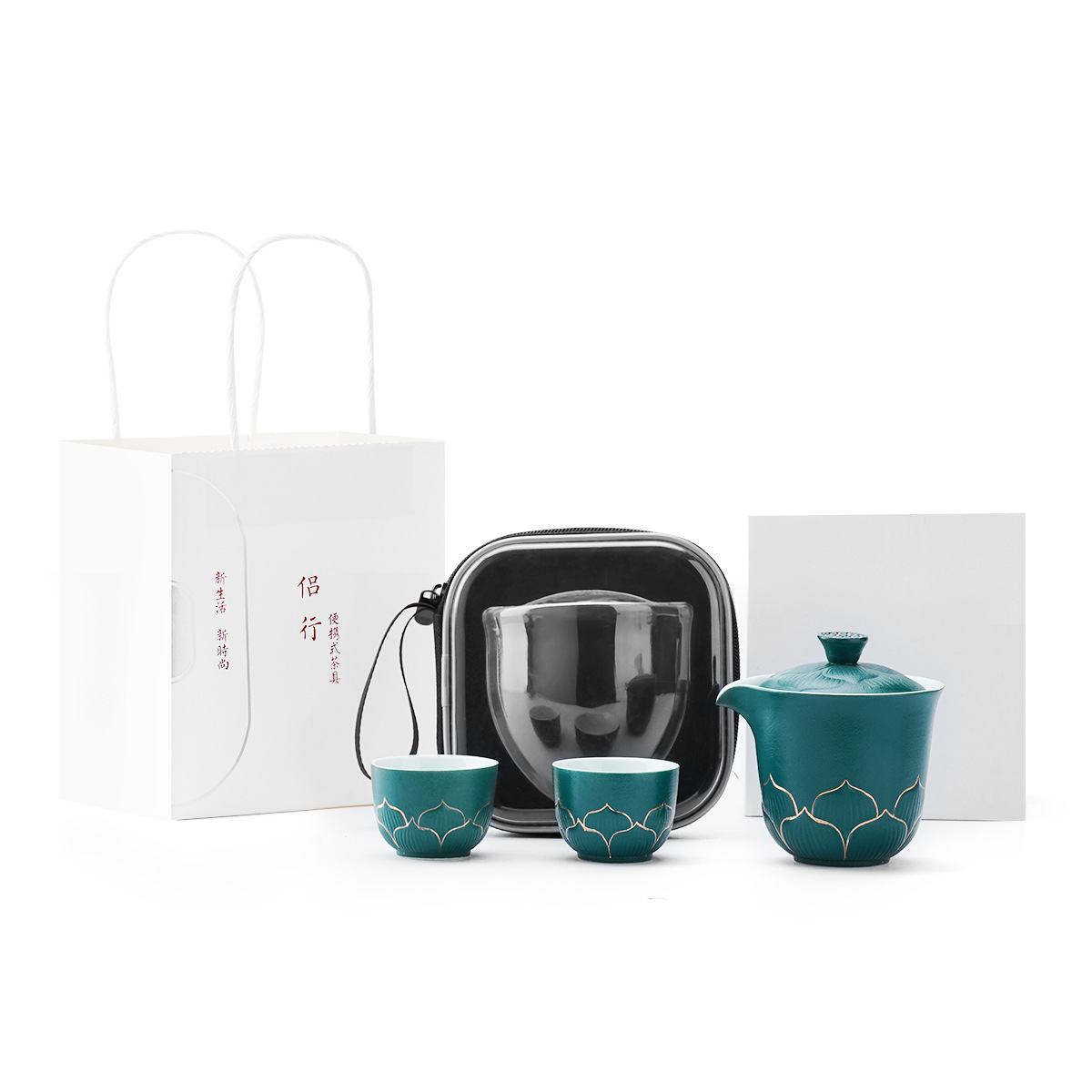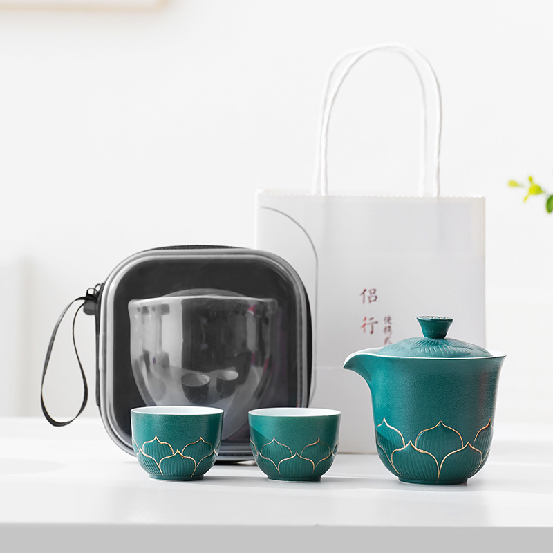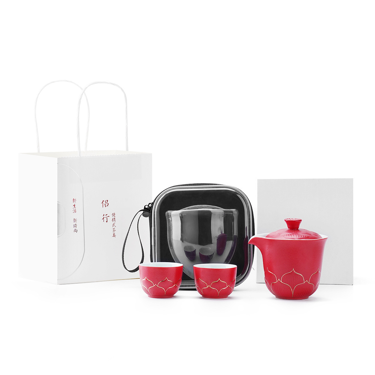 Travel tea set portable bag outdoor kung fu tea set ceramic quick guest cups one pot two cups accompanying hand gift logo