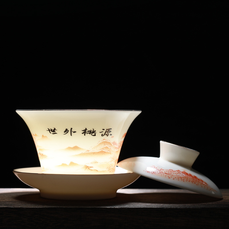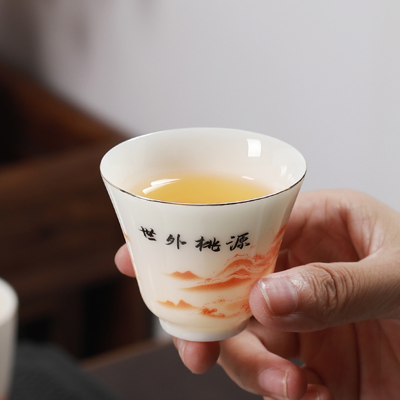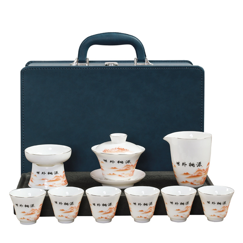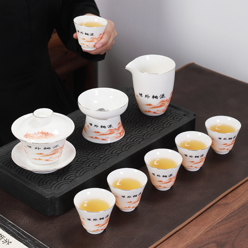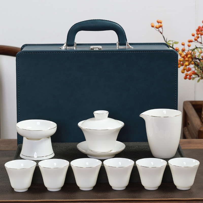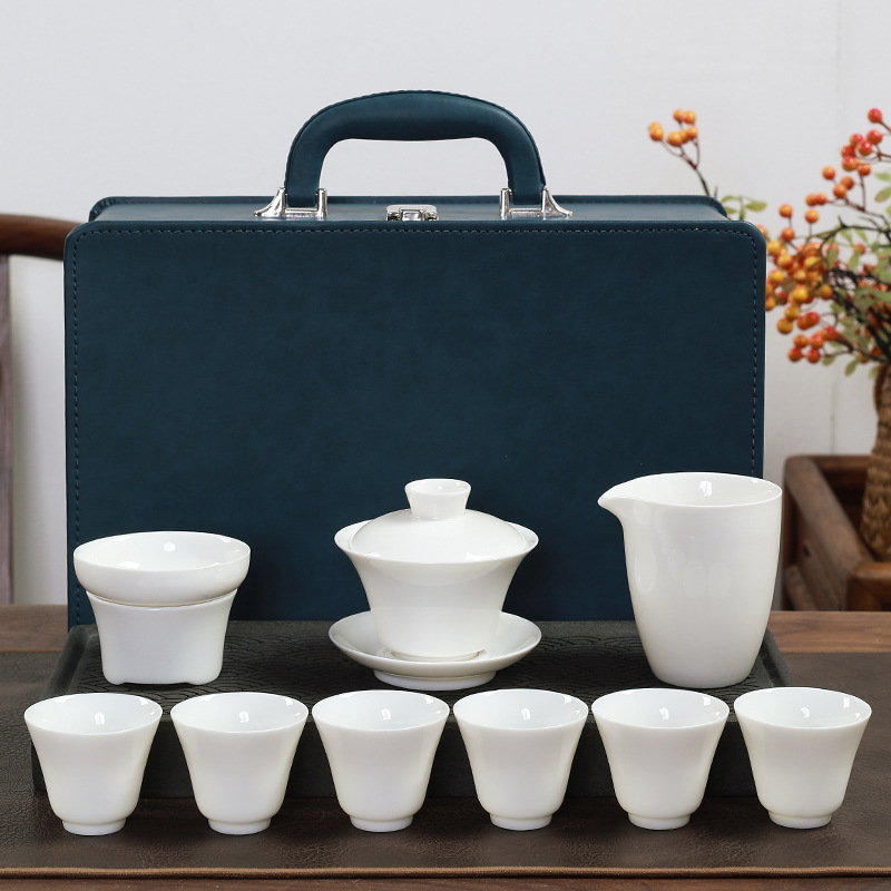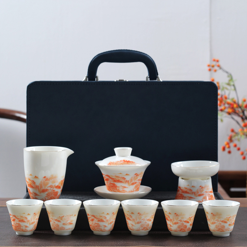 Alum red tea set gift Chinese simple mutton fat jade porcelain kung fu tea set company event gift tea tray