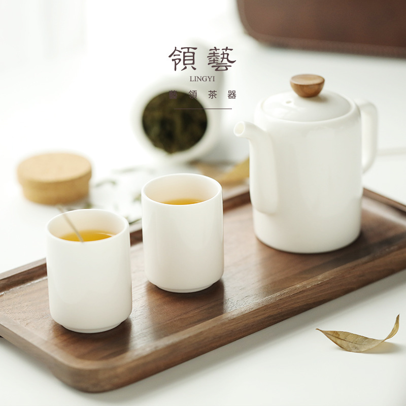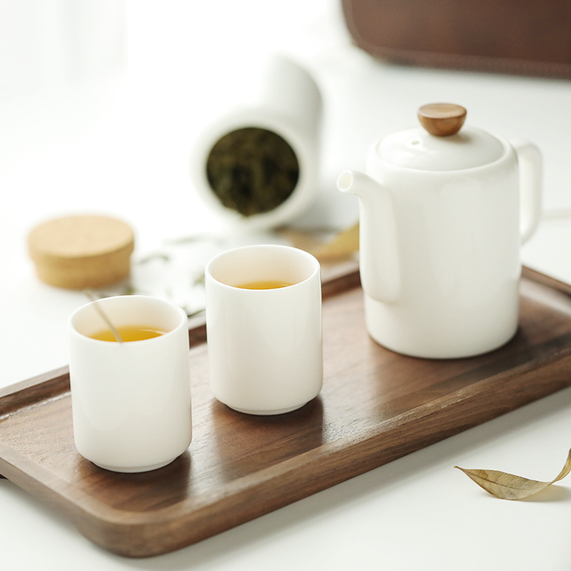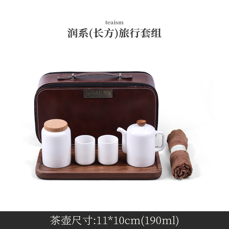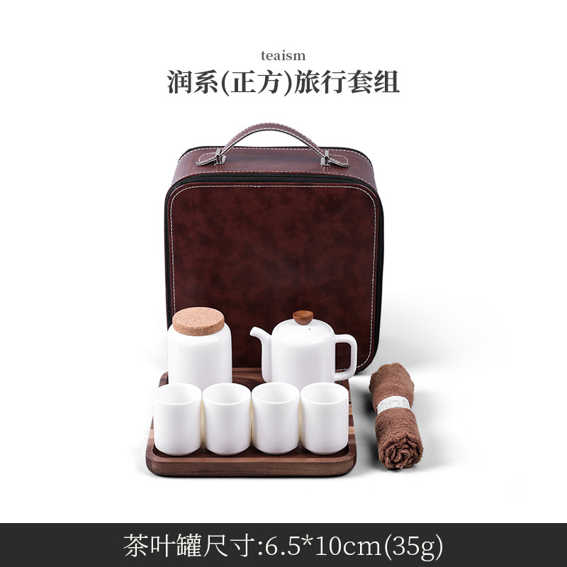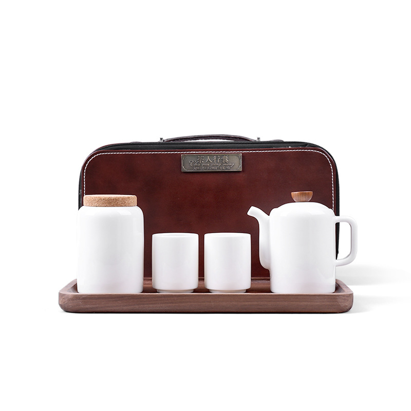 Outdoor portable travel tea set teapot tea pot tea tray tea cup set Dehua ceramic sheep fat jade tea set gift box