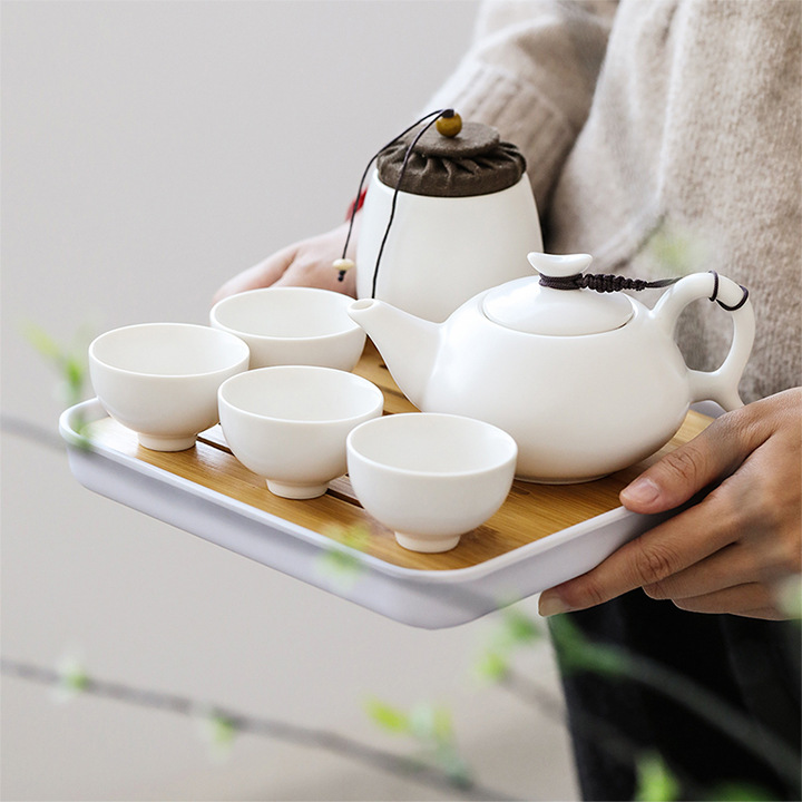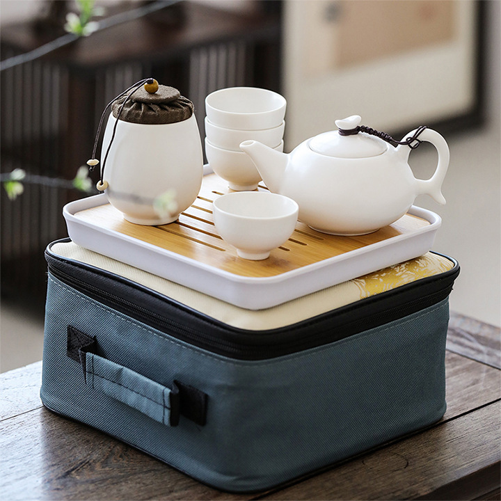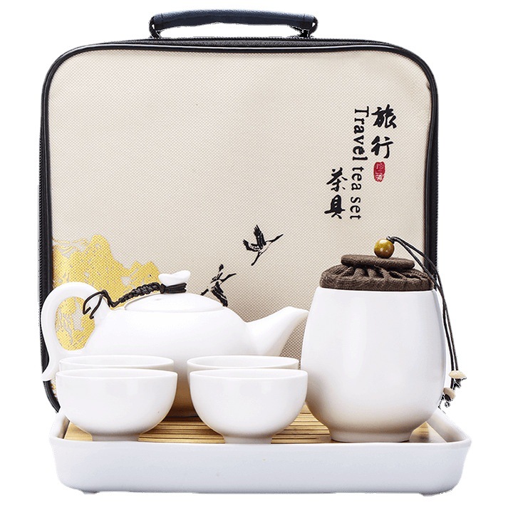 Ceramic travel tea set portable bag, one pot of 24 cups Kung Fu teapot, tea cup, tea tray, outdoor car tea set