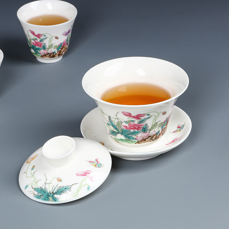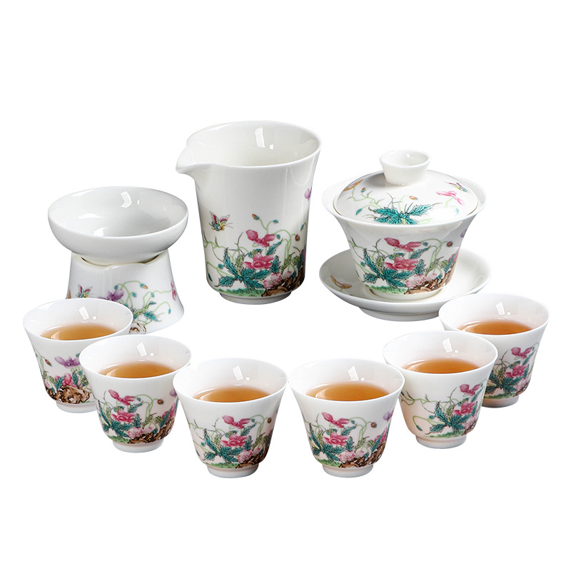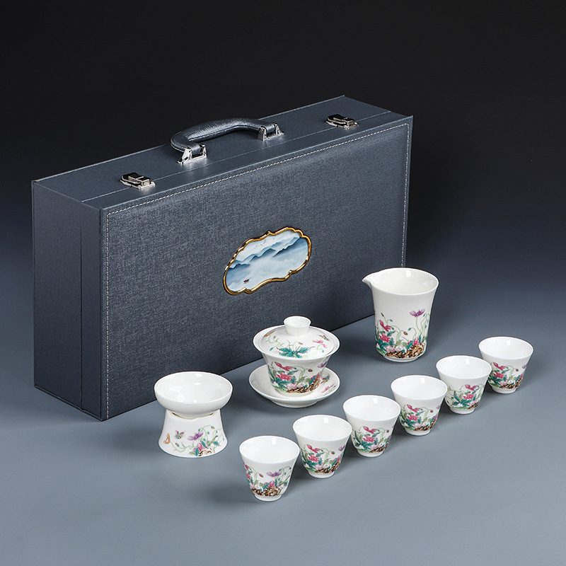 Dehua sheep fat jade porcelain kung fu tea set gift box gift box home living room office national trend national trend gift box