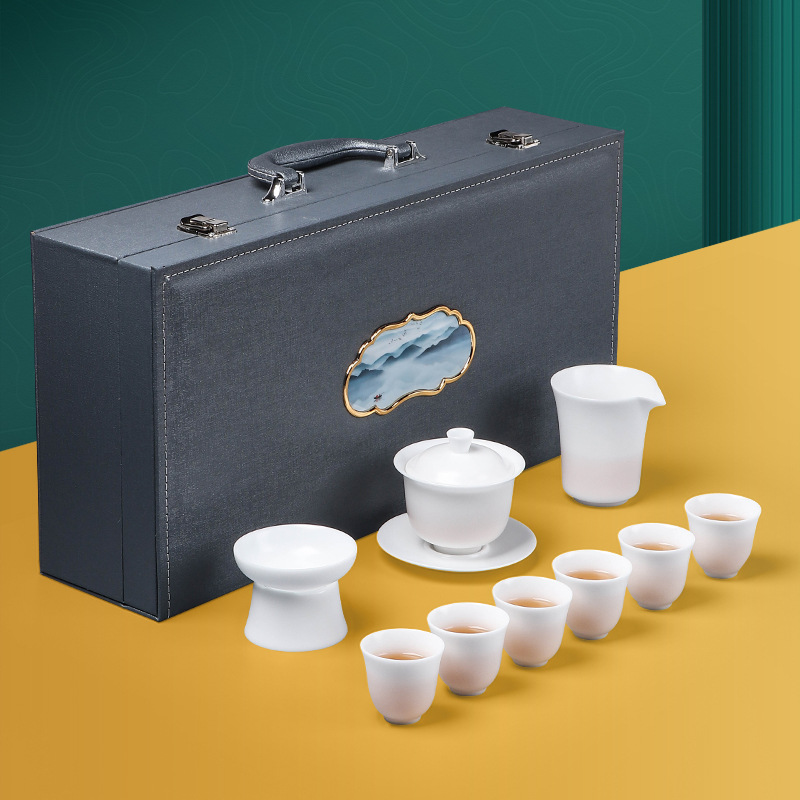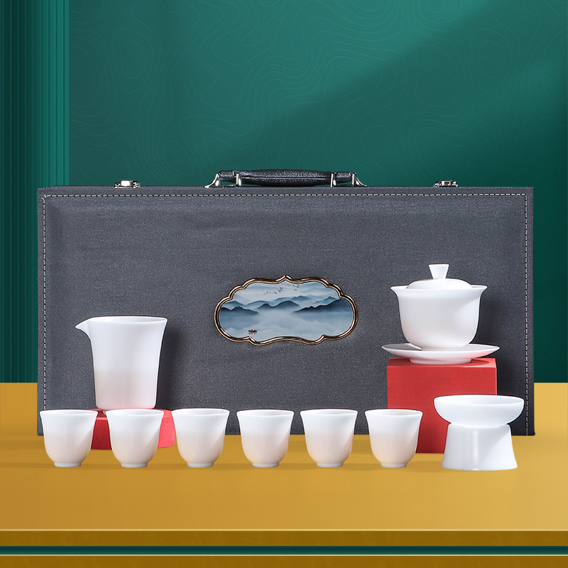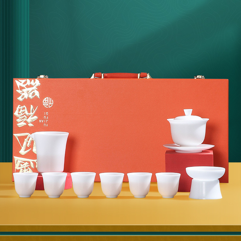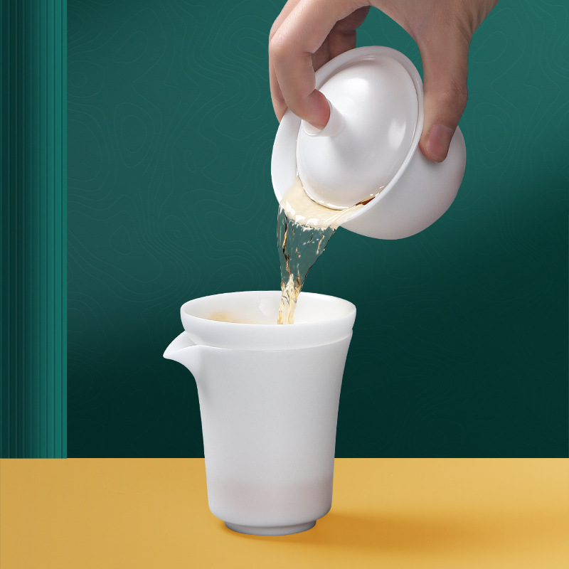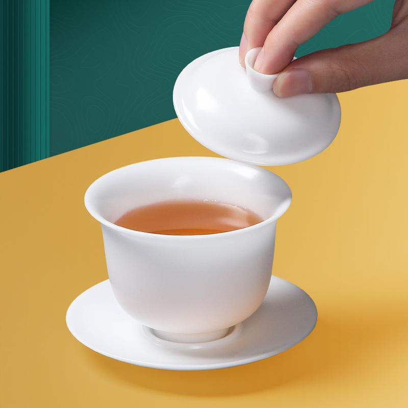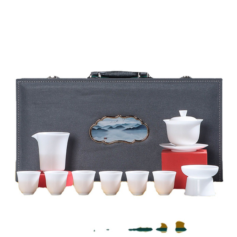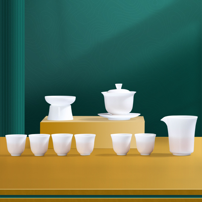 Sheep fat jade ice type kung fu tea cup tea set household high-end light luxury exquisite tea making bowl supplies ceramics