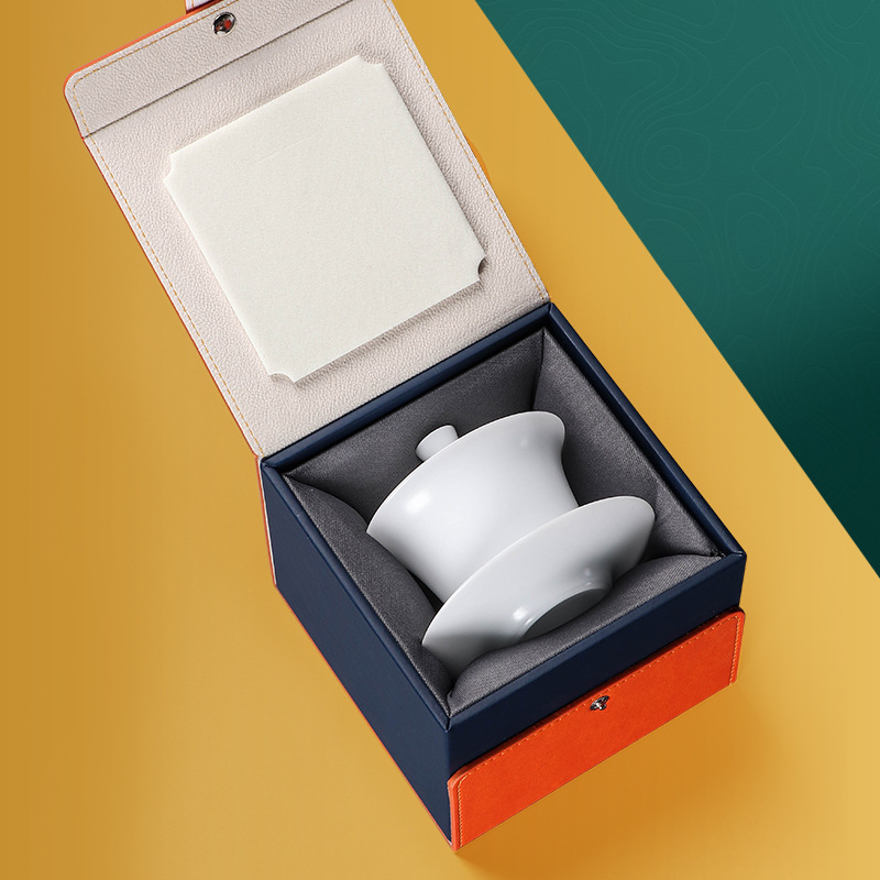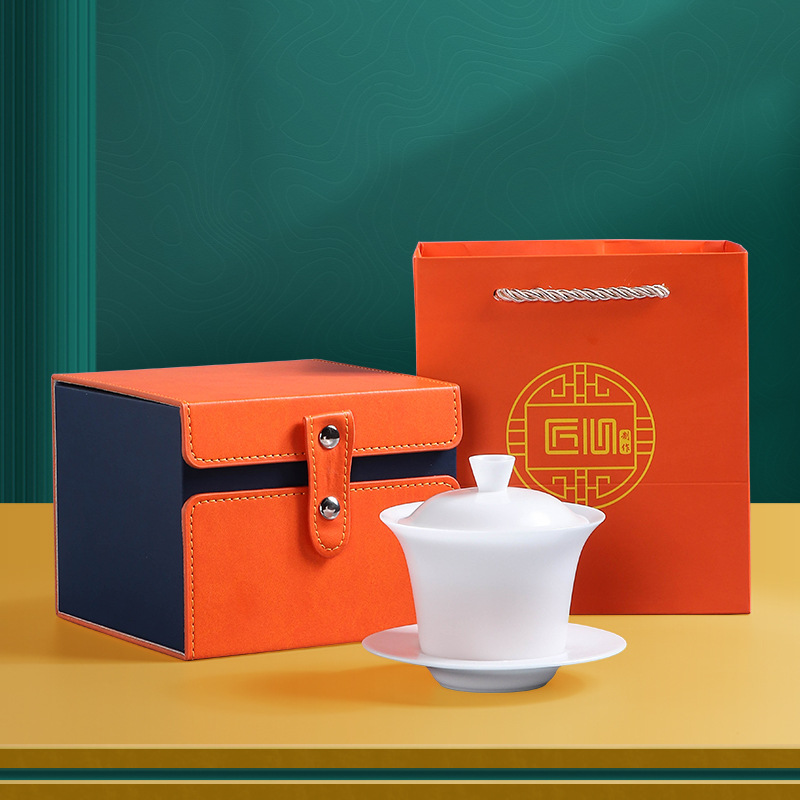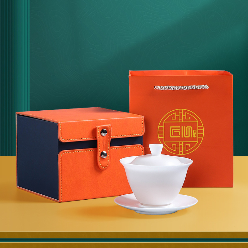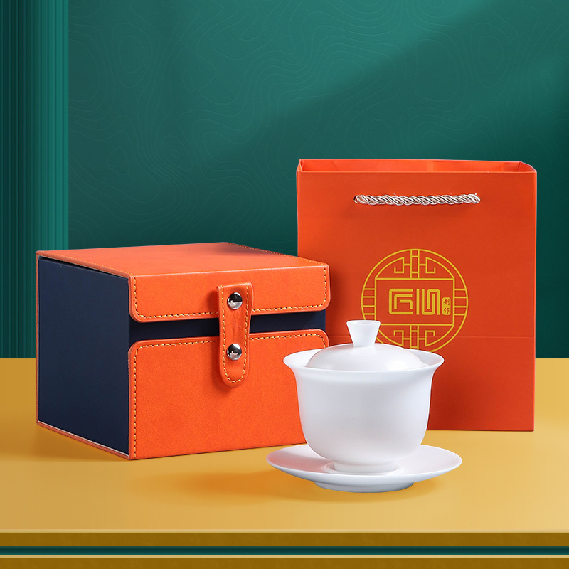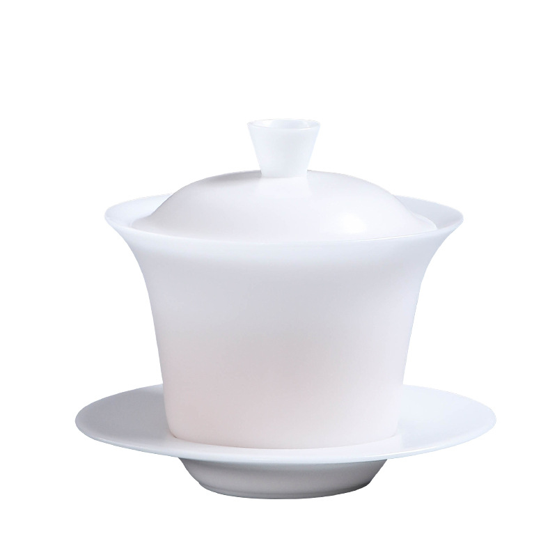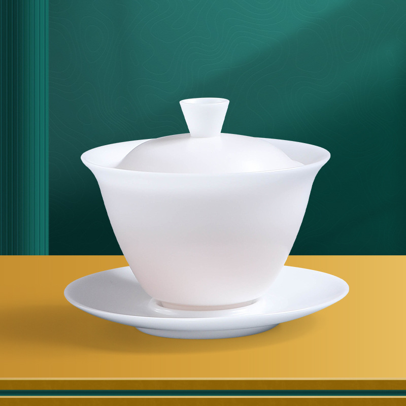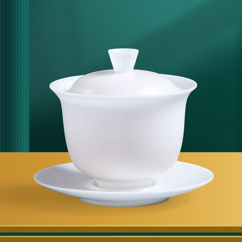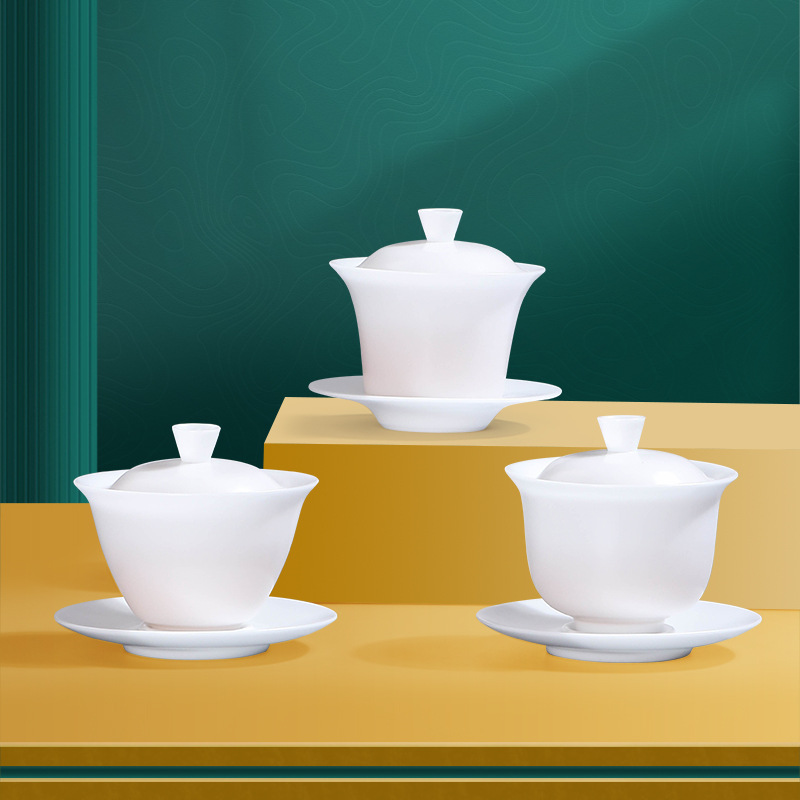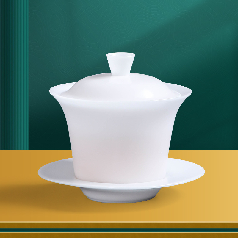 Ice type jade porcelain three talents cover bowl Kung Fu tea set pure white porcelain tea maker event personal gift New Chinese gift box