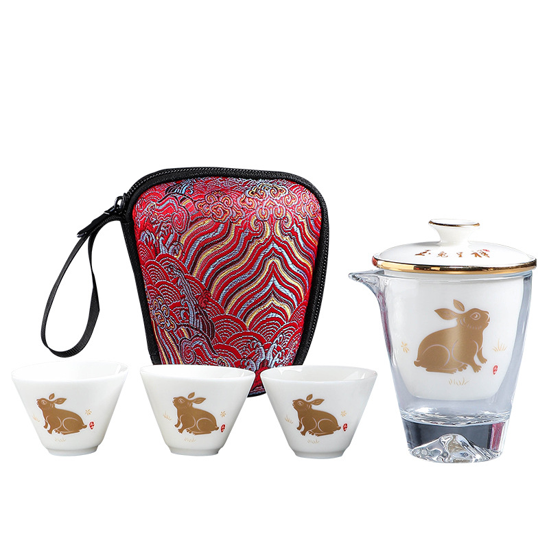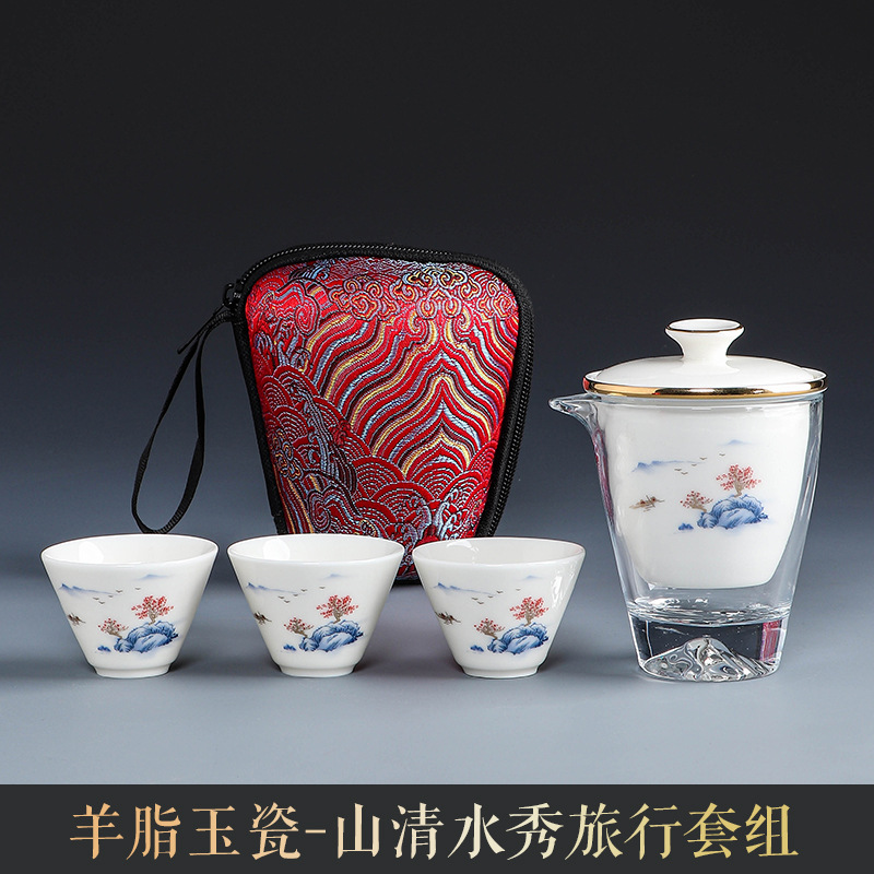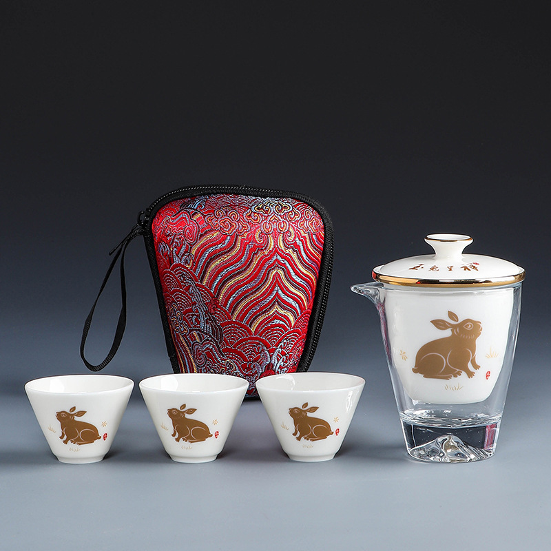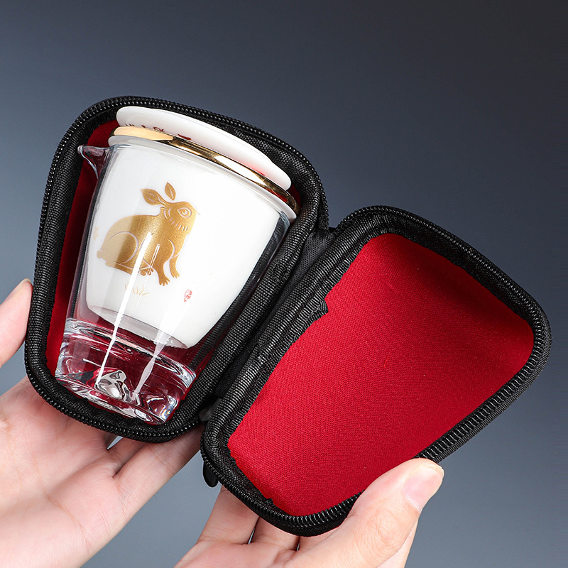 Portable outdoor camping travel tea making one pot of three cups accompanying express guest cups storage travel tea set
