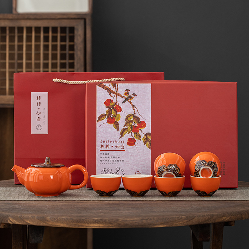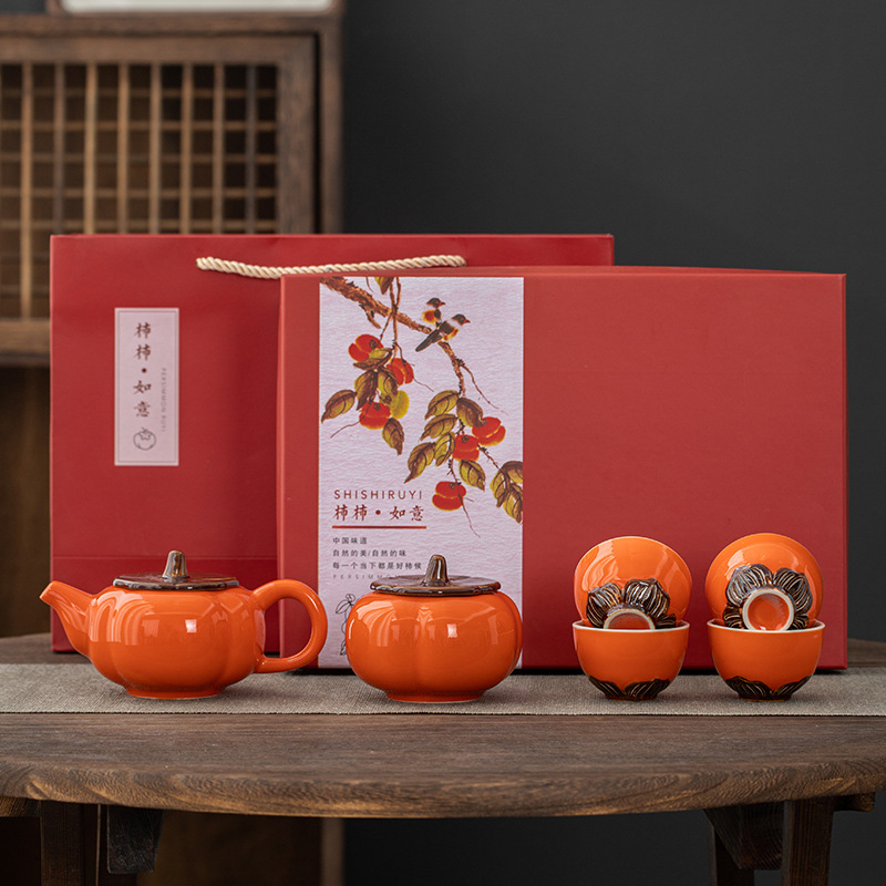 Ceramic persimmon tea cans, candy, wedding candies, practical sealed cans, tea set, gifts, decorations, activities, accompanying gifts