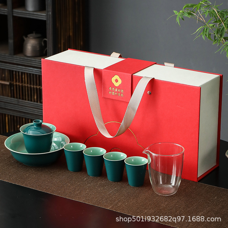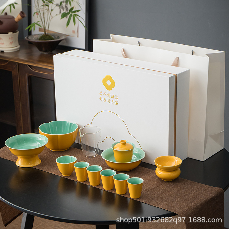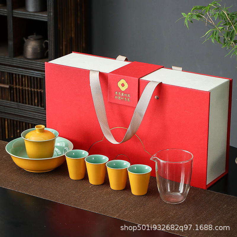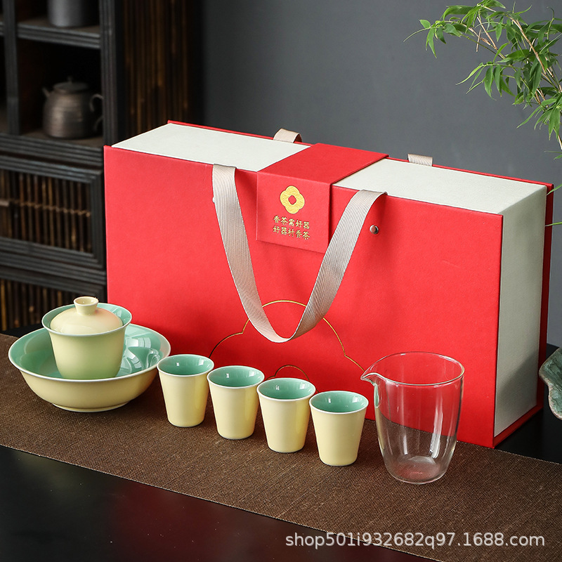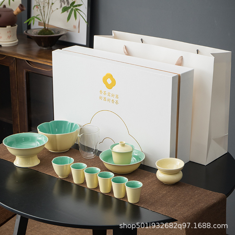 Kungfu tea set simple solid color tea set home office gift giving guests light luxury high-end gift box