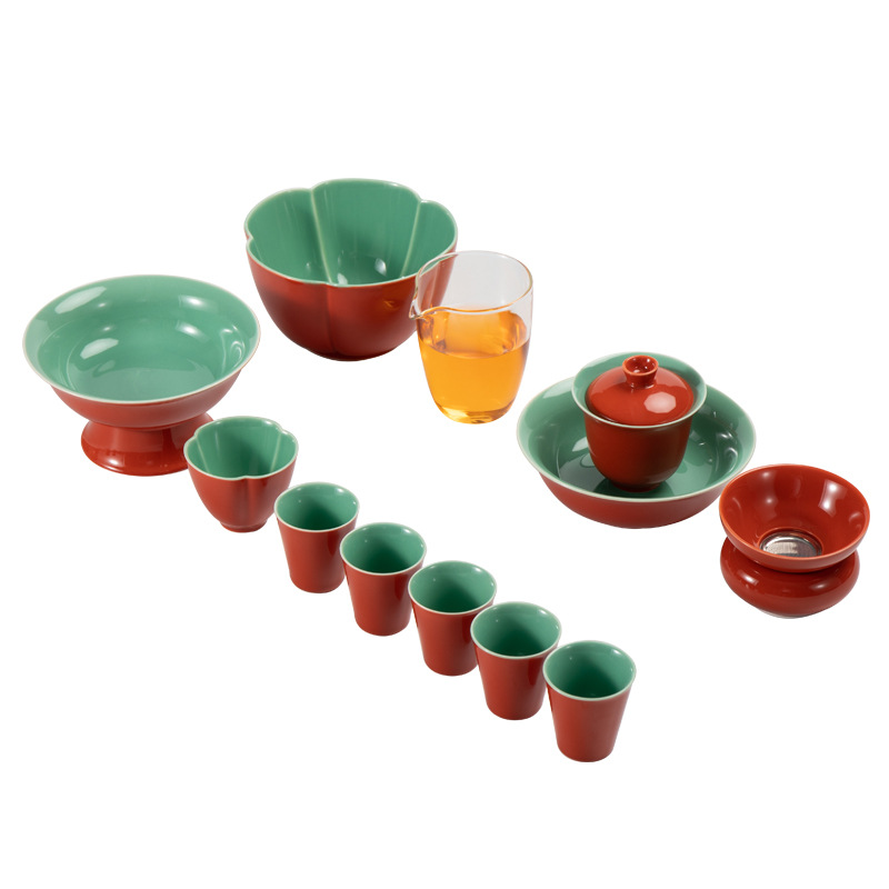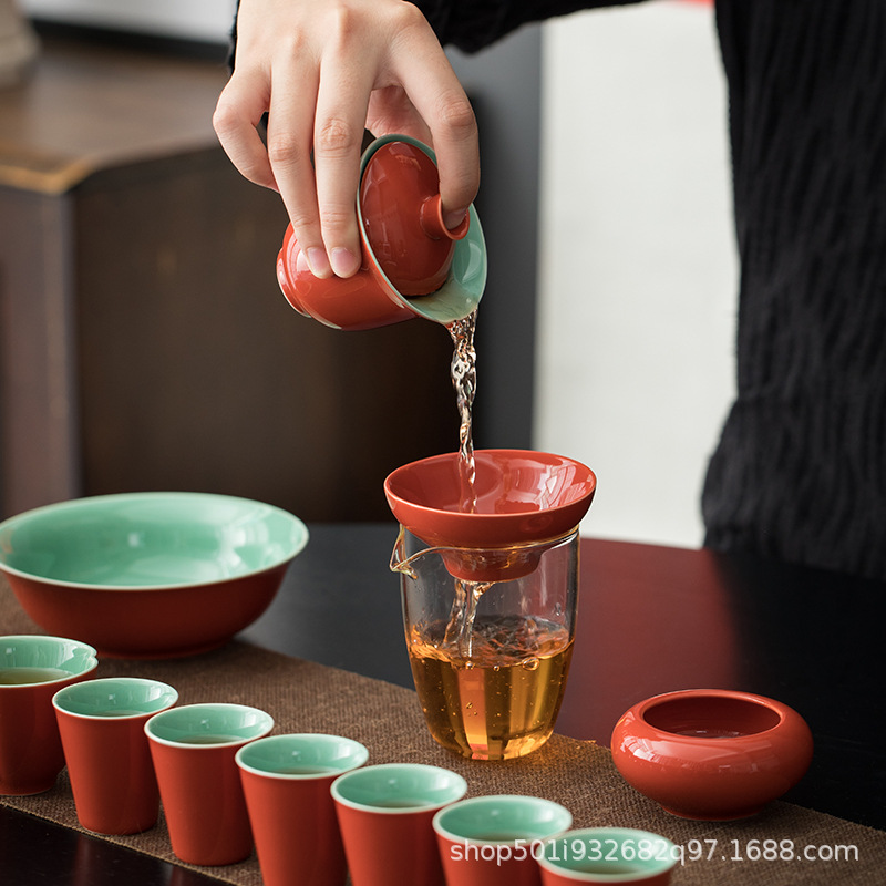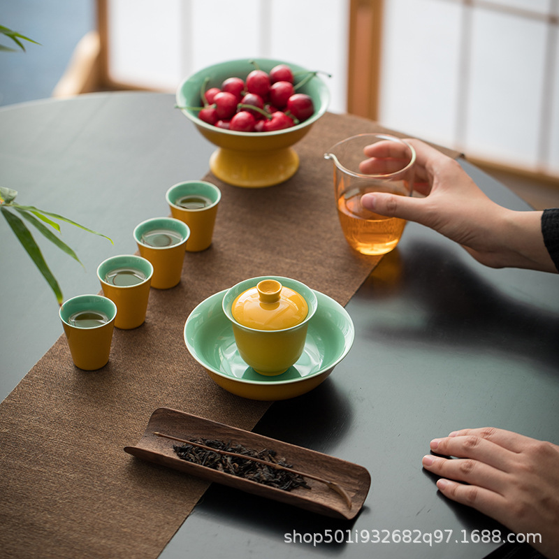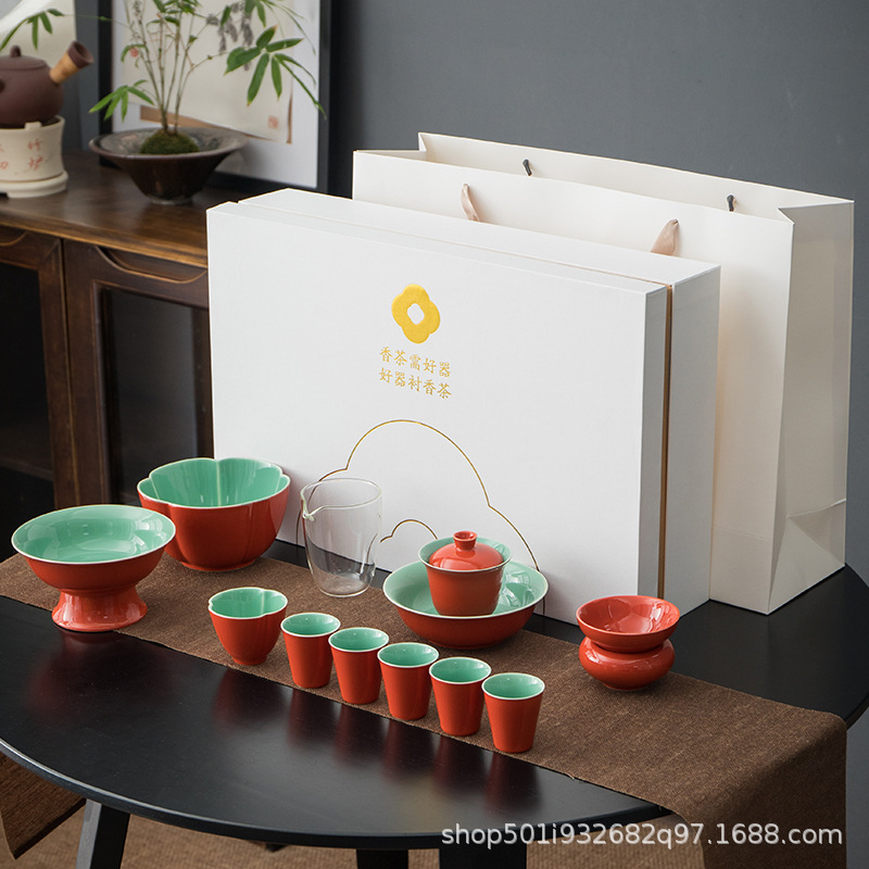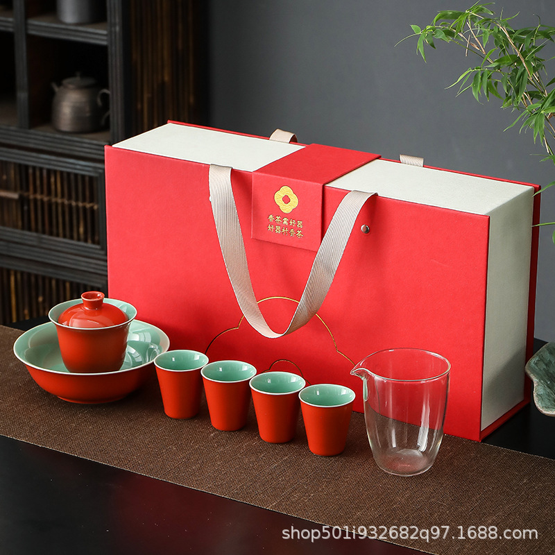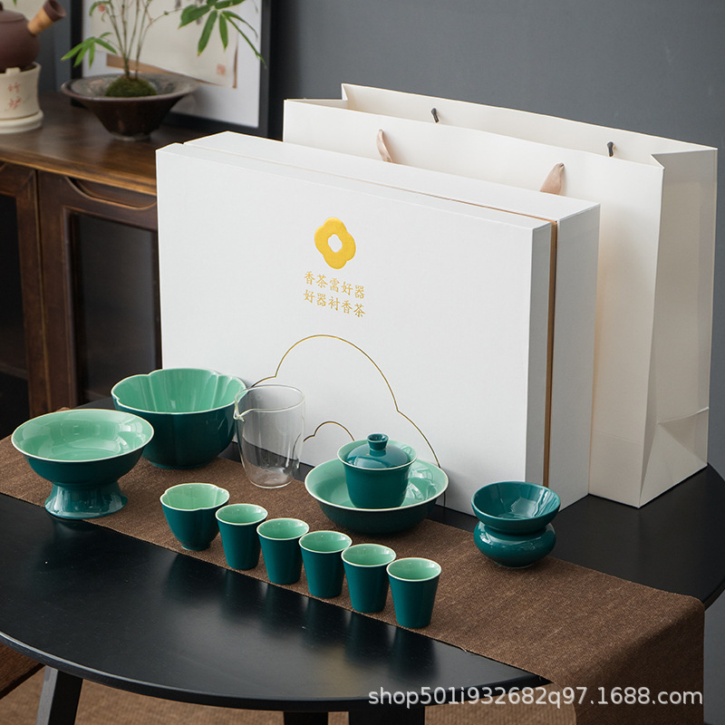 Kungfu tea set simple solid color tea set home office gift giving guests light luxury high-end gift box