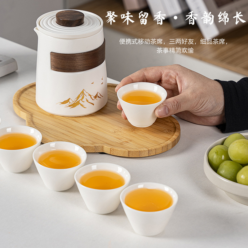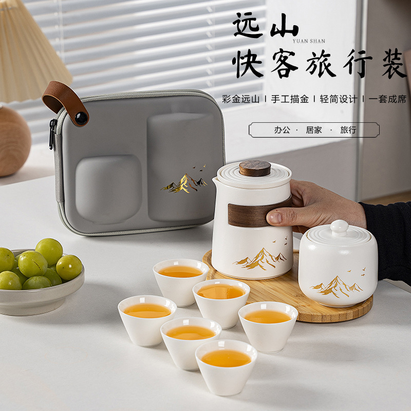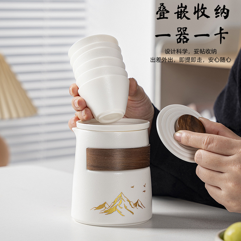 Ceramic travel tea set Portable Kuaike cups Carry on tea making business activities Festival companions Gifts LOGO