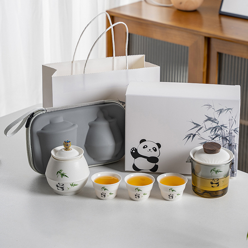 Panda rises, travel tea set, portable Kuaike Cup, business event commemorative gift LOGO
