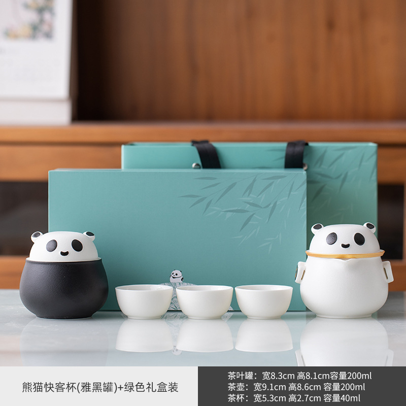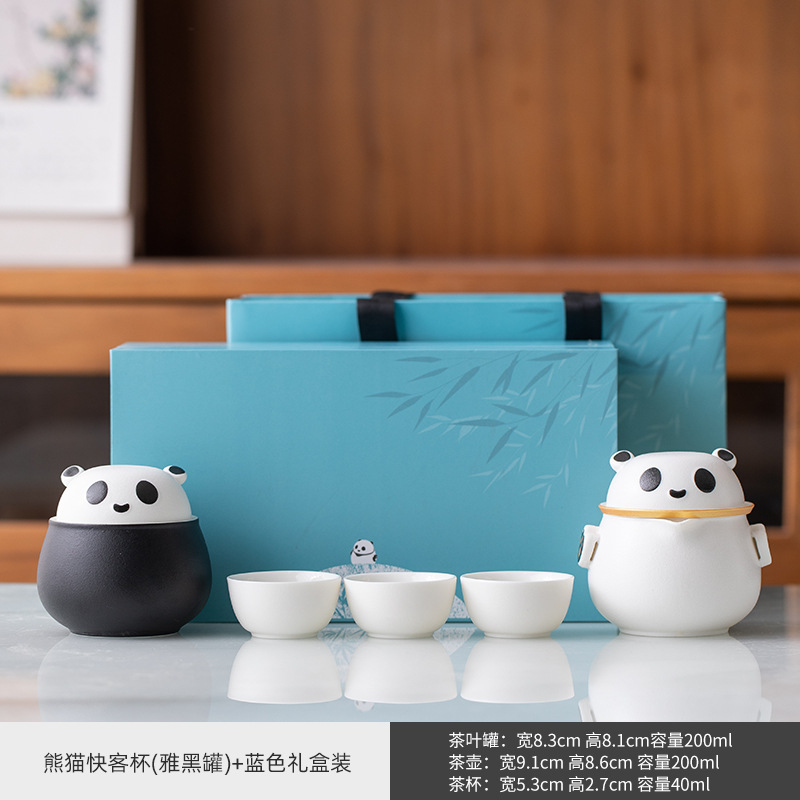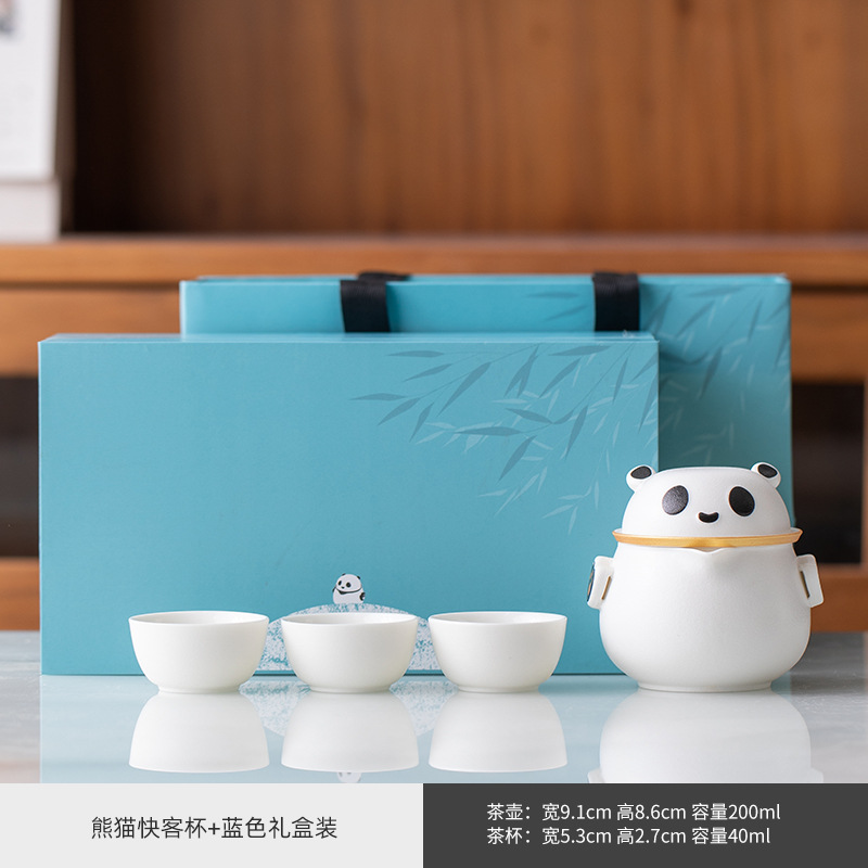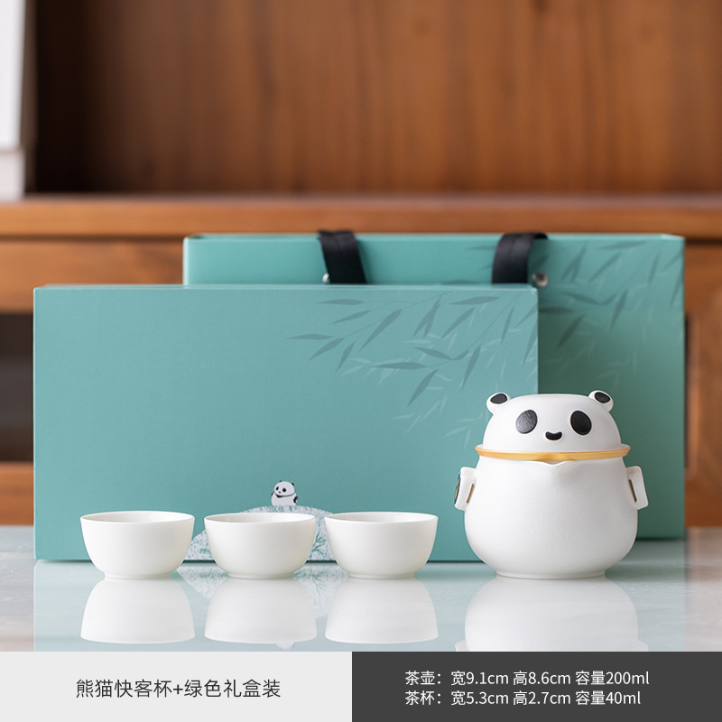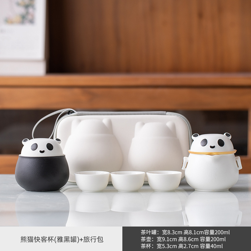 Panda Kuaike Cup Outdoor Travel Tea Set Portable one pot three cups portable tea making ceramics high-end gift