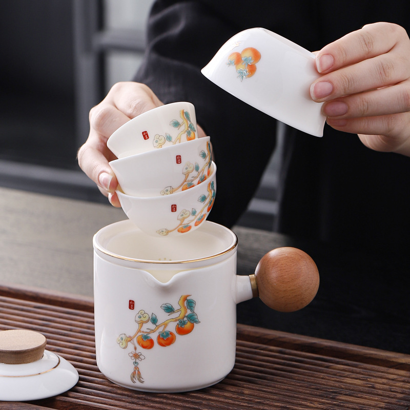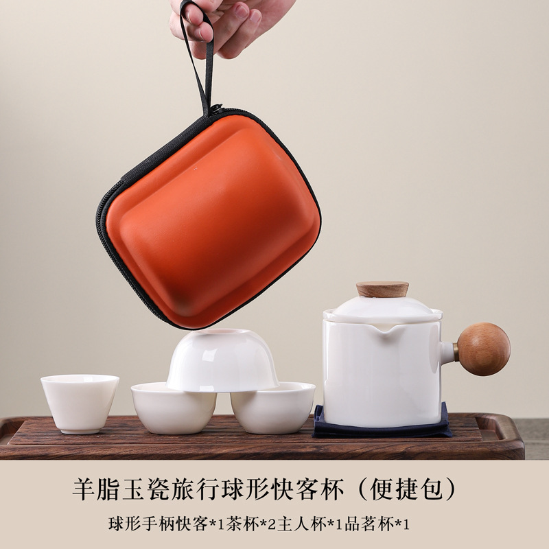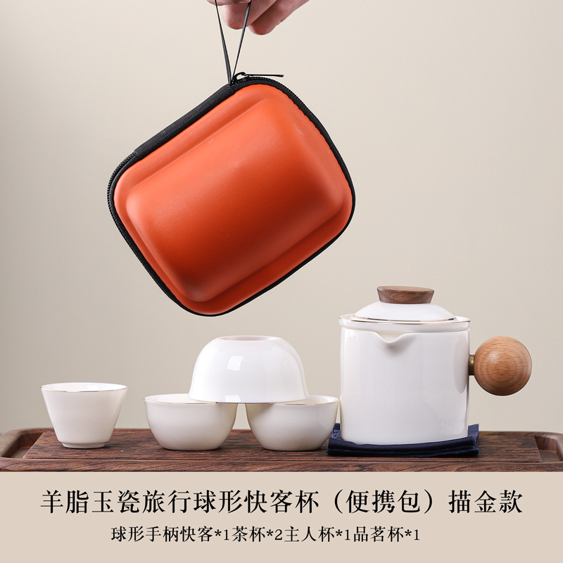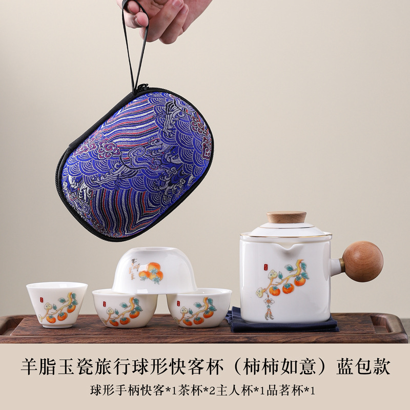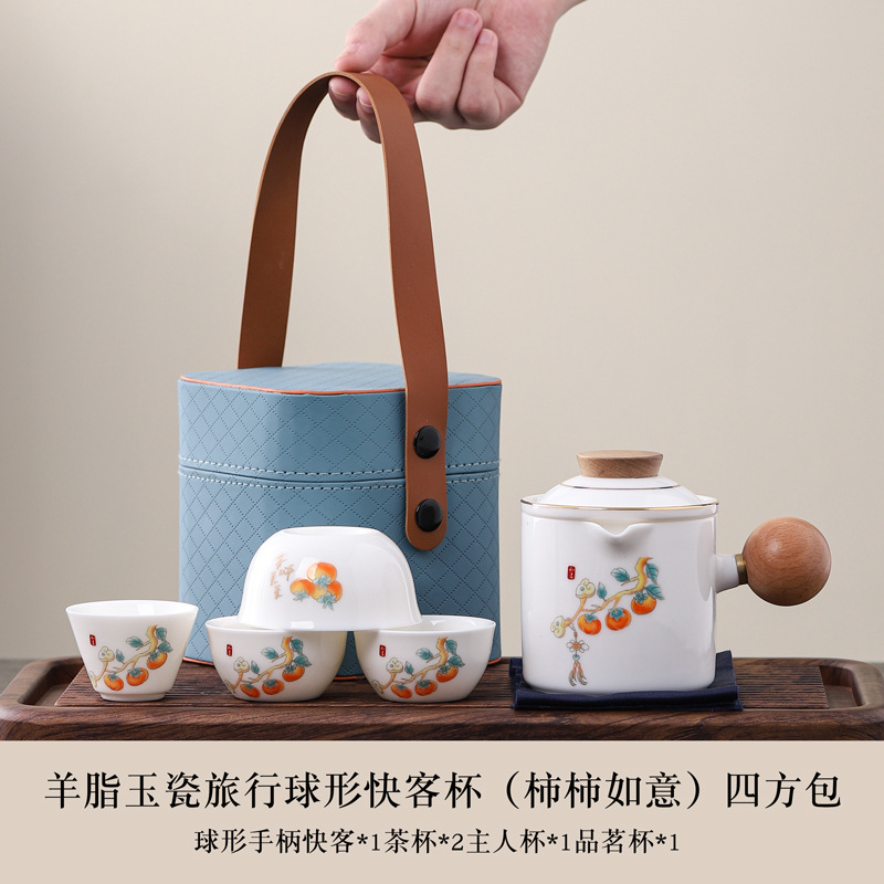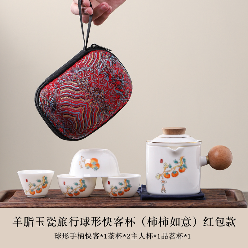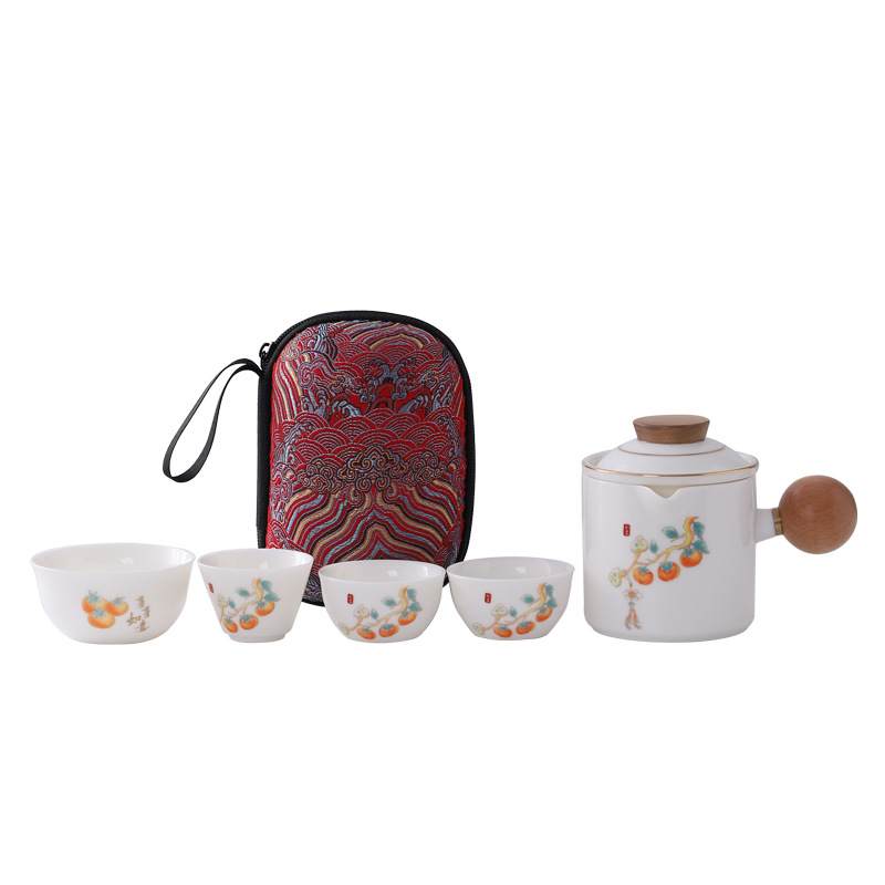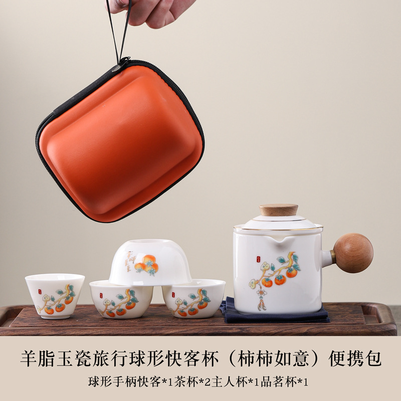 Ceramic travel tea set Portable Kuaike Cup Persimmon Ruyi teapot set Outdoor camping gift event LOGO