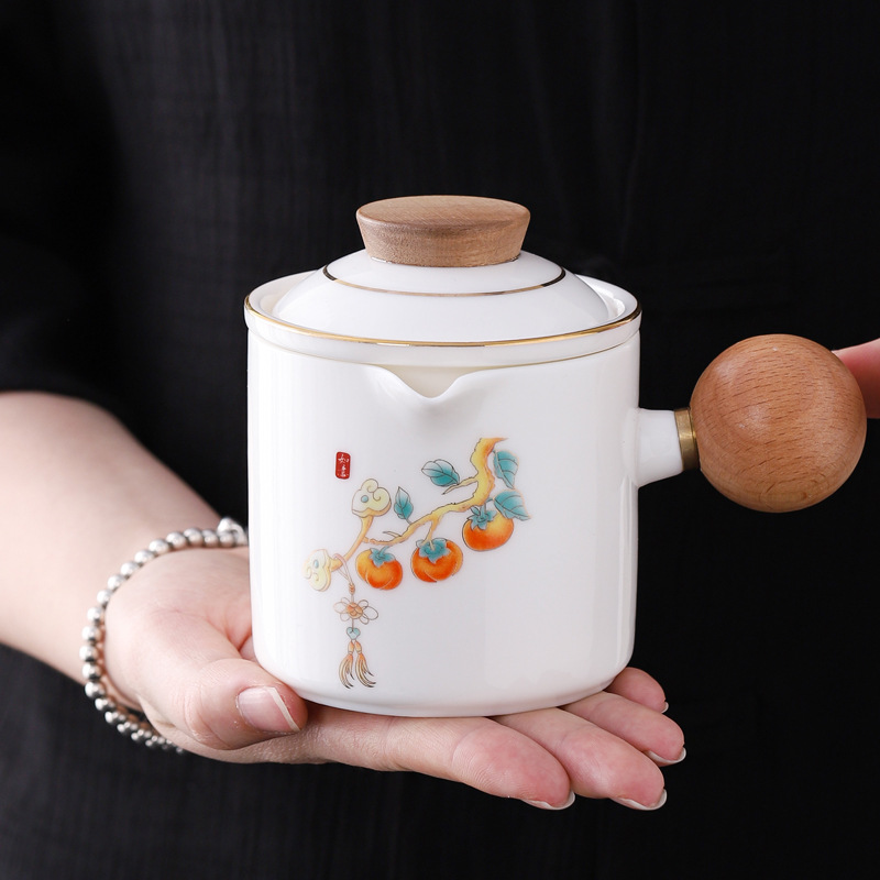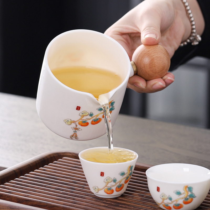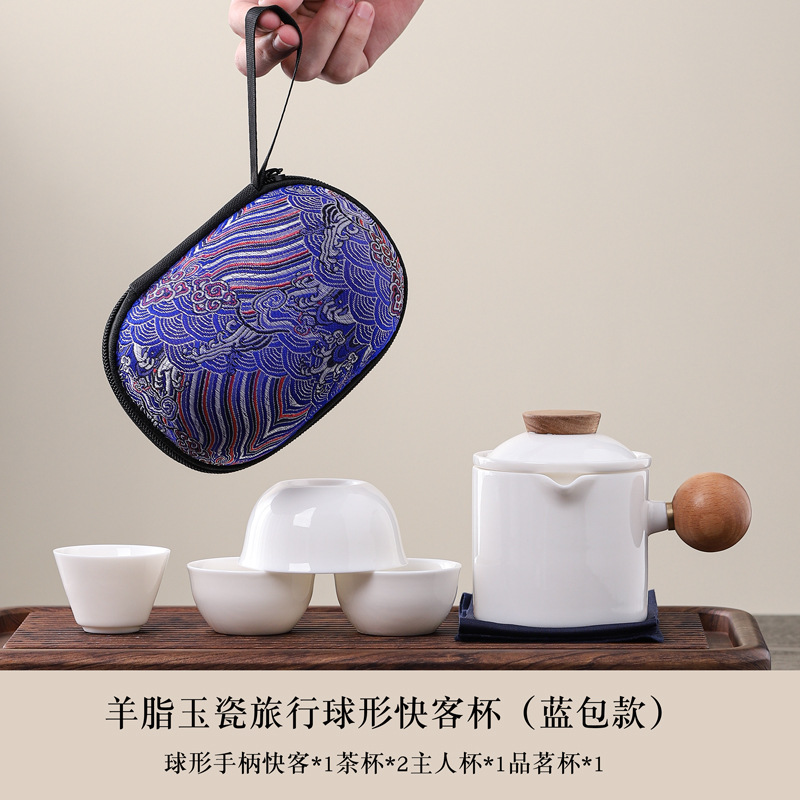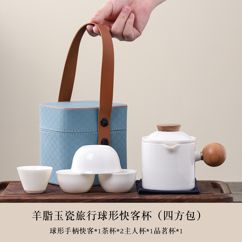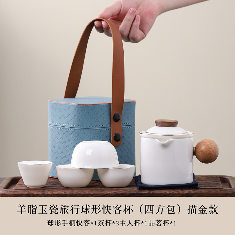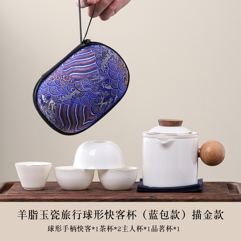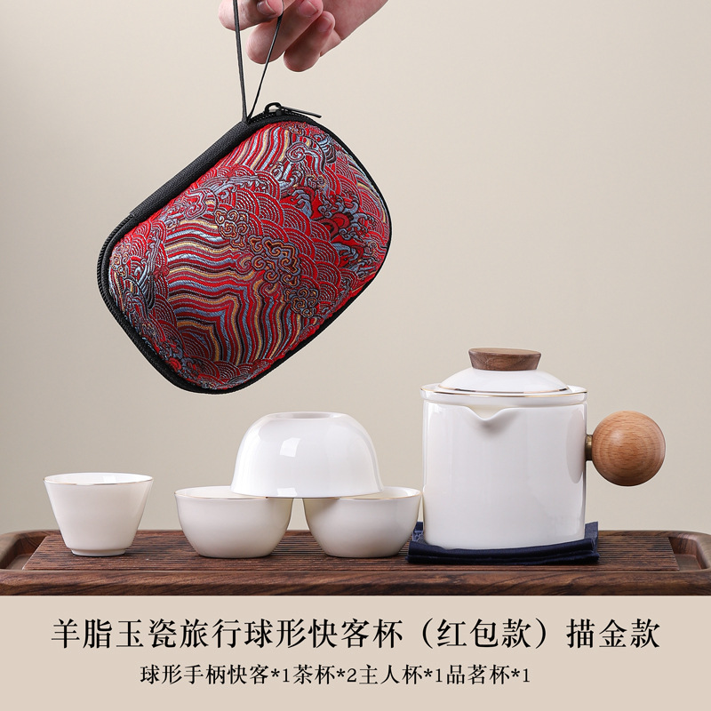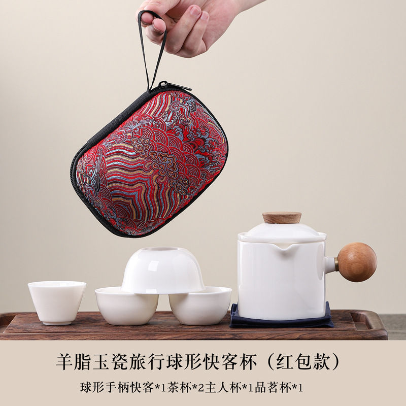 Ceramic travel tea set Portable Kuaike Cup Persimmon Ruyi teapot set Outdoor camping gift event LOGO